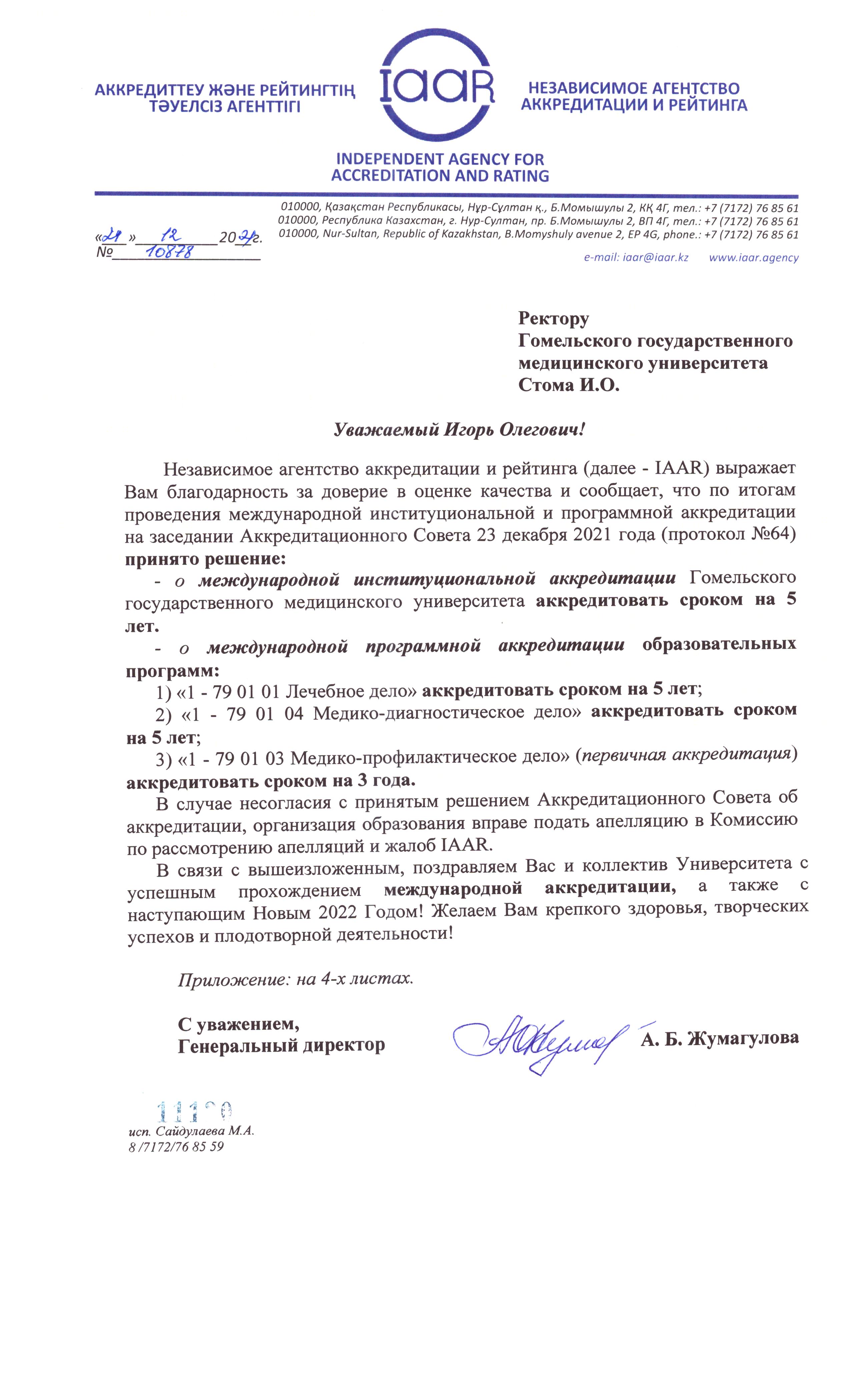 Гомельский государственный медицинский университет выражает благодарность Министерству здравоохранения Республики Беларусь и Министерству образования Республики Беларусь за помощь и поддержку в подготовке к международной институциональной аккредитации.