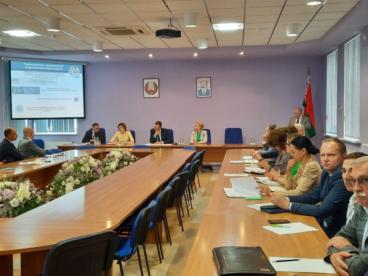 Участие в мероприятии приняли министр здравоохранения Дмитрий Пиневич, его первый заместитель Елена Кроткова, руководители заинтересованных структурных подразделений министерства, ректорский состав академии и медицинских университетов, руководители системы здравоохранения столицы и РНПЦ и другие.
