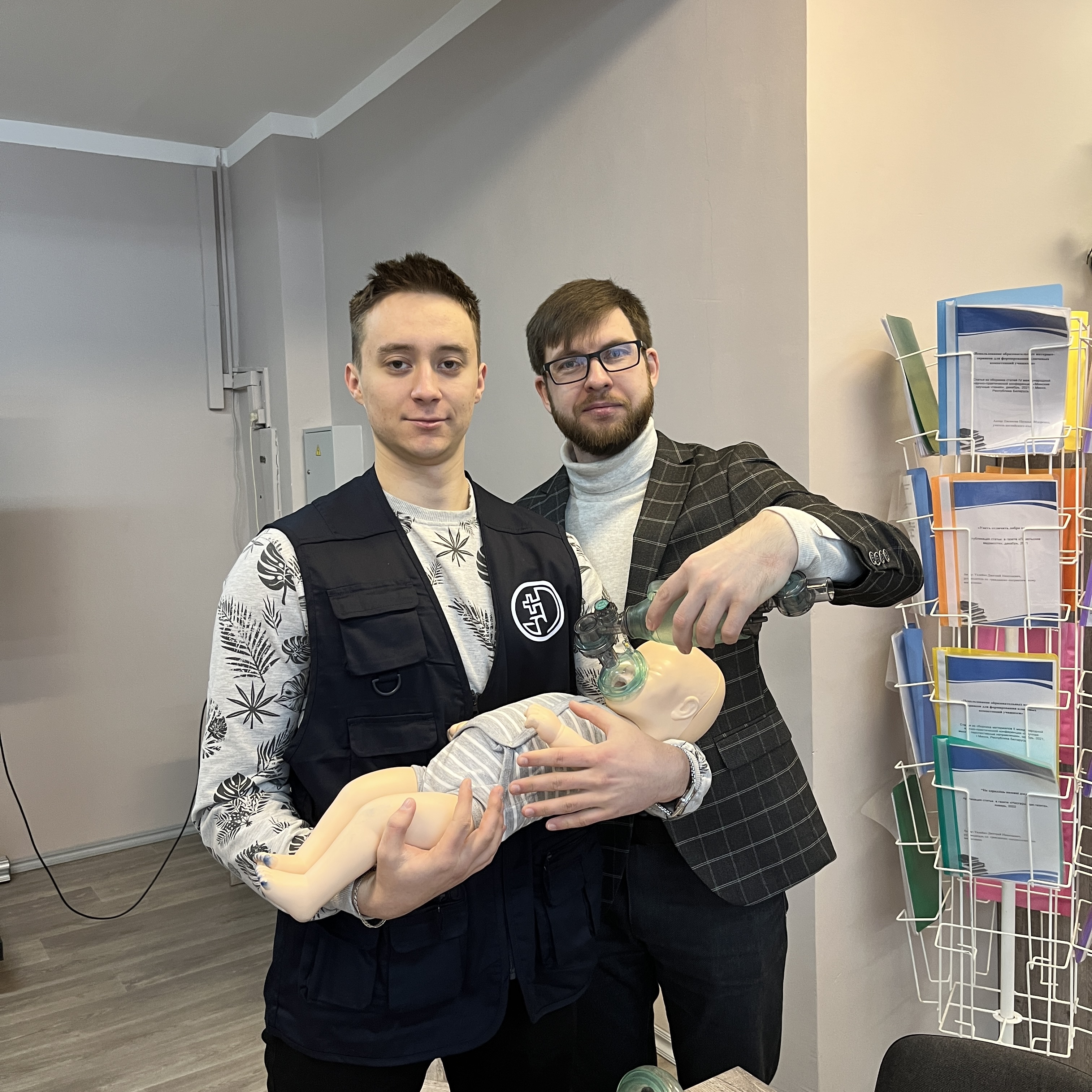 Максим и Егор - волонтеры медицинского отряда «Колибри» учебного центра практической подготовки и симуляционного обучения, поэтому они также провели для будущих студентов мастер-класс по первой помощи с использованием тренировочных манекенов.