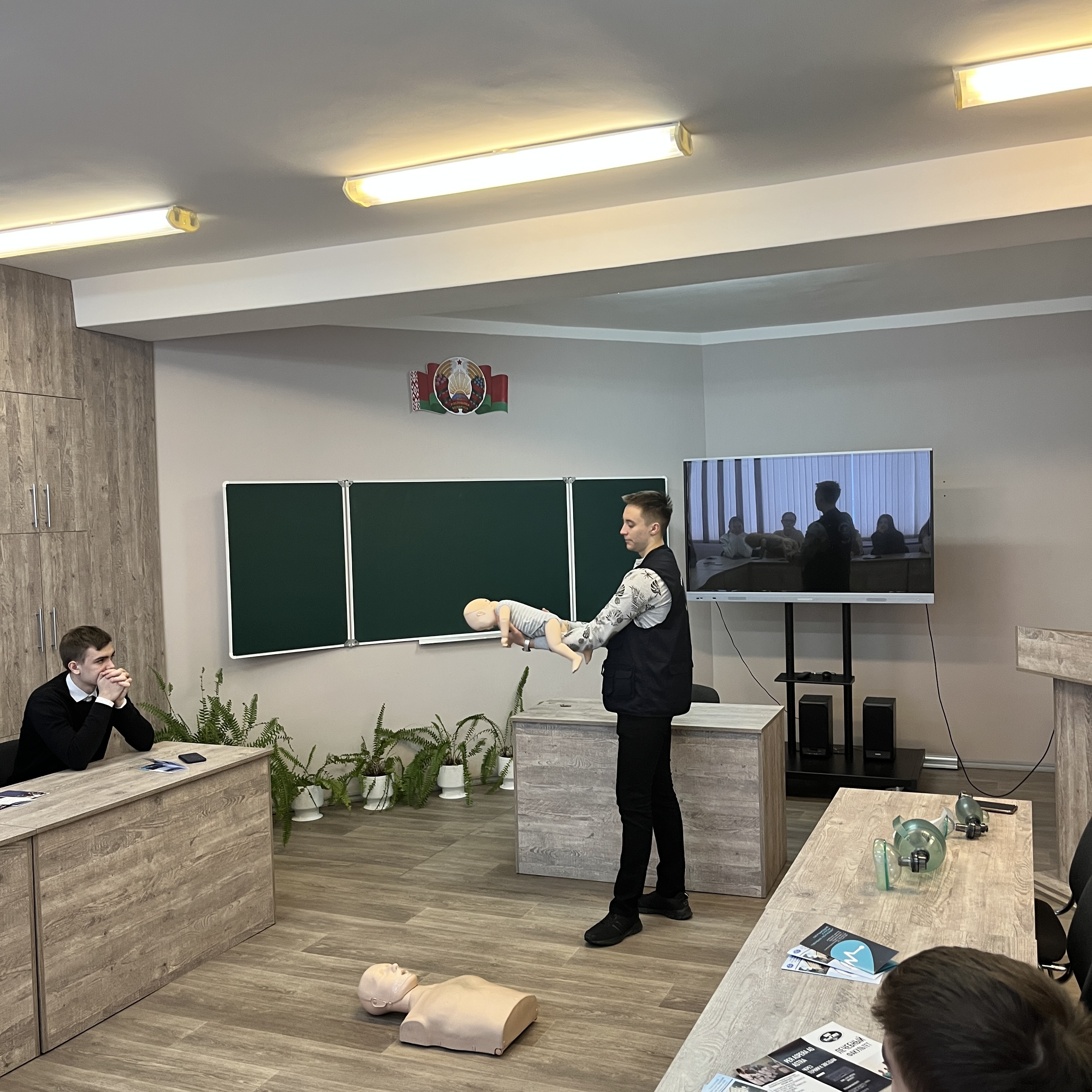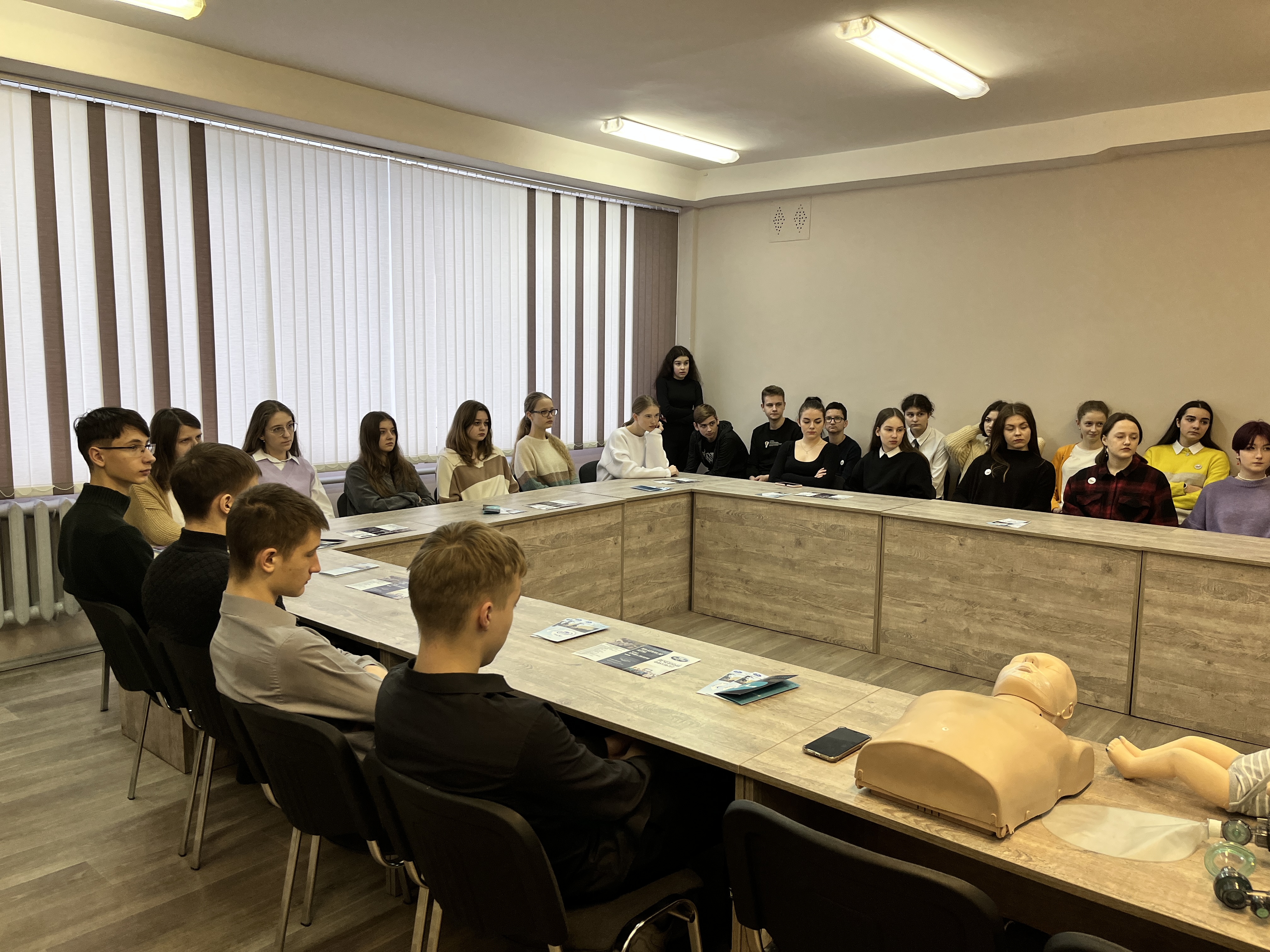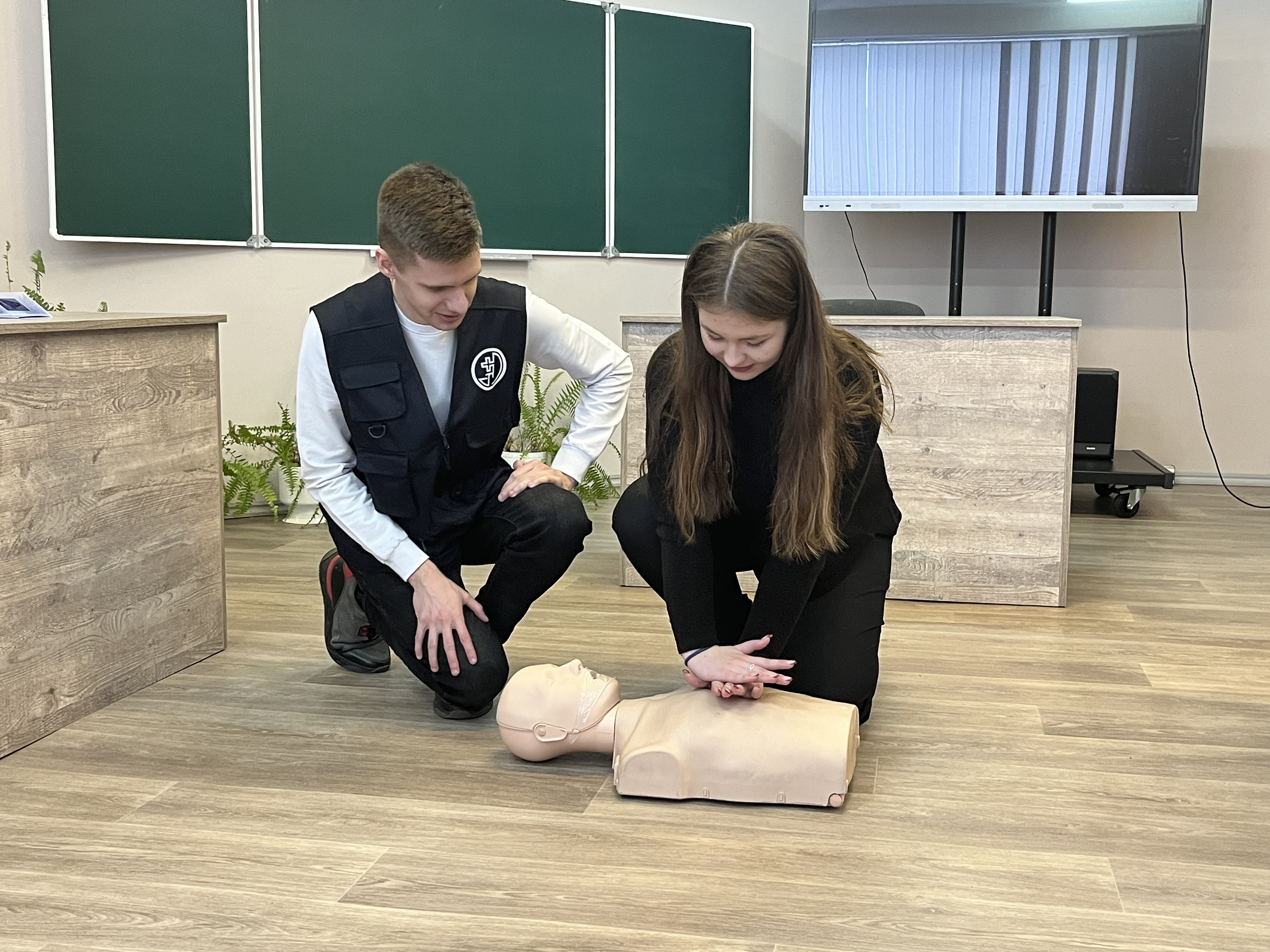 Любой из присутствовавших на собрании ребят мог попробовать себя в роли медицинского работника, оказывающего первую помощь пострадавшему. Для молодых ребят это был очень полезный и интересный опыт!