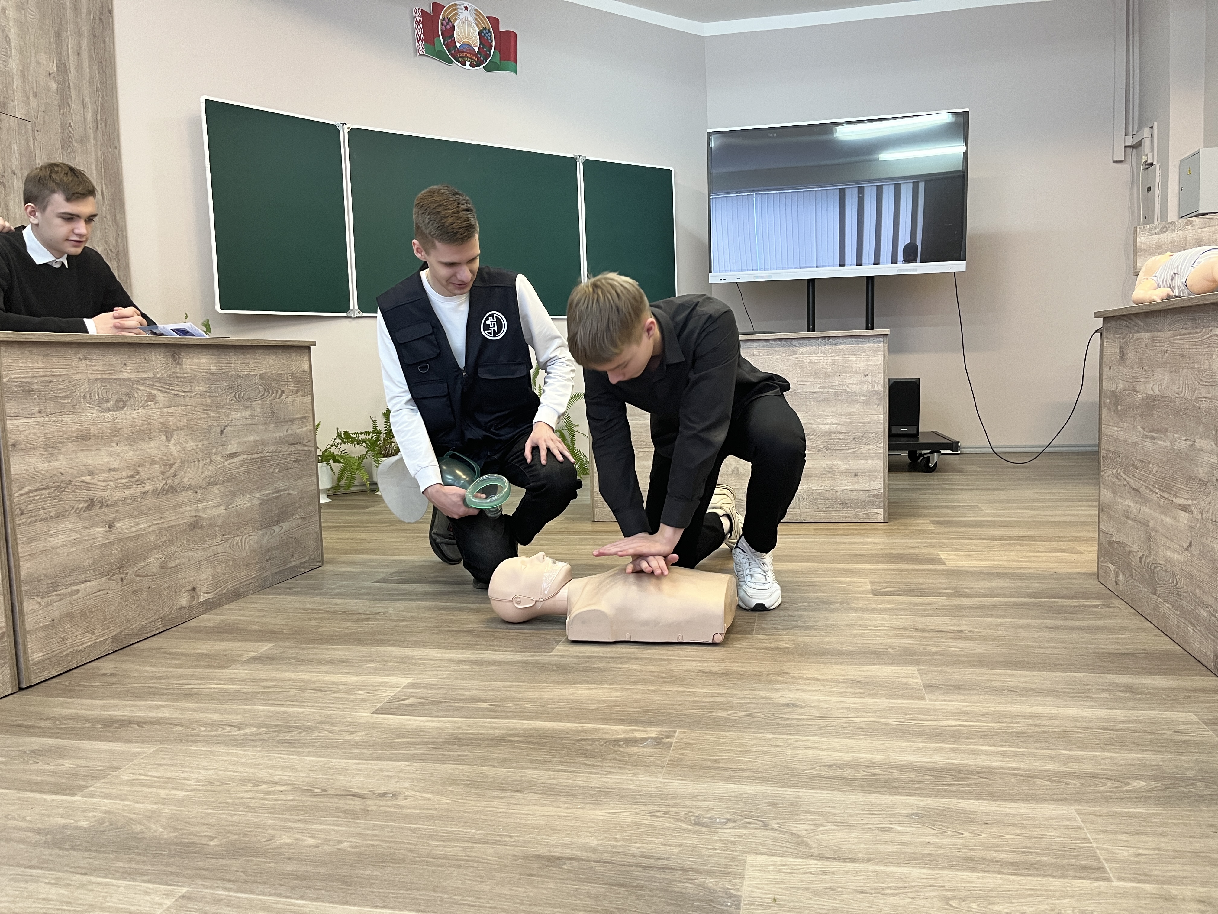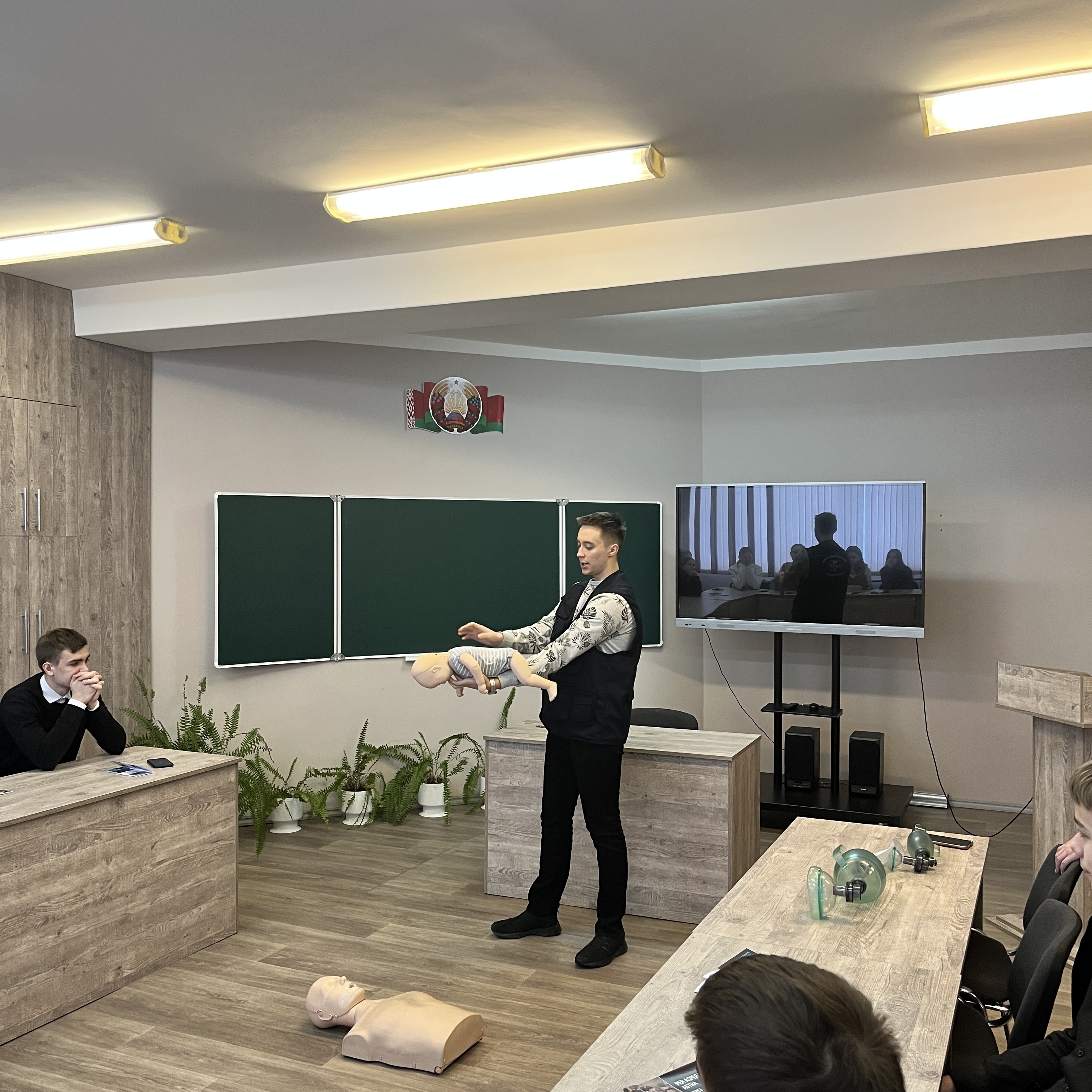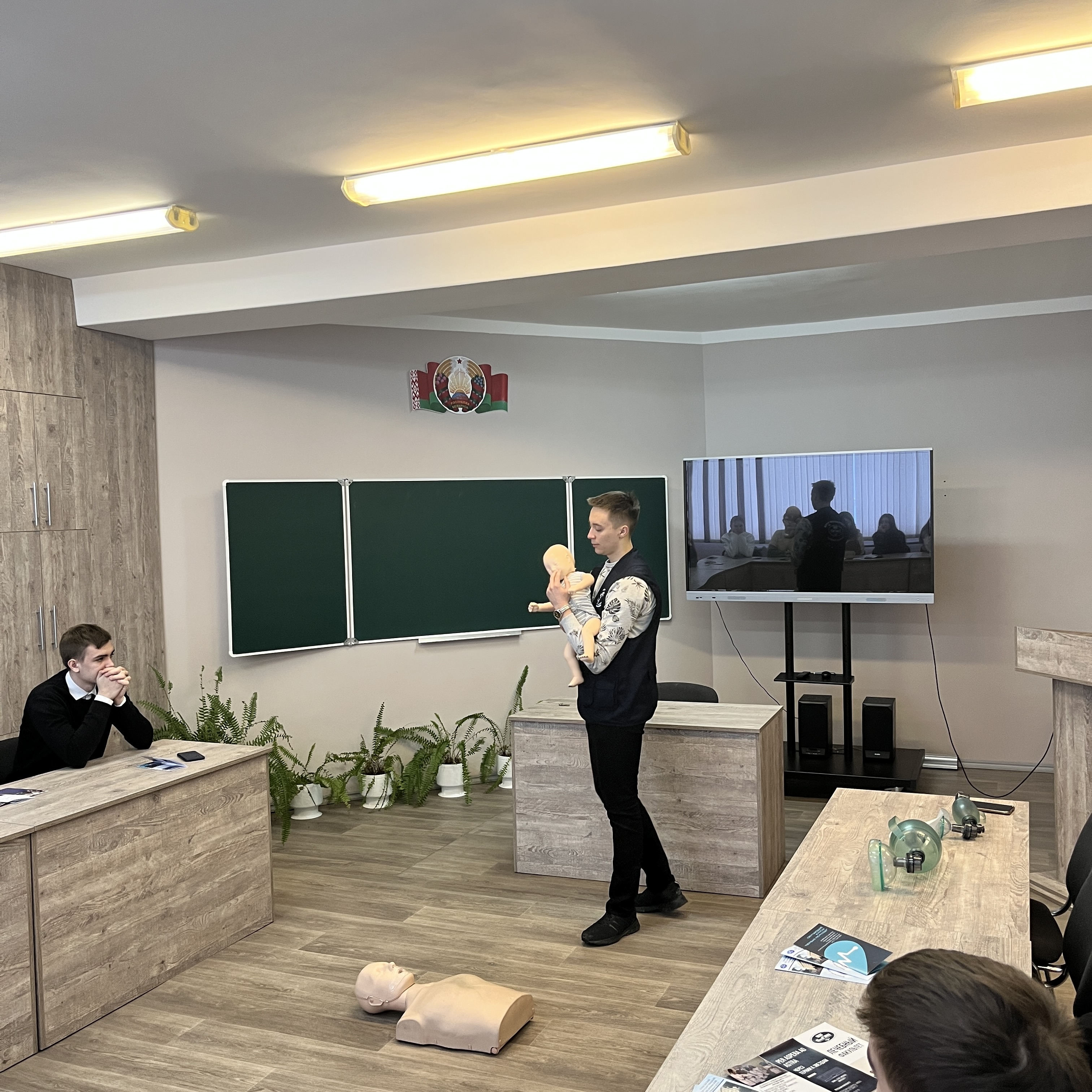 Любой из присутствовавших на собрании ребят мог попробовать себя в роли медицинского работника, оказывающего первую помощь пострадавшему. Для молодых ребят это был очень полезный и интересный опыт!