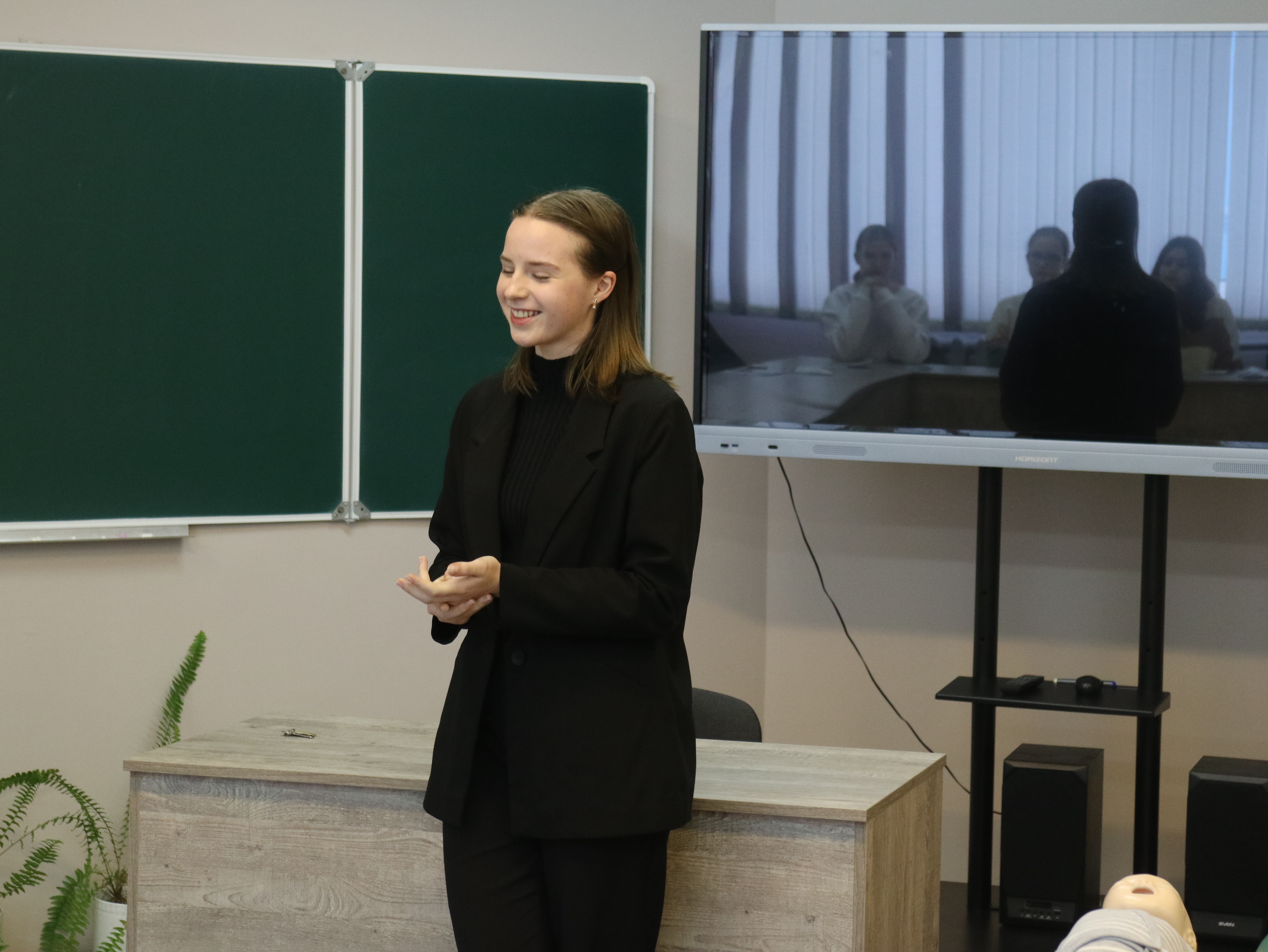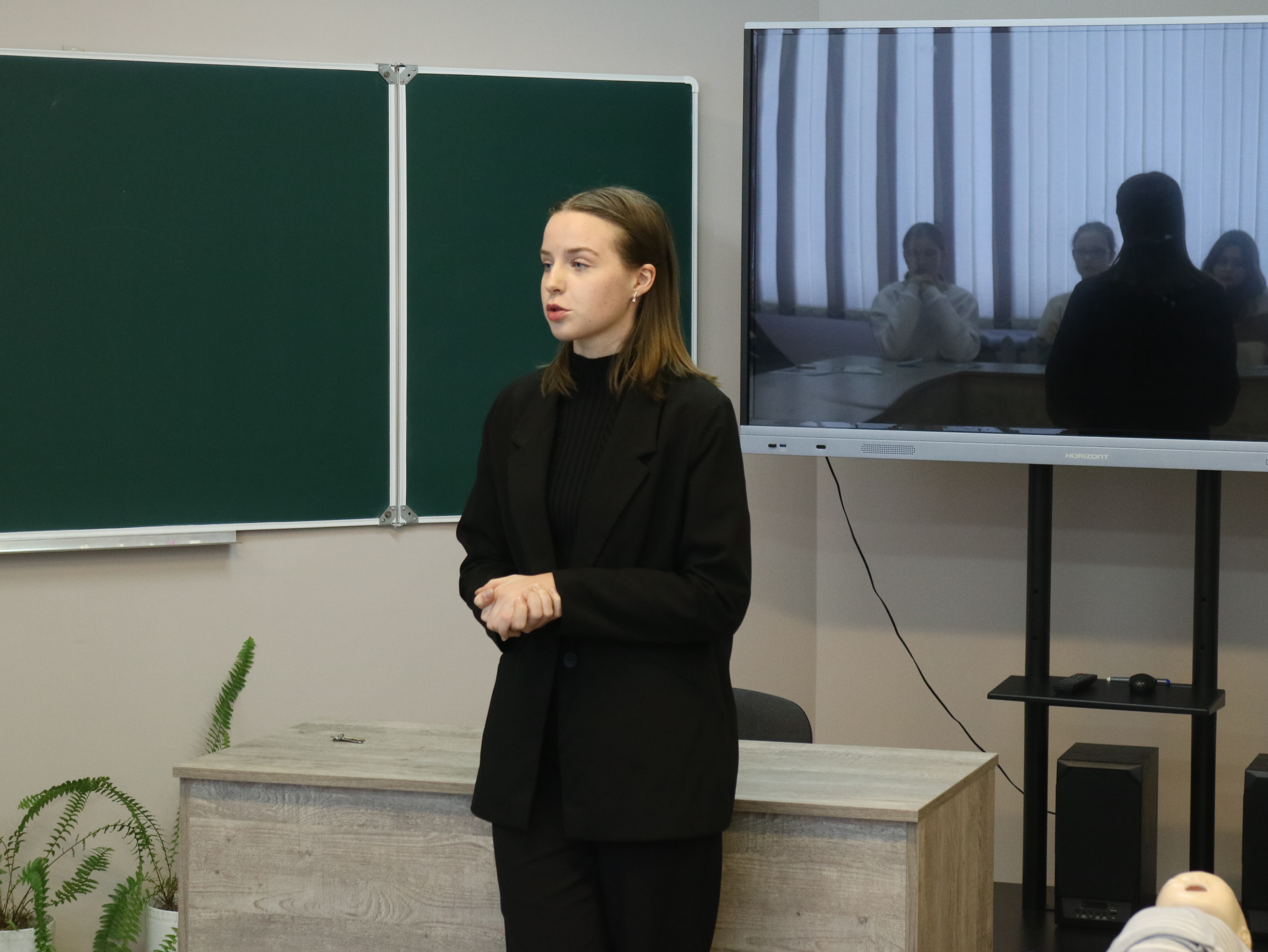После об учебе по специальности медико-диагностическое дело и возможностях получения богатого практического опыта по профильным предметам для МДФ в период обучения на медико-диагностическом факультете ребятам из 59-й школы рассказала студентка 1-го курса МДФ Вероника Игоревна Колесникова.