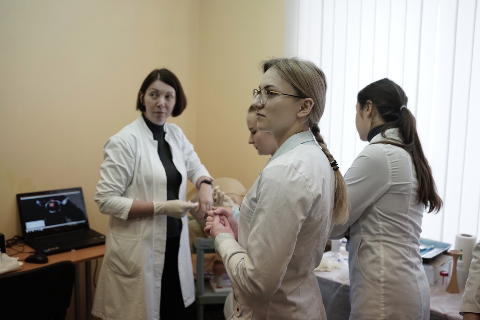 Так, современные муляжи, фантомы имитируют различные части тела и органы, а высокореалистичные роботы - симуляторы пациента позволяют проводить различные диагностические и лечебные манипуляции. В таких условиях студенты прорабатывают навык быстрого принятия решений и безупречного выполнения ряда манипуляций и вмешательств, эффективной работы в составе врачебной бригады, особенно при неотложных состояниях. Кроме того, со студентами работают актеры Гомельского молодежного театра, которые помогают прорабатывать этические моменты на приеме, выход из конфликтных ситуаций с пациентами.