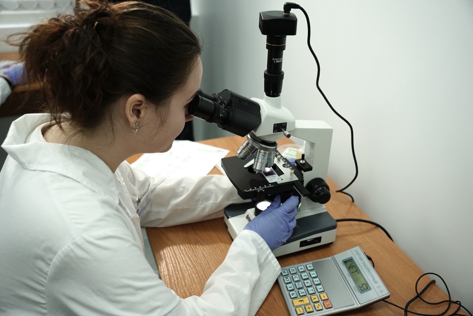 В лаборатории представлен полный комплекс оборудования для проведения исследований: гематологичесикие анализаторы, микроскопы со встроенной камерой с возможностью просмотра изображения на компьютере, вакутейнеры.