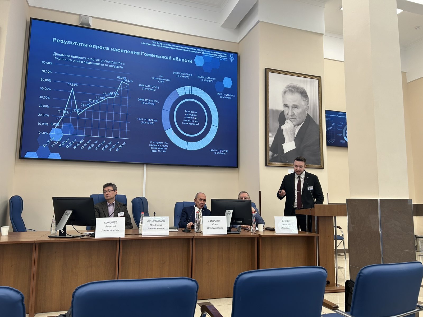 В.С.Волчек выступил с докладом на пленарном заседании на тему "Организационные технологии управления рисками в скрининге и раннем выявлении рака. Опыт Гомельской области", который вызвал большой интерес у коллег и специалистов из разных регионов. Данное исследование не только обозначило актуальные проблемы в области здравоохранения, но и предложило конкретные шаги по их решению.
