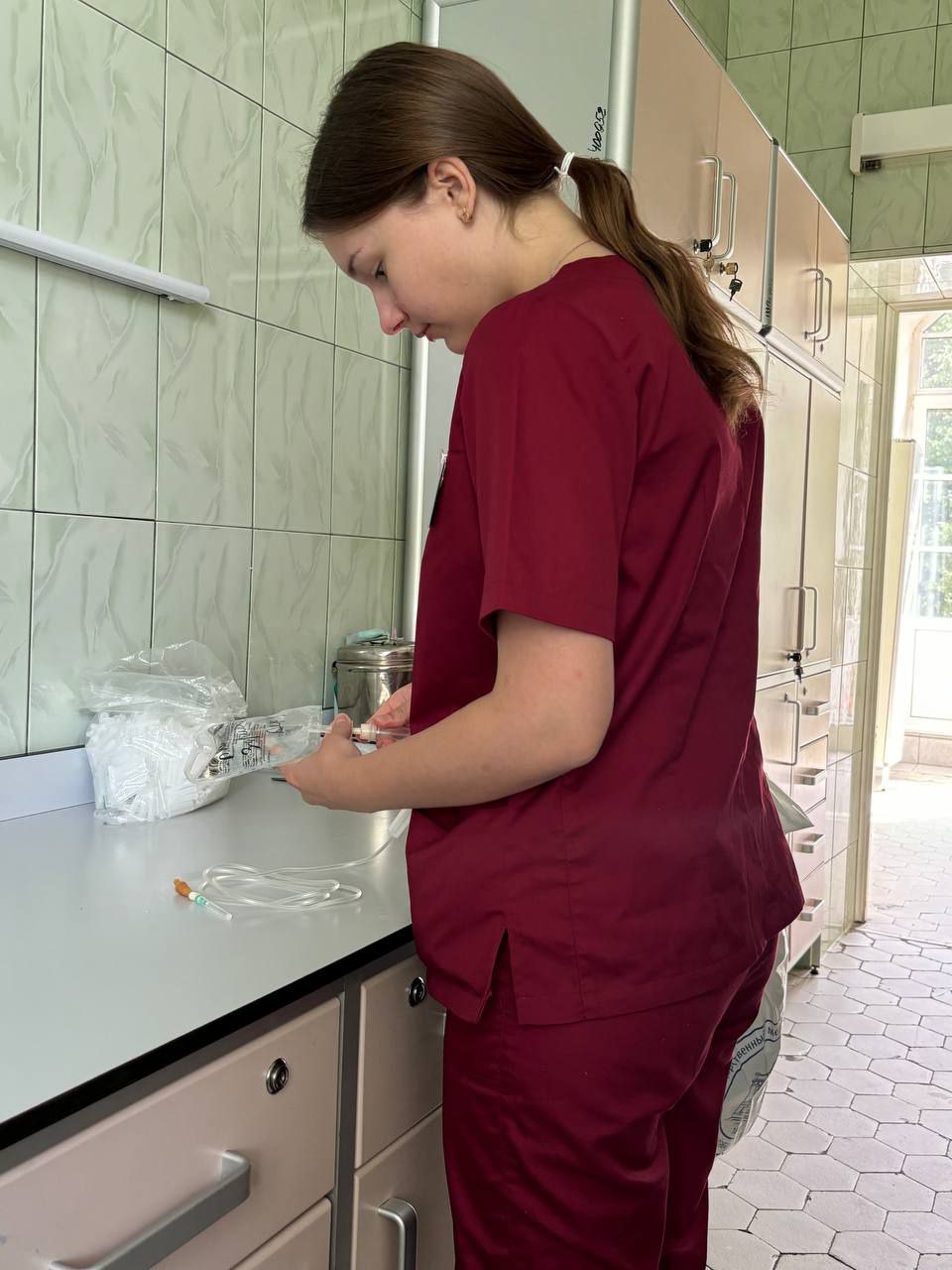 Мы побывали в отделении травматологии и ортопедии, в котором, благодаря профессионализму медперсонала и их безгранично ценному опыту, научились осуществлять различные манипуляции. Такие как перевязки, наложение гипса на травмированную конечность, обработка и снятие швов, обезболивающие инъекции, дезинфекция поверхностей. Мы помогали транспортировать пациентов на перевязки и процедуры.