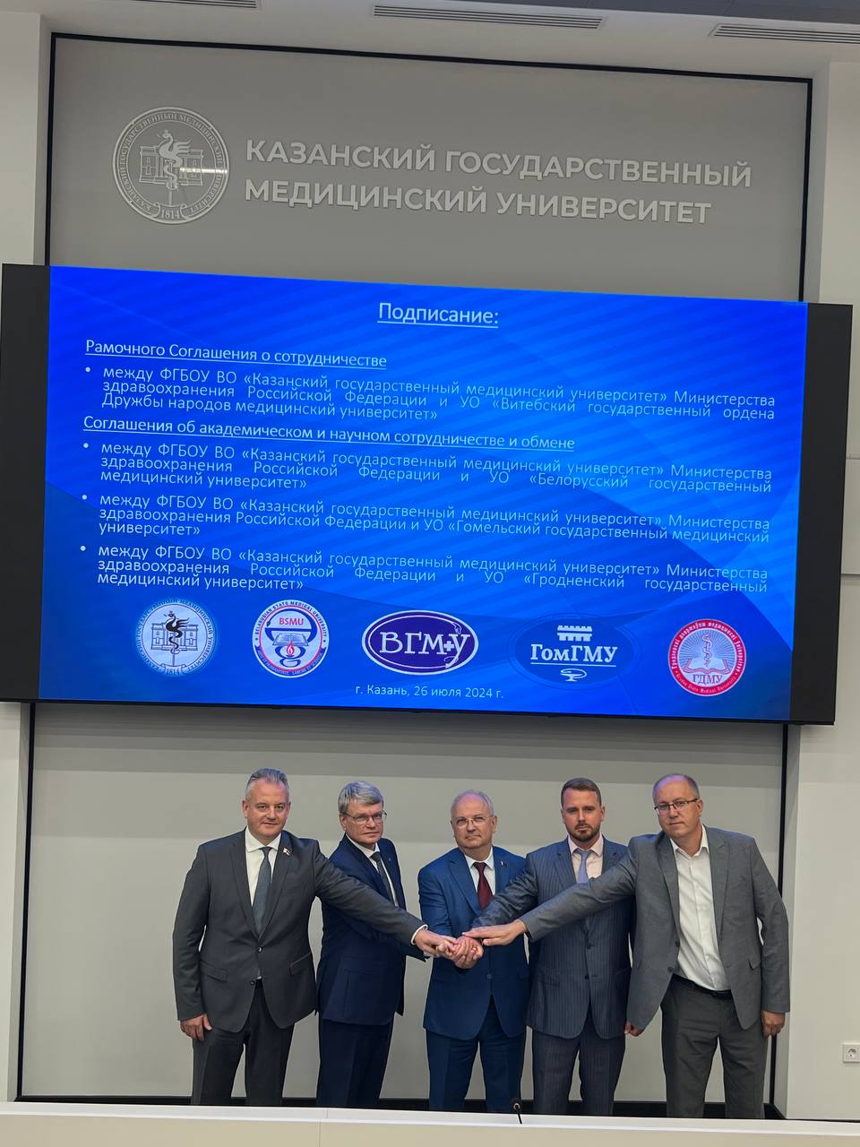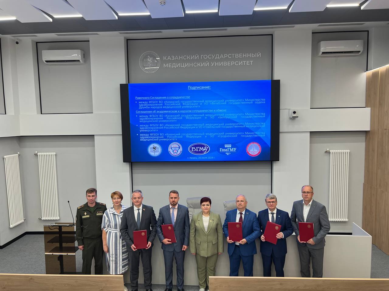 В Казанском государственном медицинском университете начальник главного управления организационно-кадровой работы и профессионального образования Министерства здравоохранения Республики Беларусь Колюпанова О.Н., ректор БГМУ Рубникович С.П., ректор ВГМУ Чуканов А.Н., ректор ГомГМУ Стома И.О., первый проректор, и.о. ректора ГрГМУ Болтач А.В., начальник Республиканского центра профессиональной аттестации и симуляционного обучения медицинских, фармацевтических работников БГМУ Мирончик Н.В., начальник военно-медицинского института БГМУ Клименков Д.Ю. встретились с ректором КазГМУ Созиновым А.С., деканом и заведующими кафедрами университета.