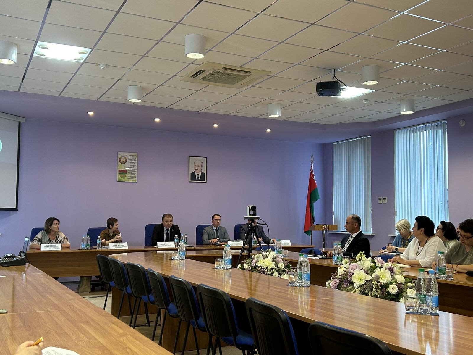 Гомельский государственный медицинский университет на заседании представили проректор по научной работе к.м.н., доцент Евгений Викторович Воропаев и заведующий кафедрой общественного здоровья и здравоохранения с курсом ФПКиП д.м.н., профессор Тамара Михайловна Шаршакова.