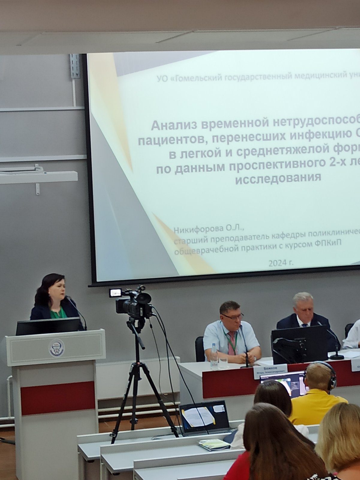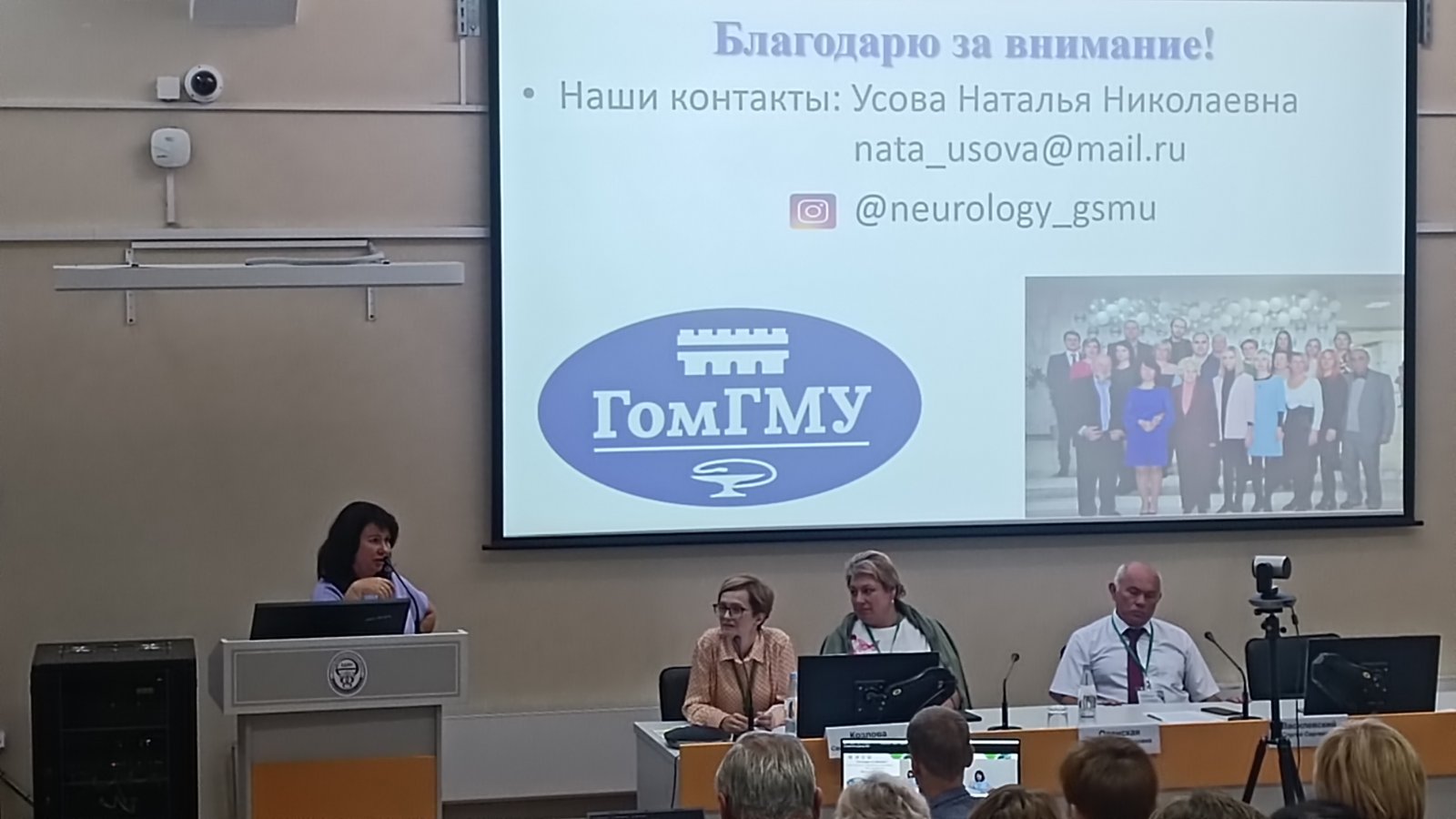 Гомельский государственный медицинский университет представили декан факультета повышения квалификации и переподготовки д.м.н., профессор Наталья Викторовна Галиновская, заведующий кафедрой неврологии и нейрохирургии с курсами медицинской реабилитации, психиатрии, ФПКиП к.м.н., доцент Наталья Николаевна Усова и старший преподаватель кафедры поликлинической терапии и общеврачебной практики с курсом ФПКиП Ольга Леонидовна Никифорова.