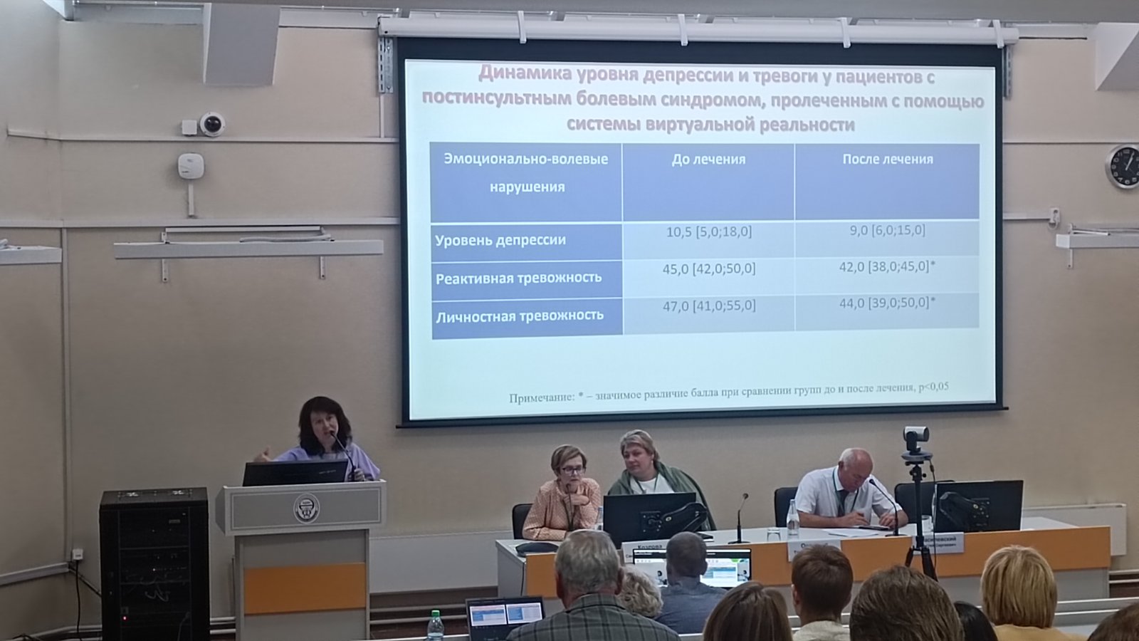 Наталья Николаевна выступила с докладом на тему: "Оценка эффективности использования мультимодального эфферентного воздействия в реабилитации постинсультной боли", который вызвал большой интерес у научного собрания.