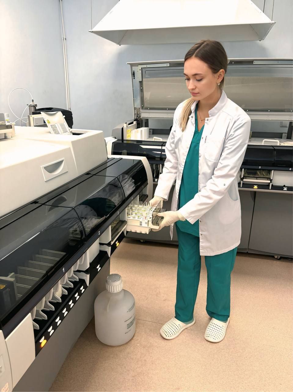 Как только я сюда пришла, меня сразу начали всему учить: как пользоваться профессиональным оборудованием, как ставить контроли и калибраторы. Врачи в РНПЦ с радостью делятся опытом, все рассказывают и показывают.