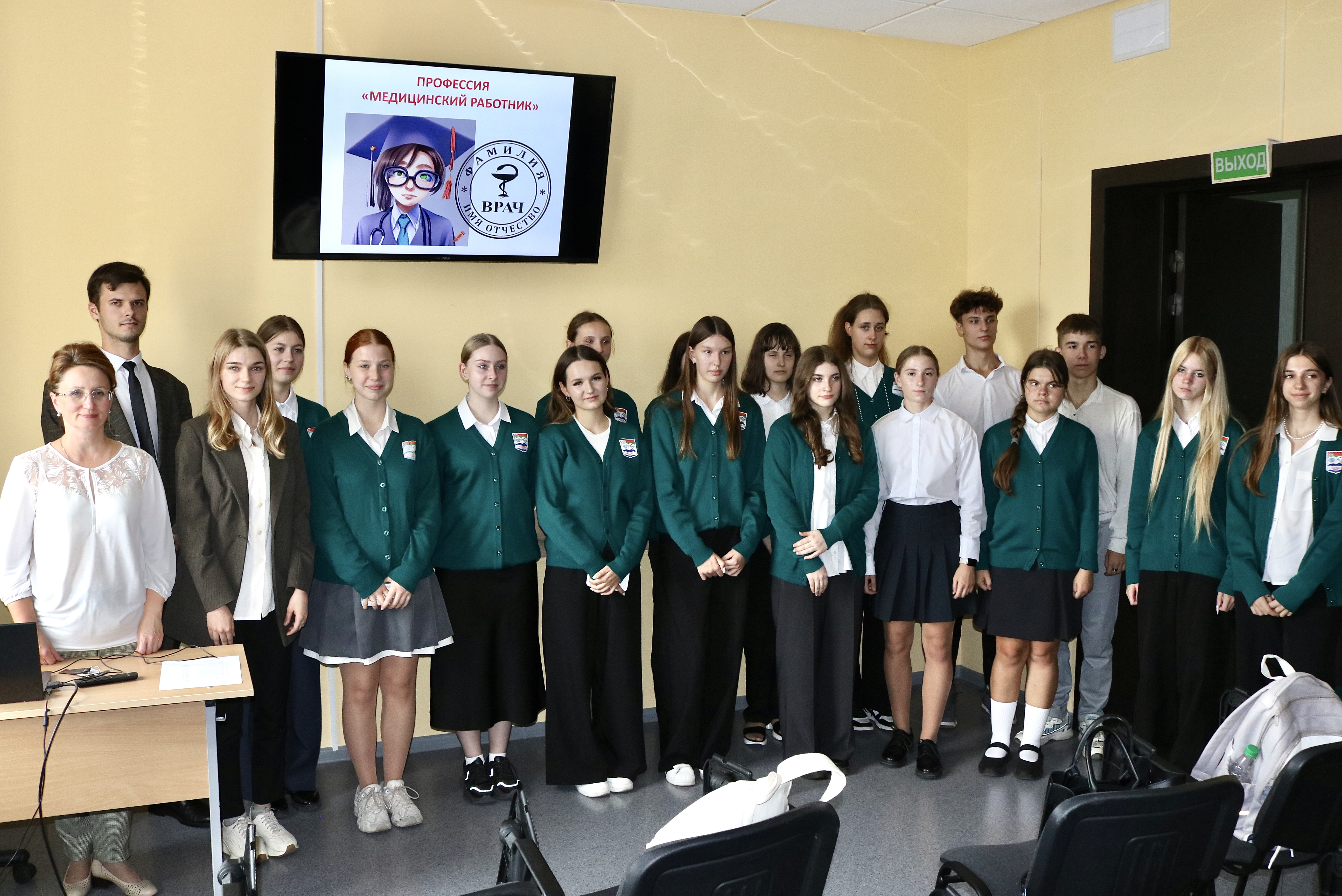 После экскурсии школьники встретились с заместителем декана лечебного факультета О.Н.Кононовой, которая провела факультативное занятие на тему «Введение в медицинскую профессию». На занятии были развеяны основные мифы о медицине и объяснены важность долга, которые врачи исполняют, и специфика профессии, а студентка IV курса лечебного факультета И.М.Пасканная рассказала интересные факты об узких врачебных специальностях.