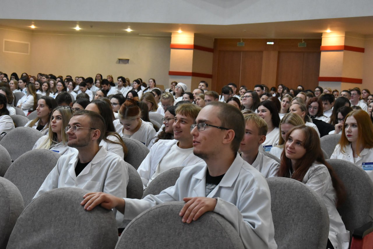 Студенты VI курса лечебного факультета Екатерина Фильченко и Елена Полякова подготовили и провели квиз на знание истории праздника, что очень оживило студенческую аудиторию.