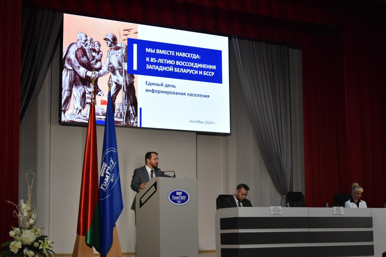 В рамках 85-летней годовщины воссоединения Западной Беларуси и БССР в Гомельском государственном медицинском университете 16 сентября прошла диалоговая площадка «Беларусь – страна единства».