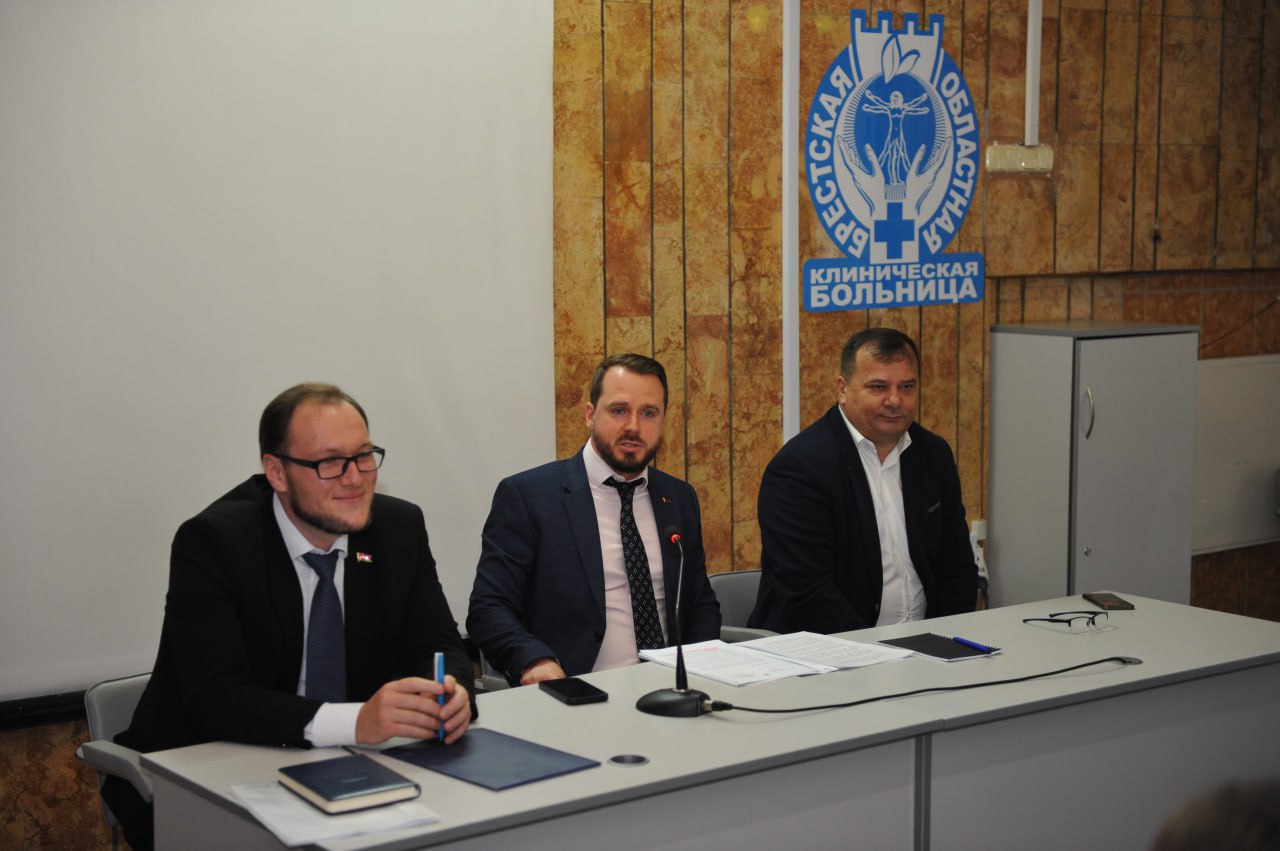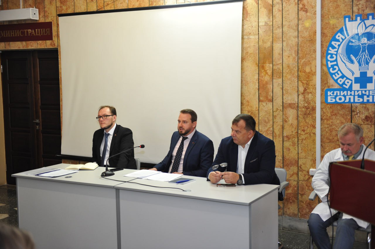 На базе Брестской областной клинической больницы состоялась встреча с молодыми специалистами, выпускниками ГомГМУ и других университетов, а также интернами, работающими в различных учреждениях здравоохранения Бреста. На встрече присутствовало 40 молодых специалистов и более 110 интернов.