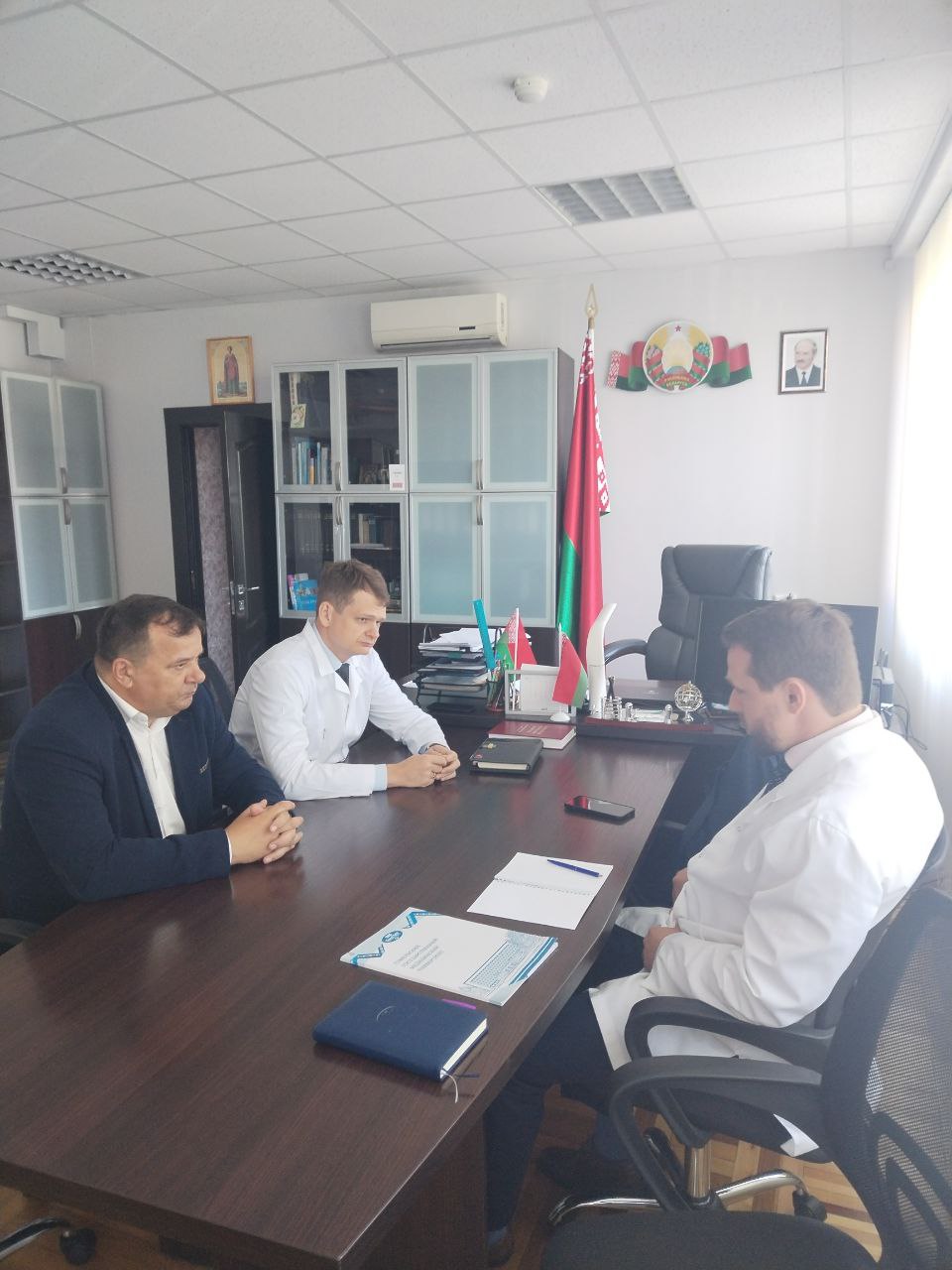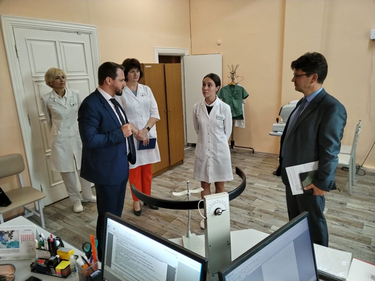 В конце встречи ректор посетил кабинет врача-офтальмолога, выпускницы ГомГМУ 2022 года А.Э.Криволевич, где ознакомился с обустройством рабочего места молодого специалиста.