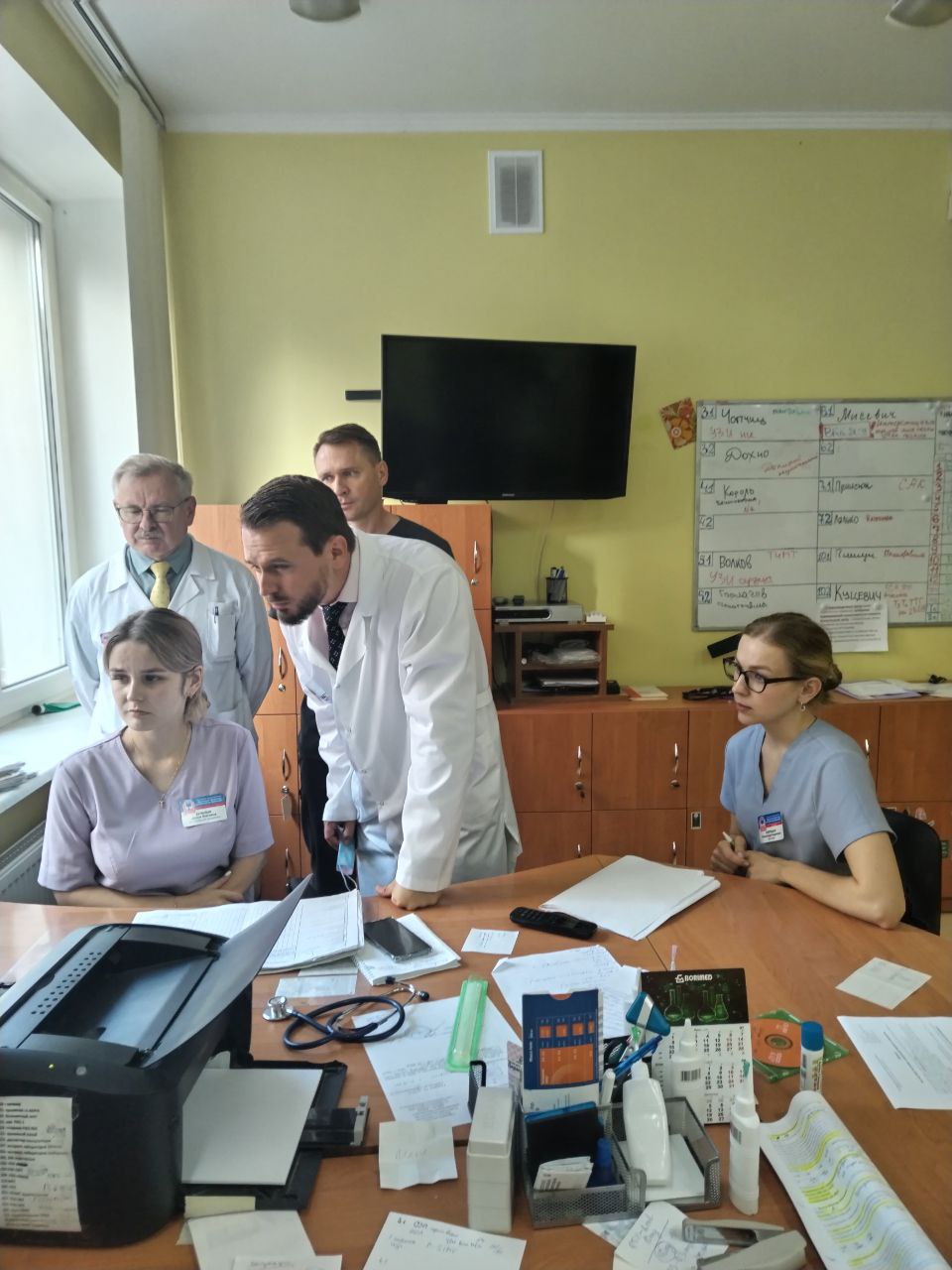 Ректора сопровождали начальник отдела кадров Брестского ГУЗО А.В.Приступчик и главный врач БЦГБ А.В.Мокров.
