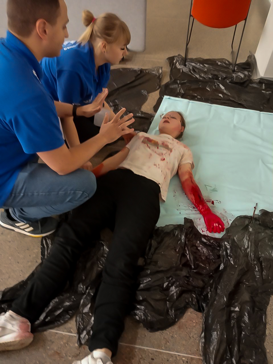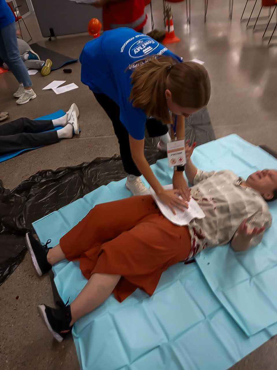 И, конечно же, самая главная цель нашего визита - чемпионат по первой помощи с симуляционной игрой. Это было невероятно! 10 станций, 10 различных ситуаций с участием актеров, большое количество пострадавших (от взрыва гранаты до ДТП), бесценный опыт. Мы не только усовершенствовали свои знания и умения, но и ещё больше сплотились с командой, научились распределять обязанности и помогать друг другу.