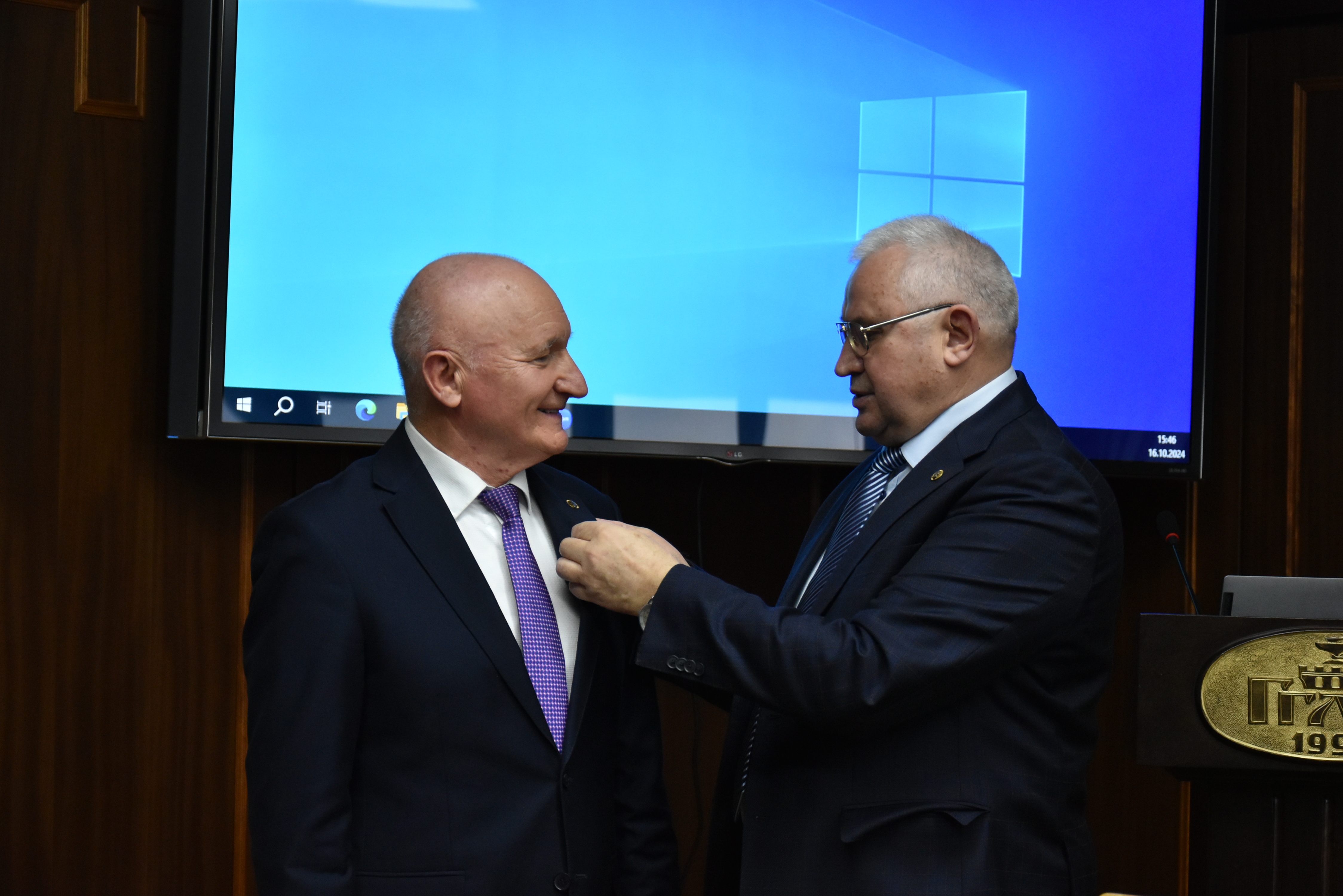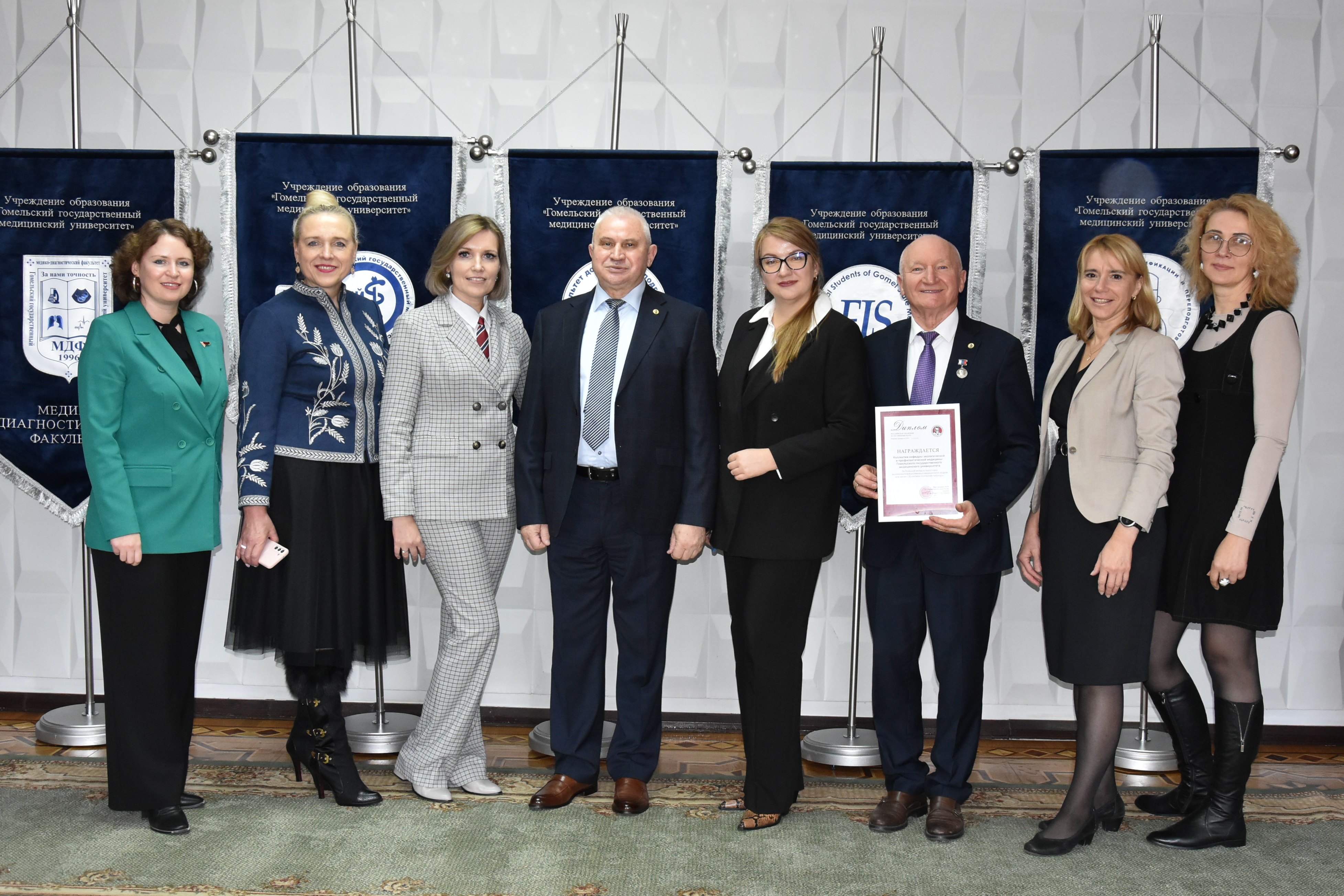 Почетного доктора ГомГМУ и давнего доброго друга нашего университета приветствовал проректор по учебной работе член-корреспондент РАЕН, доктор биологических наук, профессор Виктор Александрович Мельник.