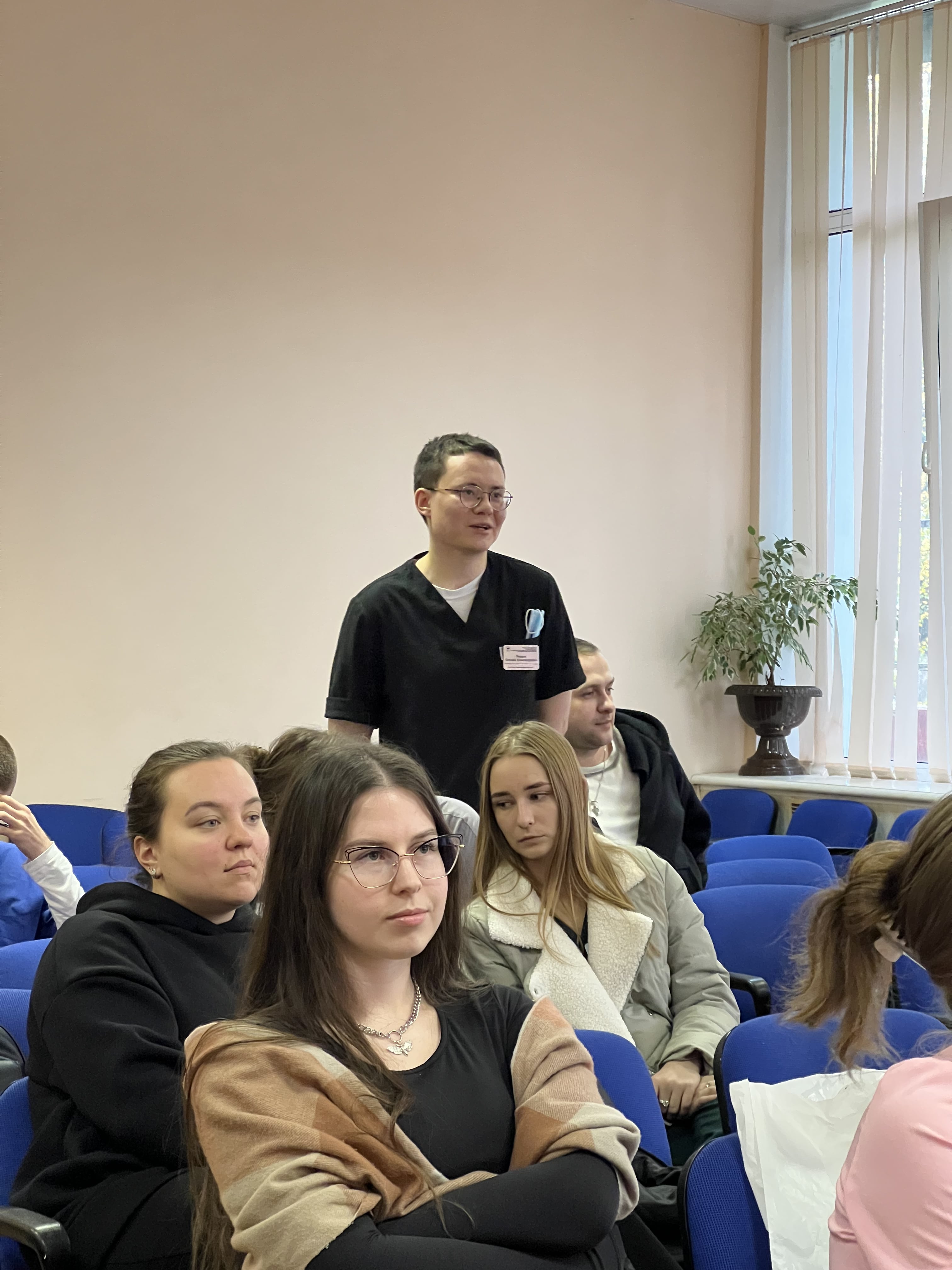 Заведующий кафедрой анестезиологии и реаниматологии Сергей Валентинович Коньков 18 октября встретился в интернами, проходящими подготовку на базе Минской областной клинической больницы.