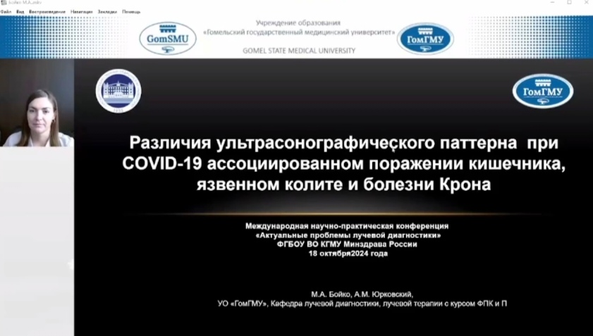 Ассистент кафедры Марина Александровна Бойко поделилась результатами своей работы "РАЗЛИЧИЯ УЛЬТРАСОНОГРАФИЧЕСКОГО ПАТТЕРНА ПРИ COVID-19 АССОЦИИРОВАННОМ ПОРАЖЕНИИ КИШЕЧНИКА, ЯЗВЕННОМ КОЛИТЕ И БОЛЕЗНИ КРОНА".