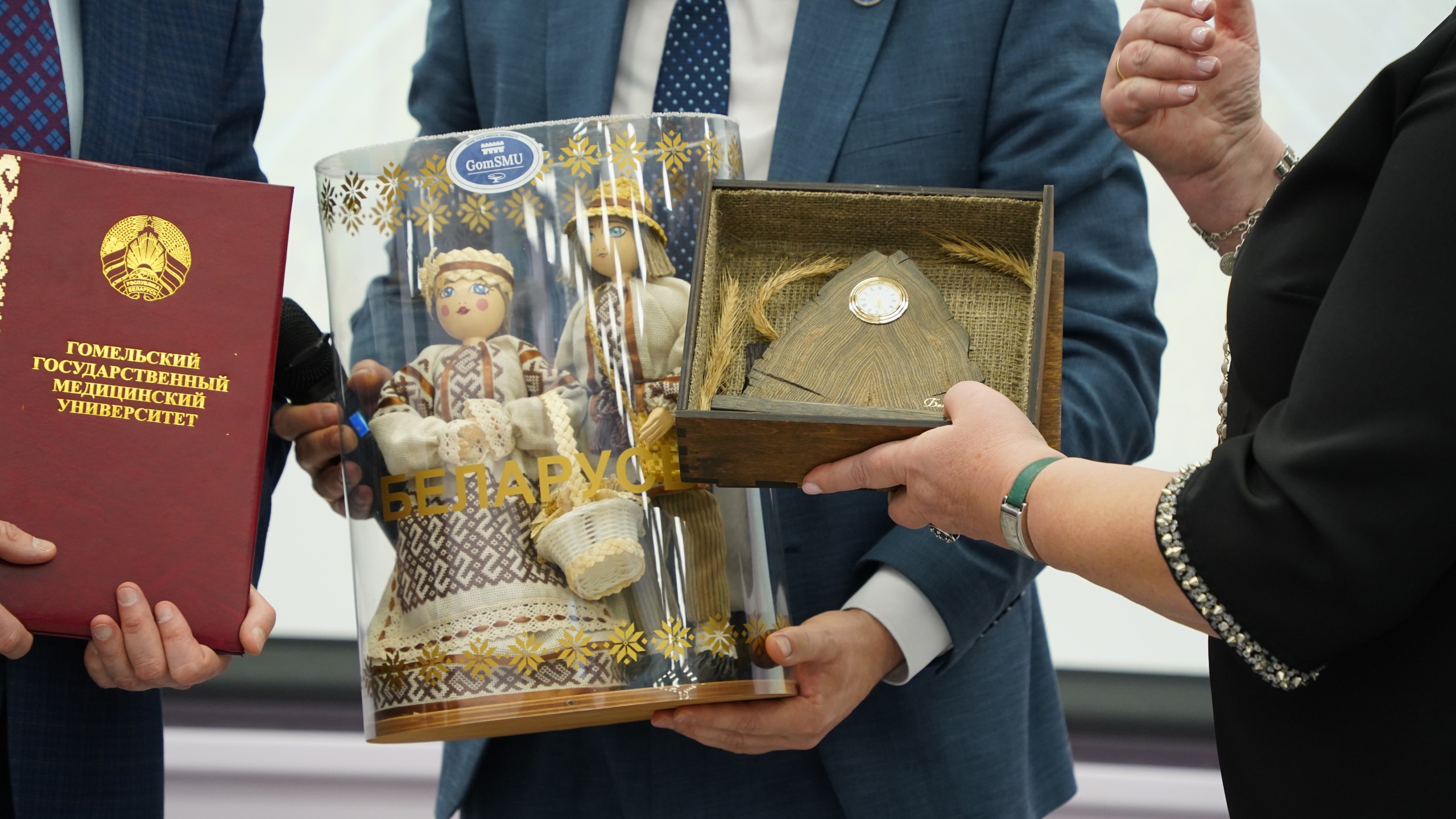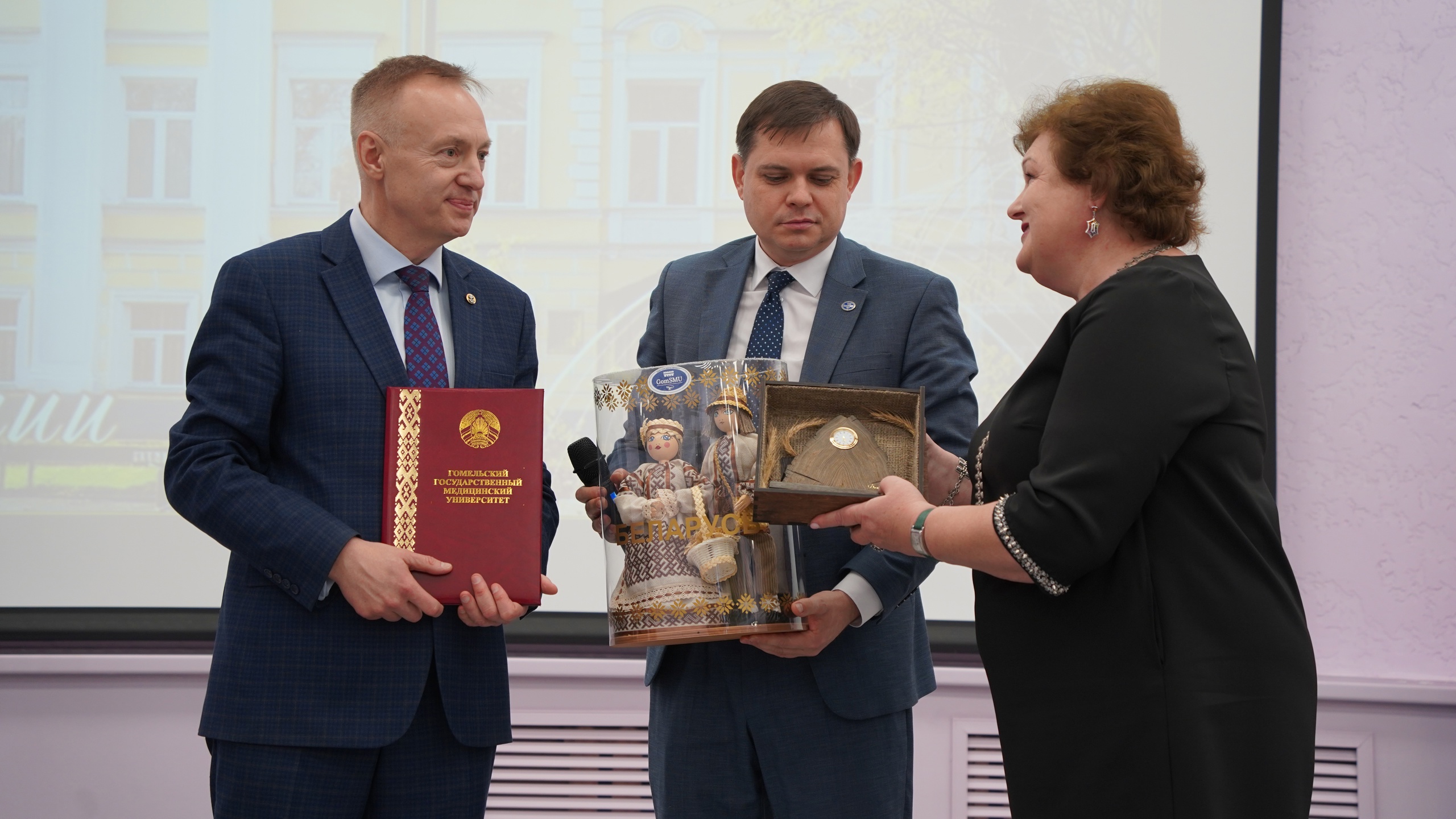 От имени коллектива Гомельского государственного медицинского университета коллектив Ярославского государственного медицинского университета с юбилеем поздравили проректор по международным связям Светлана Анатольевна Анашкина и начальник центра науки, медицинской информации и клинических испытаний Дмитрий Михайлович Лось.