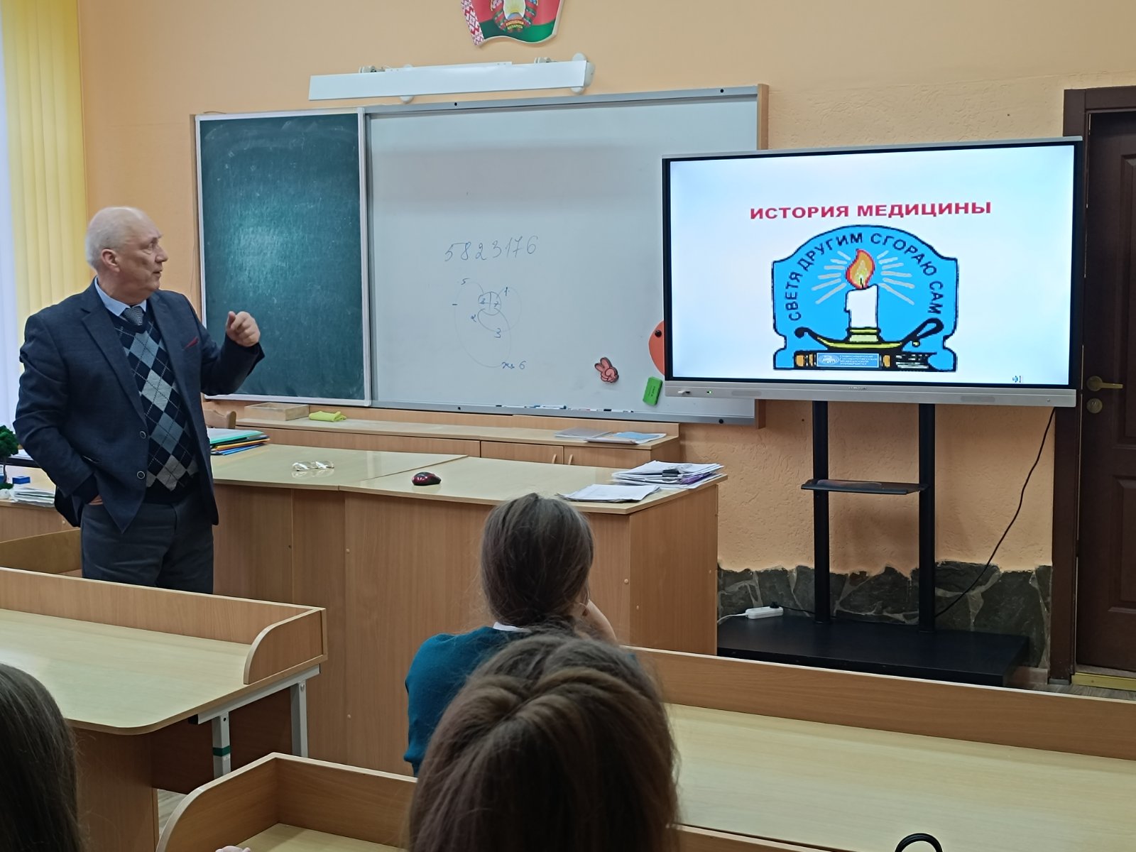 Занятия были посвящены теме «История развития медицины». Михаил Егорович познакомил ребят с основными принципами здравоохранения, рассказал об истории медицины от древних времён до наших дней, об этапах развития отечественной медицины, об основных направлениях деятельности Всемирной организации здравоохранения.