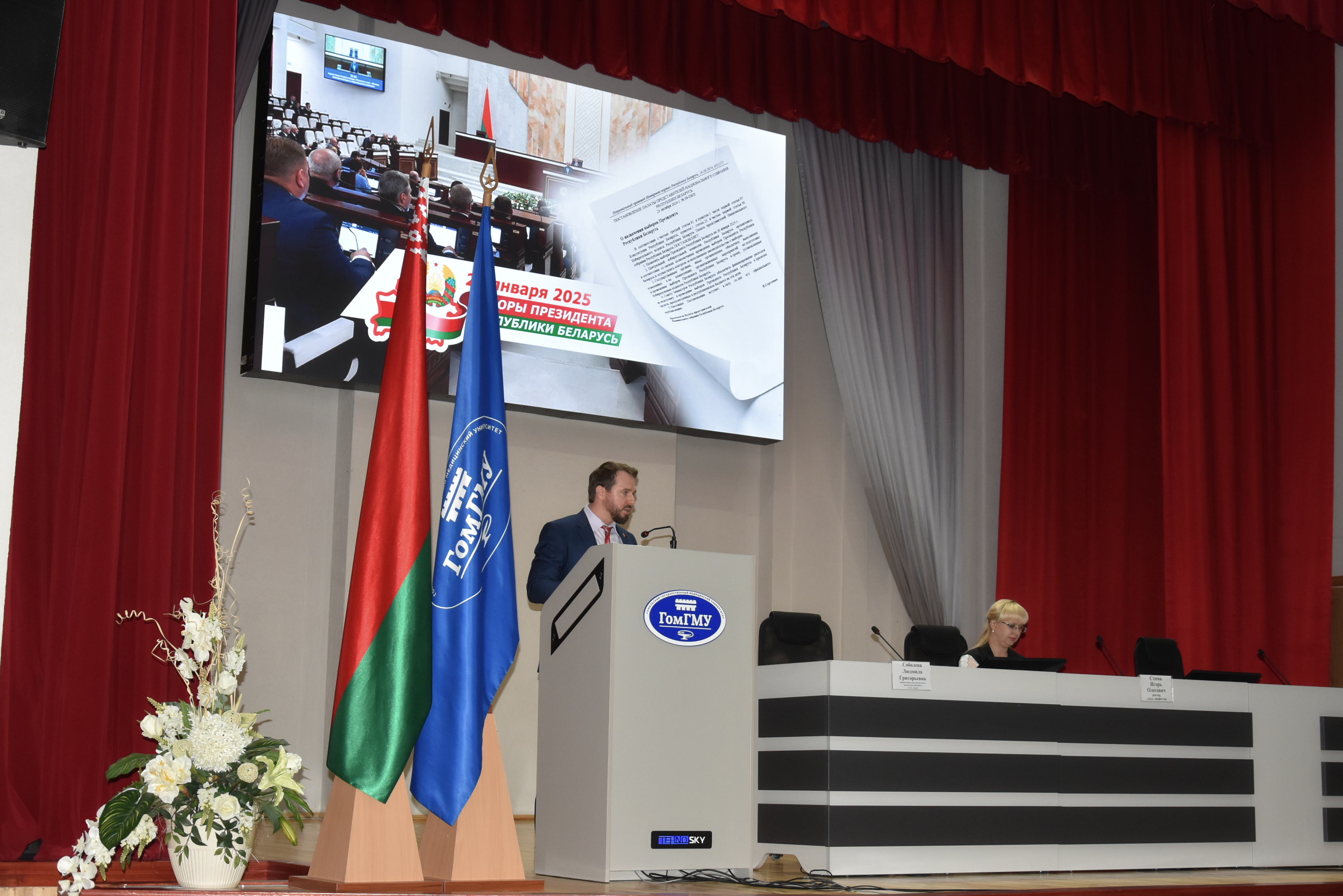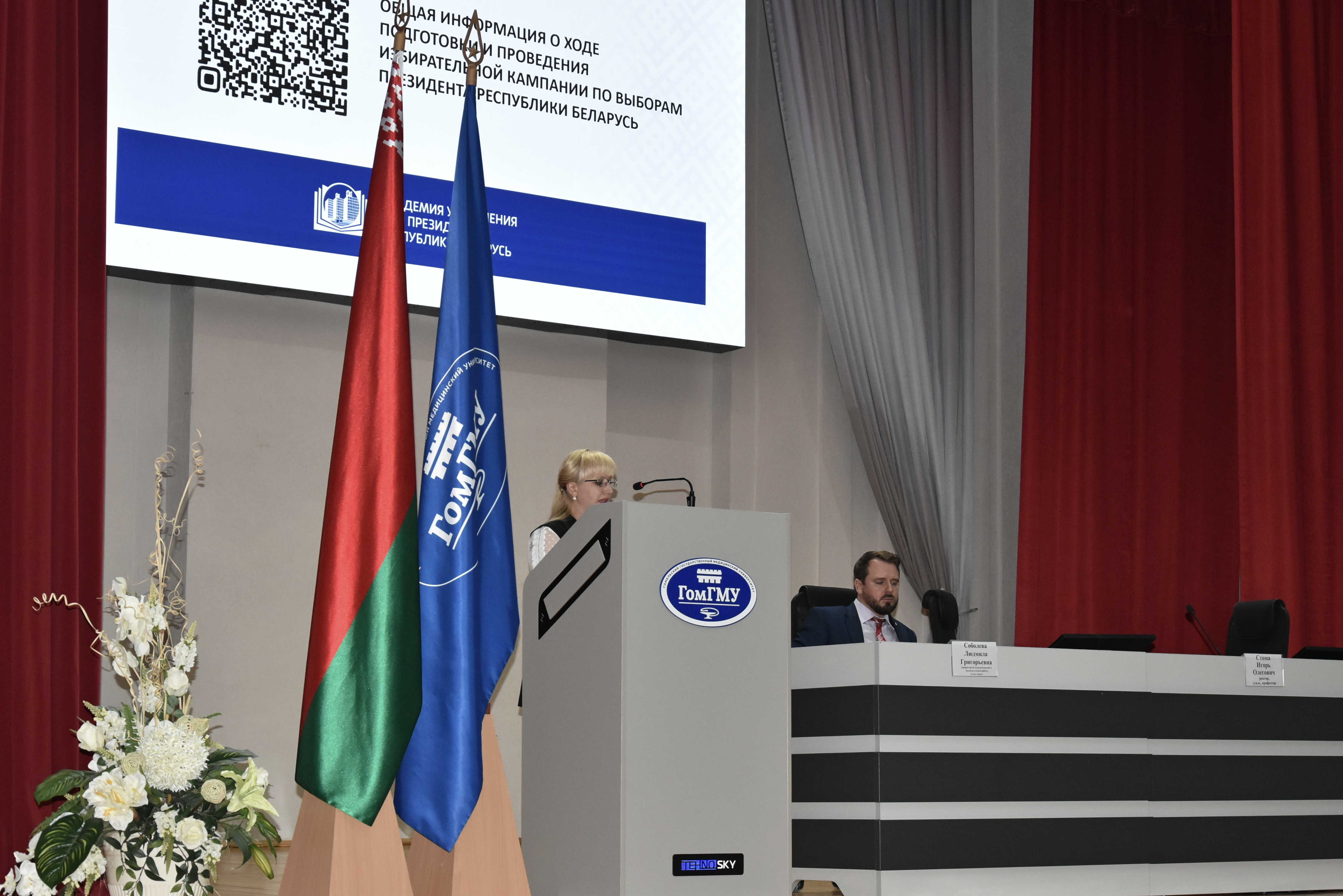 Проректор по идеологической и воспитательной работе Людмила Григорьевна Соболева проинформировала о ходе работы избирательной кампании, календарном плане организационных мероприятий по подготовке и проведению выборов Президента Республики Беларусь.