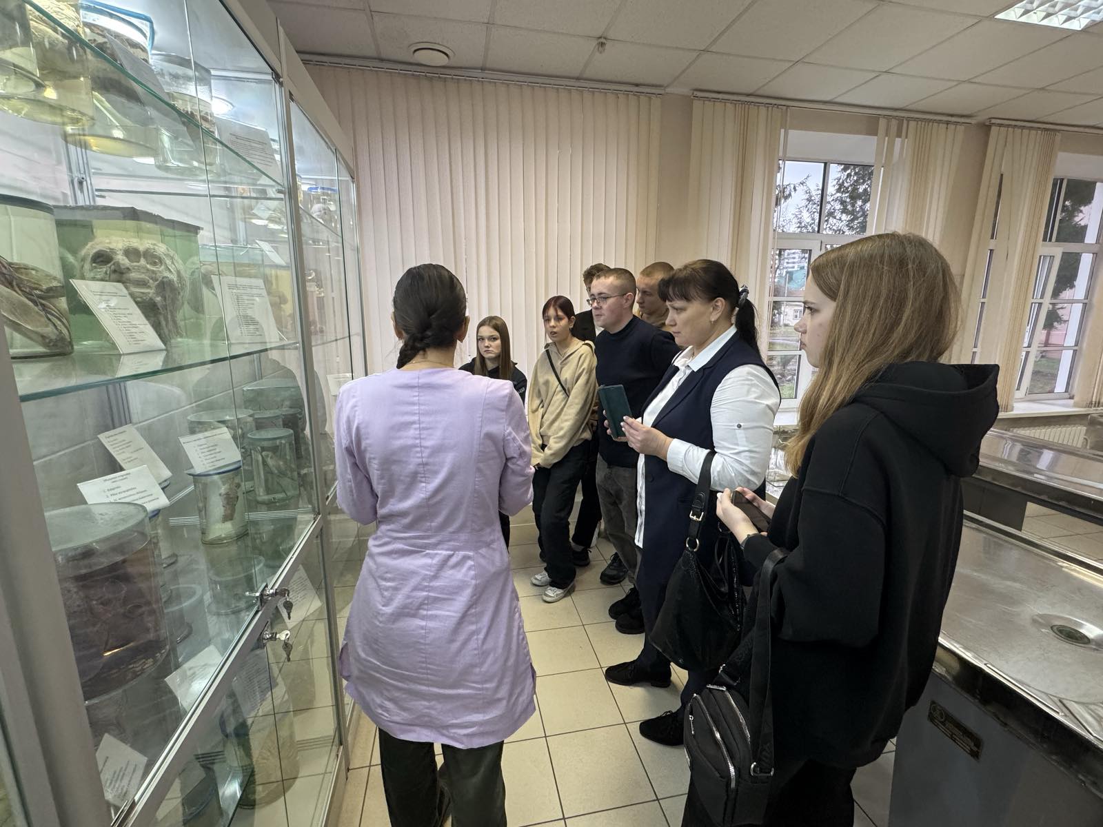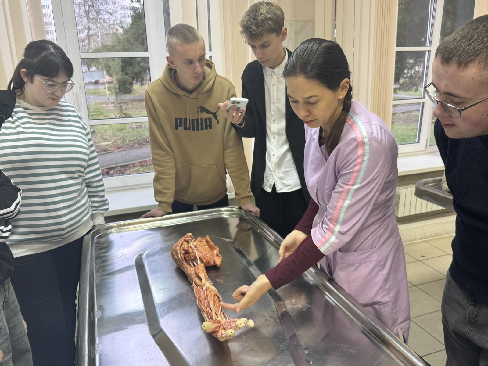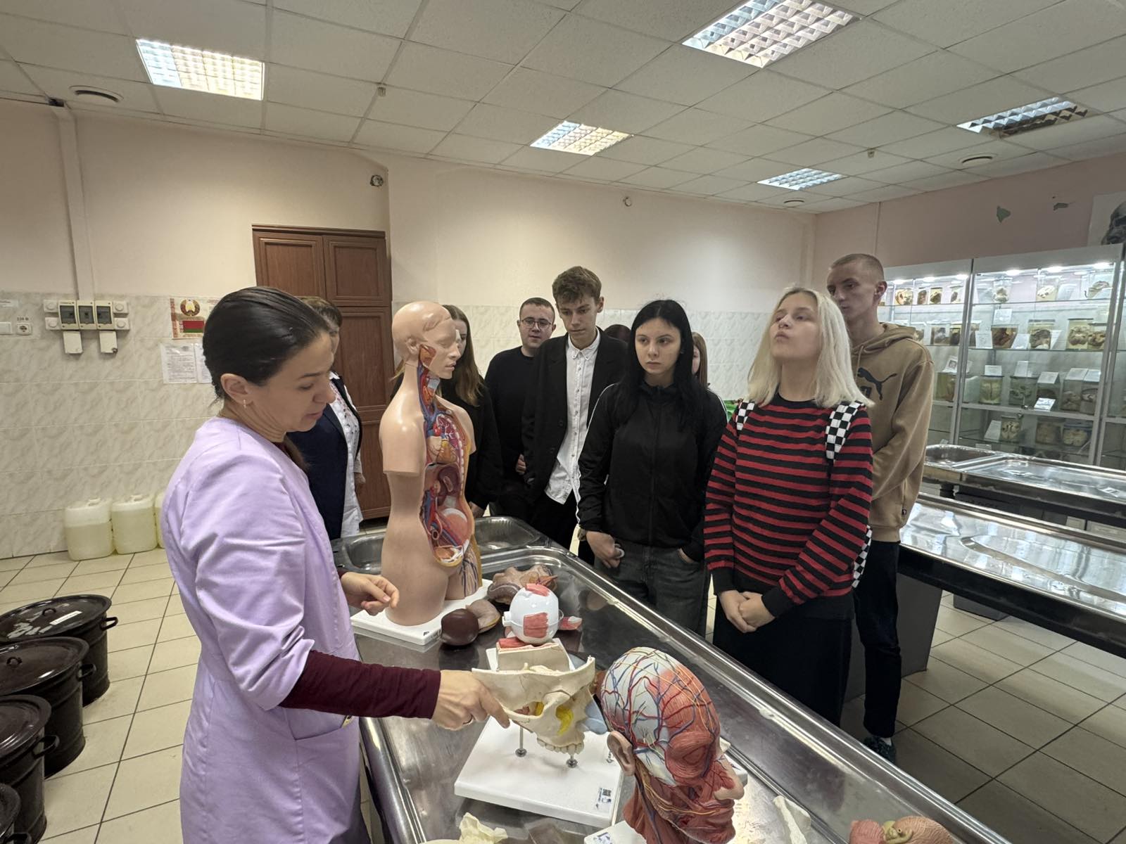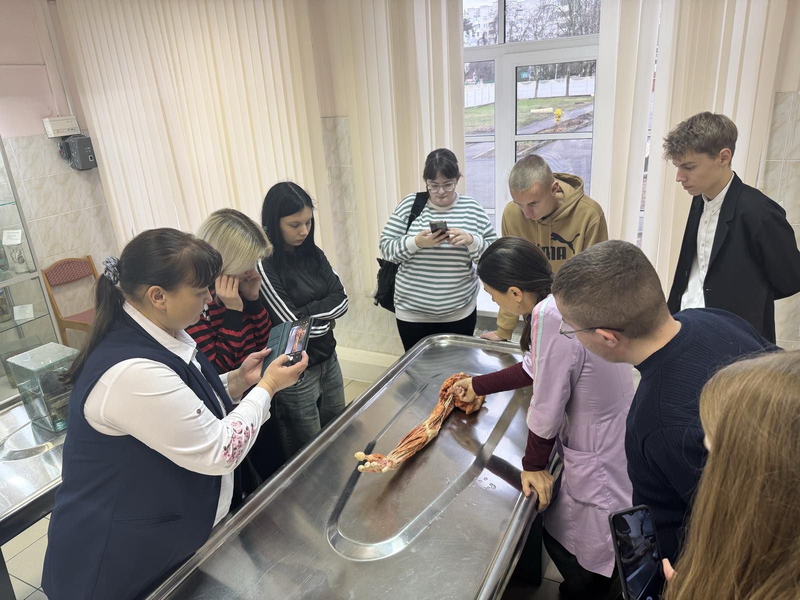 Конечной точкой насыщенного дня для речицких и рогачёвских школьников стала кафедра анатомии человека, где экскурсию провела старший преподаватель Алеся Николаевна Крицкая, которая увлечённо объясняла сложные процессы, происходящие в организме человека, и демонстрировала уникальные модели, которые способствуют визуализации теоретического материала.