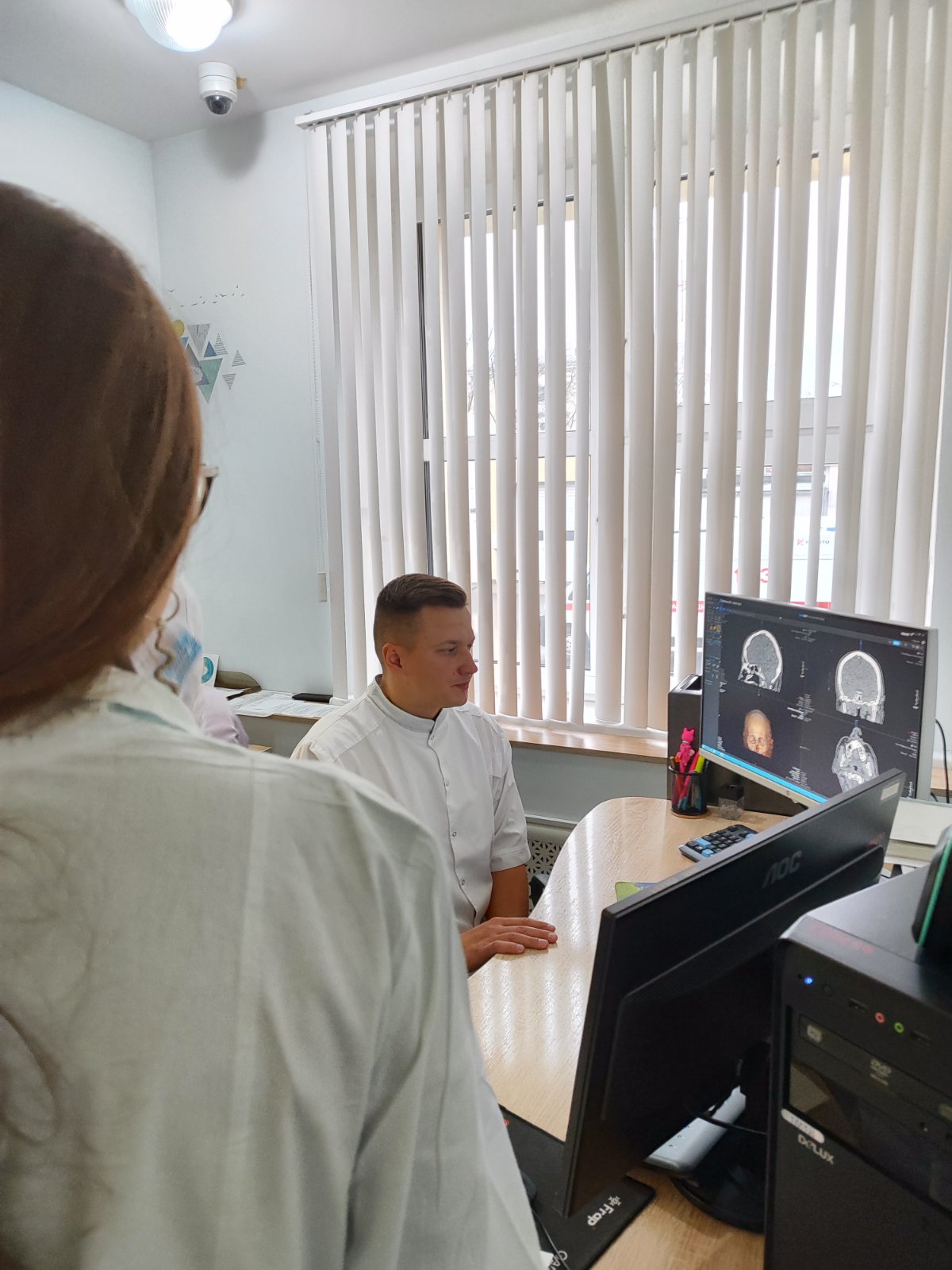 Владислав Андреевич Халимончик, заведующий кабинетом КТ и МРТ, рассказал присутствующим об особенностях своей работы, о том, что представляет собой КТ и МРТ и как такого рода обследование влияет на детский организм, подчеркнул отличие процесса обследования детей от аналогичного тестирования взрослых пациентов.