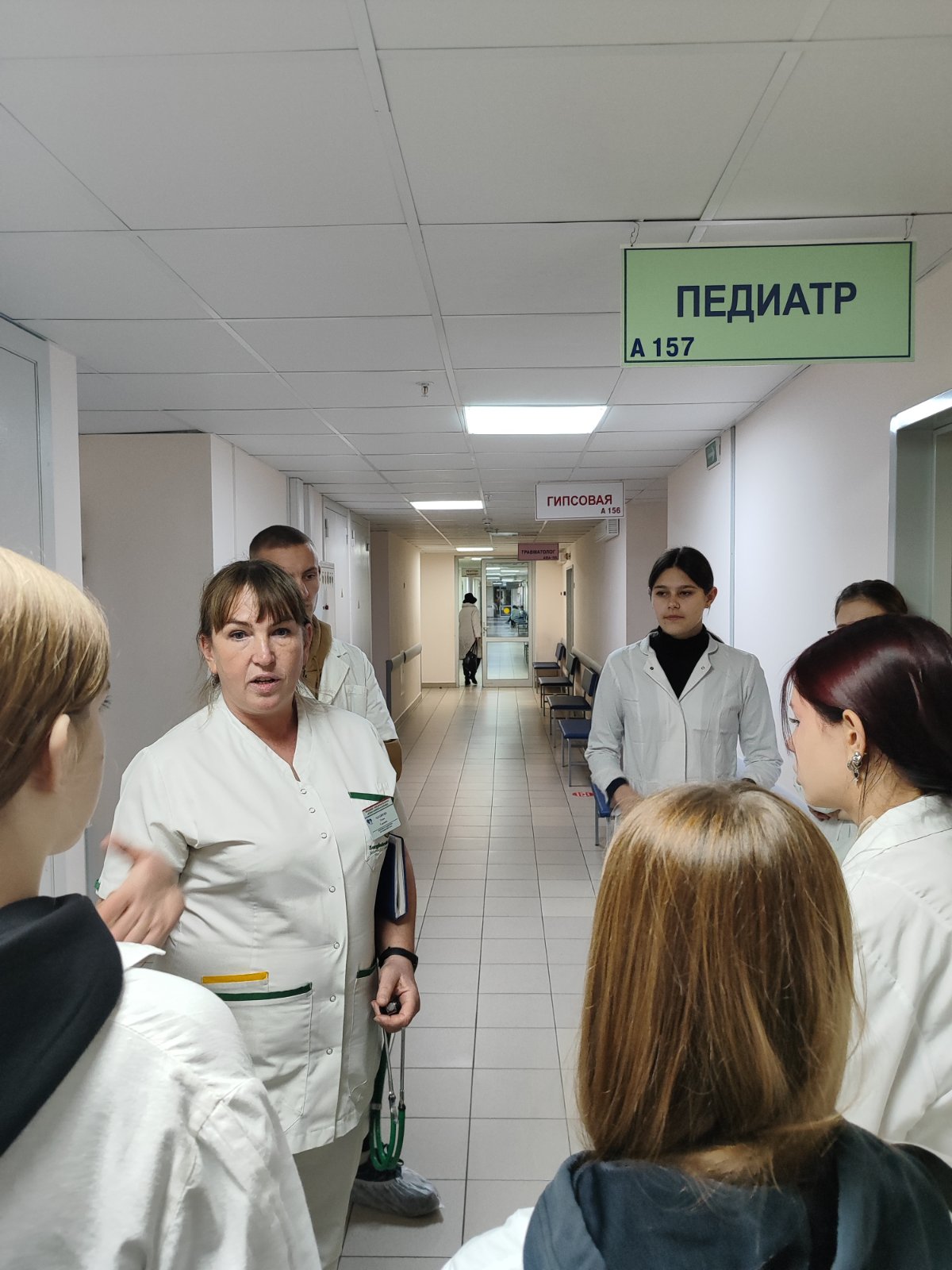 Экскурсию по приёмному отделению больницы провела заместитель главного врача по медицинской части Ольга Сергеевна Теплякова, познакомившая школьников с историей больницы, её реконструкцией. Ребята узнали, что в настоящее время это многопрофильная клиника мощностью на 547 коек с тринадцатью лечебными отделениями, диагностическими и вспомогательными подразделениями. В структуре больницы консультативная поликлиника, организационно-методический отдел, аптека, бухгалтерская, экономическая, техническая и хозяйственная службы. В коллективе более тысячи ответственных и высококвалифицированных работников, из них 170 врачей-специалистов. Учреждение является клинической базой профильных кафедр медицинского университета, медицинского колледжа, базой интернатуры и повышения квалификации медицинских работников в области патологии детского возраста.