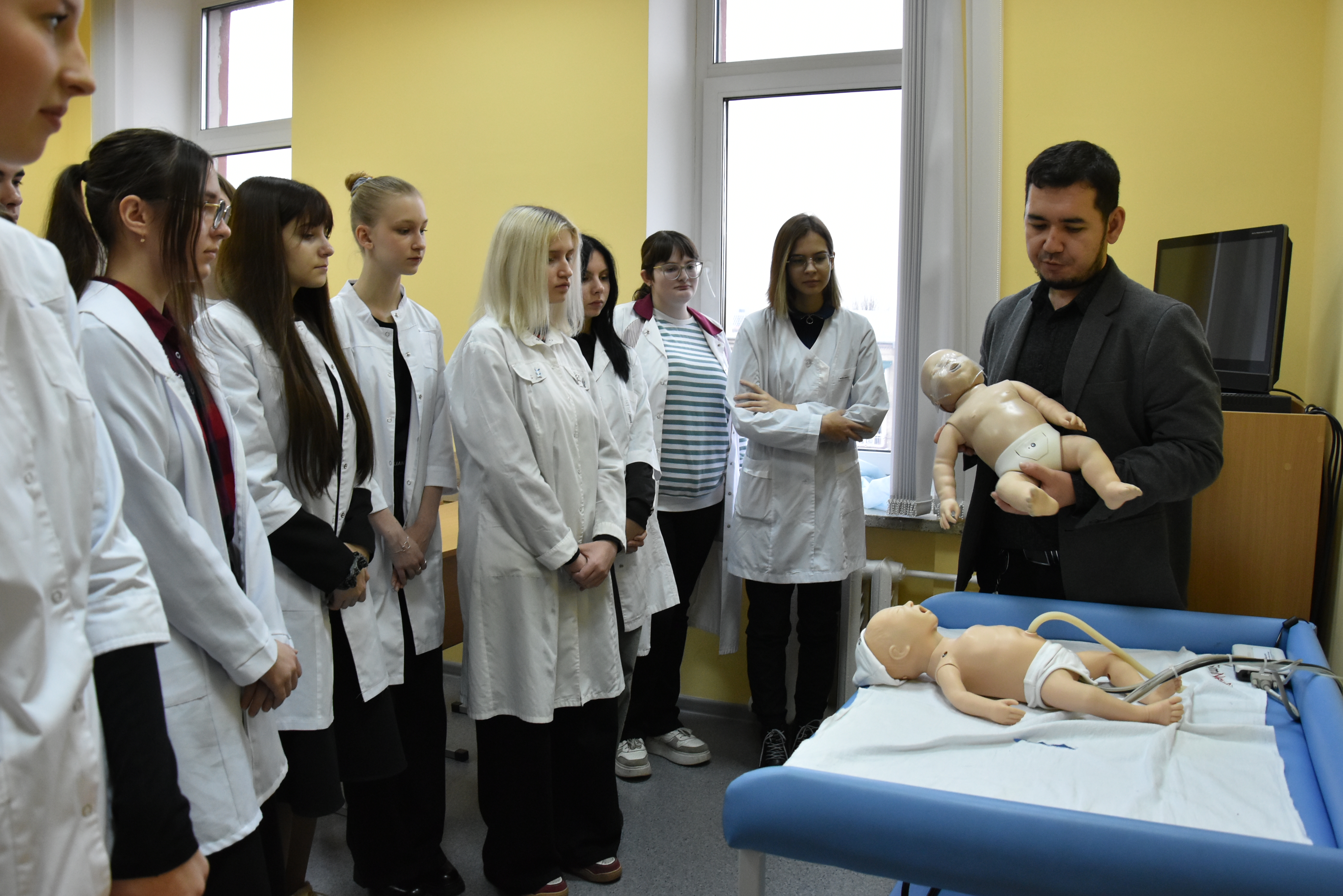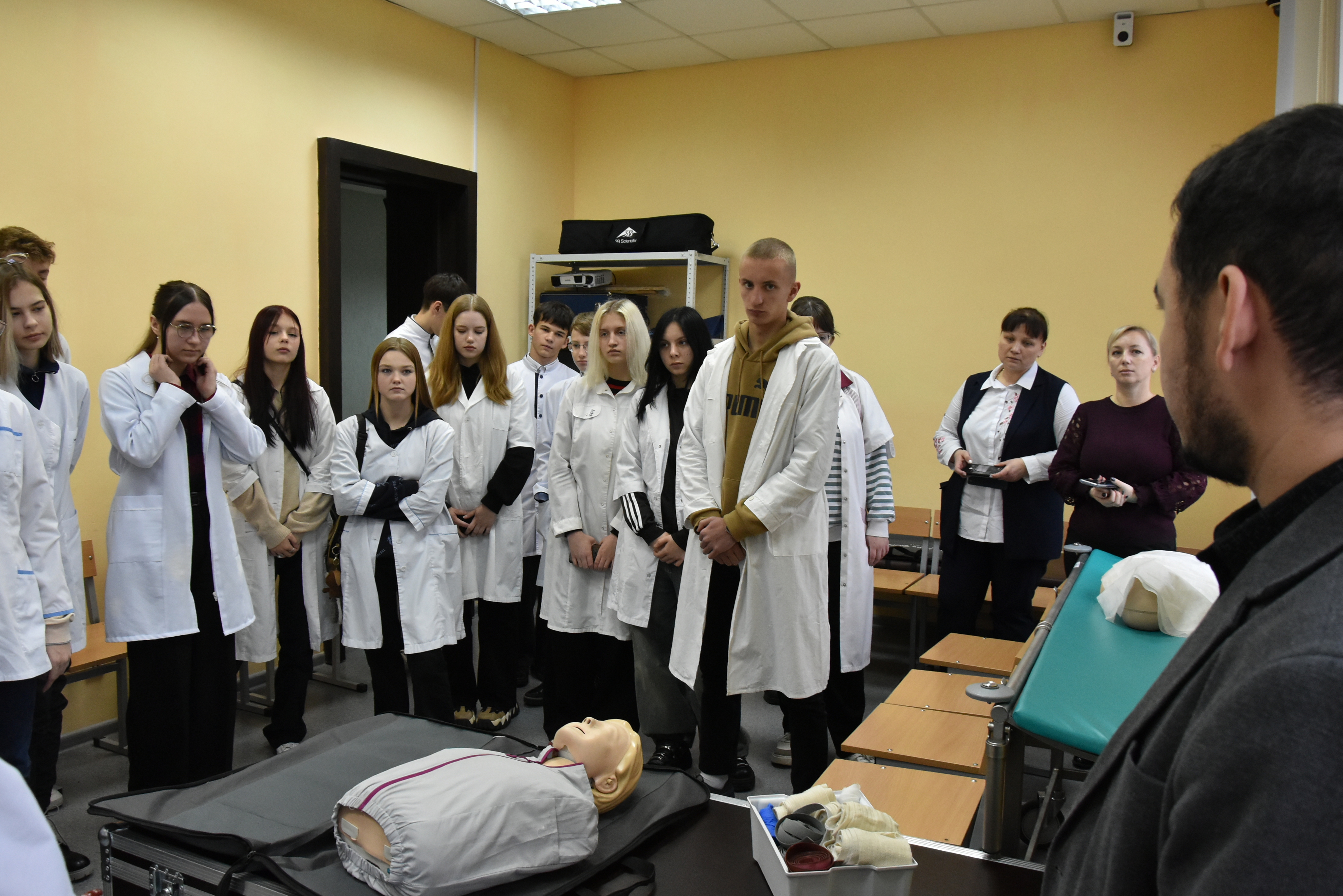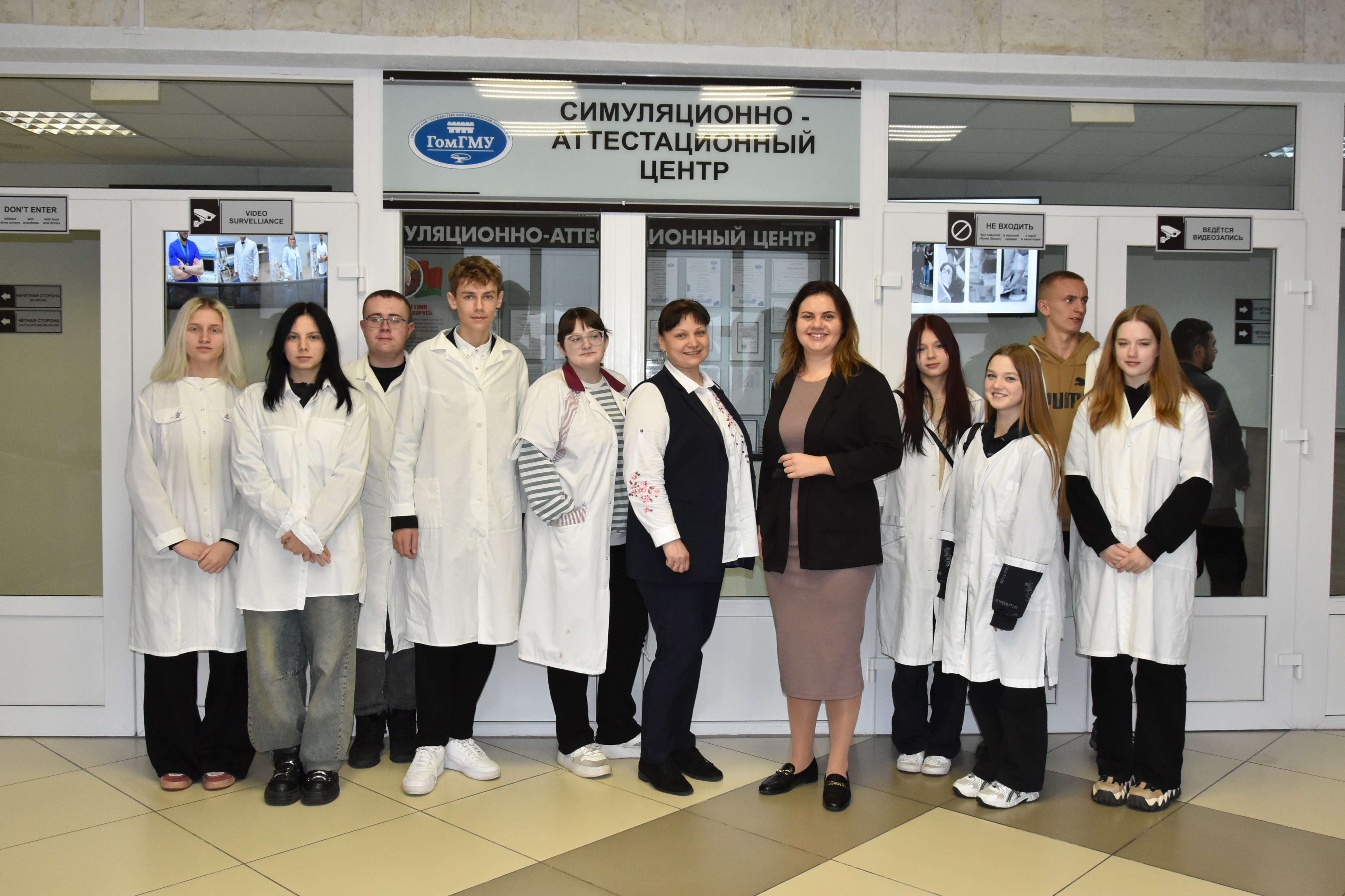 После занятия для учащихся Речицы и Рогачёва была проведена экскурсия в симуляционно-аттестационном центре ГомГМУ, где ребята получили возможность познакомиться с процессом обучения студентов. Школьникам показали, как оказывать первую медицинскую помощь. Учащиеся не только увидели, как работают симуляторы и манекены, но и сами попробовали оказать первую помощь. Увлекательную экскурсию по миру медицины провёл заместитель начальника САЦ Александр Анатольевич Пак.