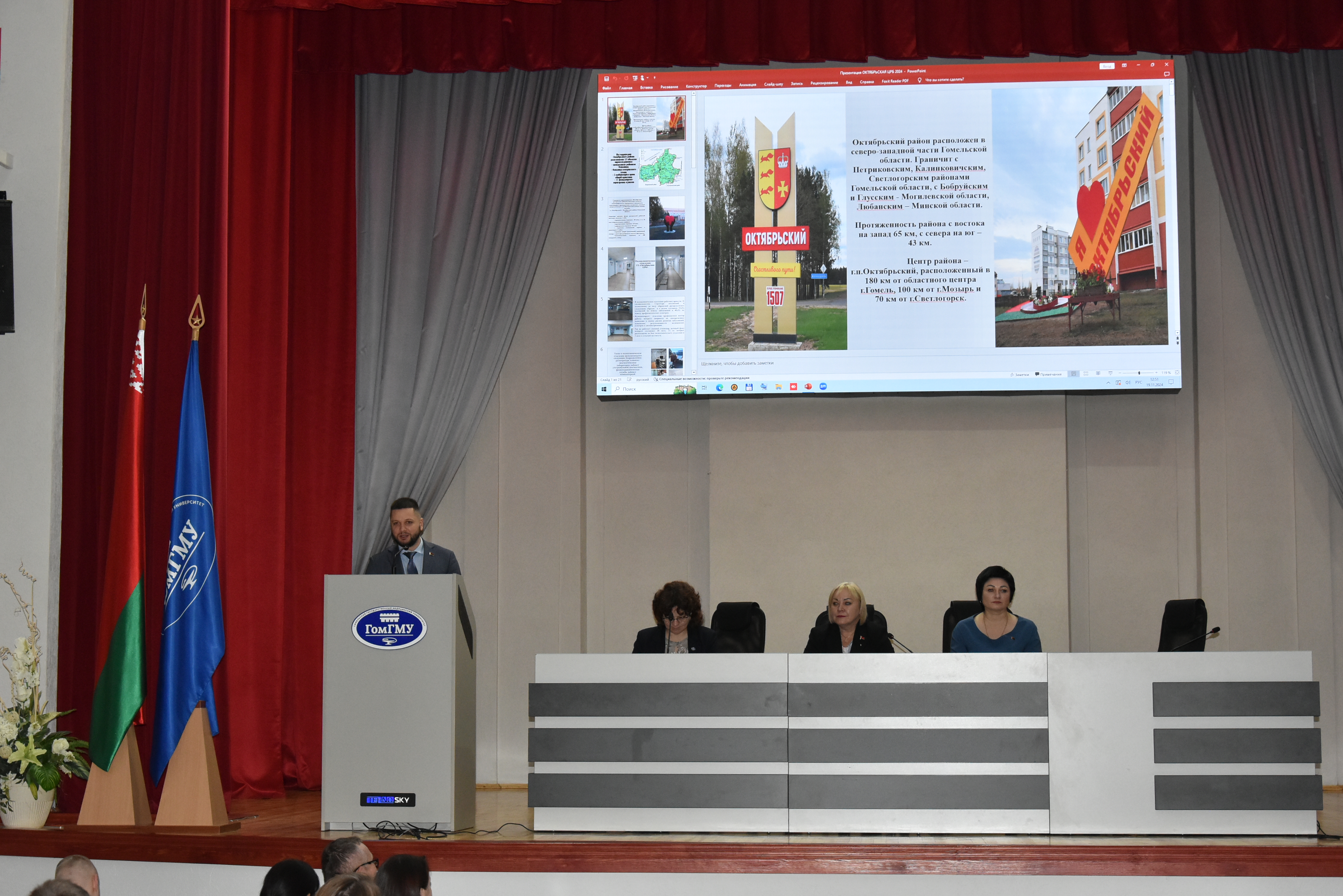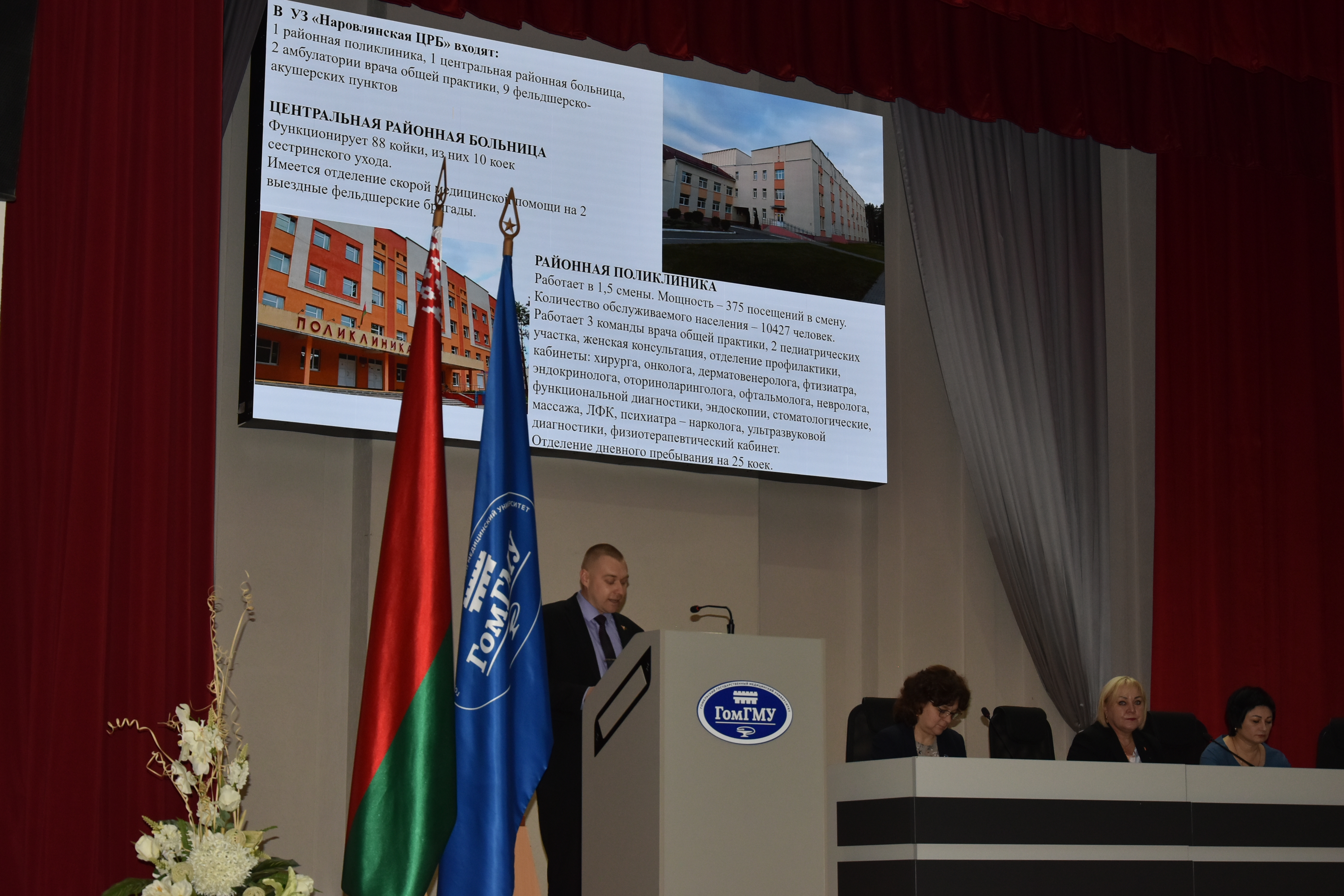 19 ноября студенты 6-го курса лечебного факультета и 5-го курса медико-диагностического факультета получили возможность услышать главных врачей и представителей учреждений здравоохранения Гомельской области: Лоевской ЦРБ, Мозырской ЦГП, Наровлянской ЦРБ, Октябрьской ЦРБ, Петриковской ЦРБ, Речицкой ЦРБ, Светлогорской ЦРБ, Хойникской ЦРБ, Чечерской ЦРБ, Ельской ЦРБ, Кормянской ЦРБ, Житковичской ЦРБ.