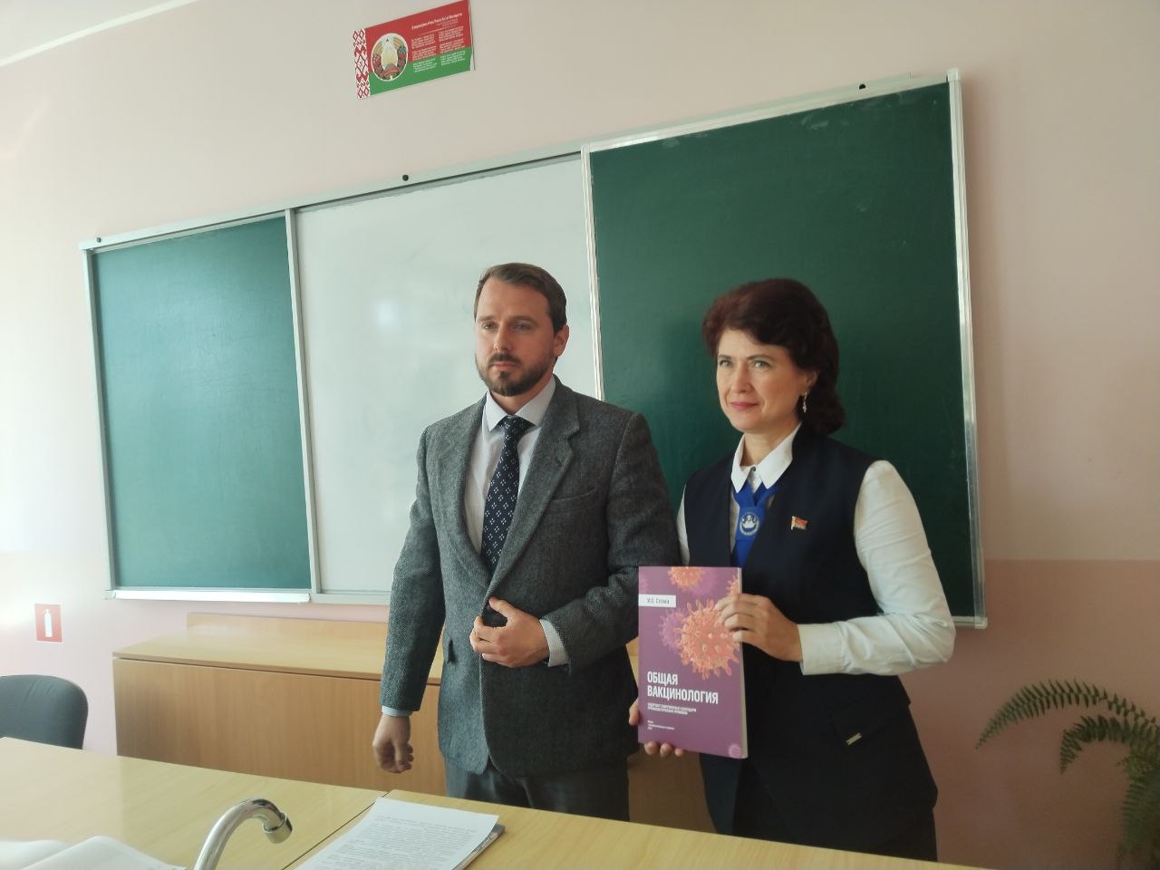 На память о первом занятии школьники получили сувениры от ГомГМУ. А лучший подарок, как известно, это хорошая книга, которую Игорь Олегович передал библиотеке гимназии с автографом автора.