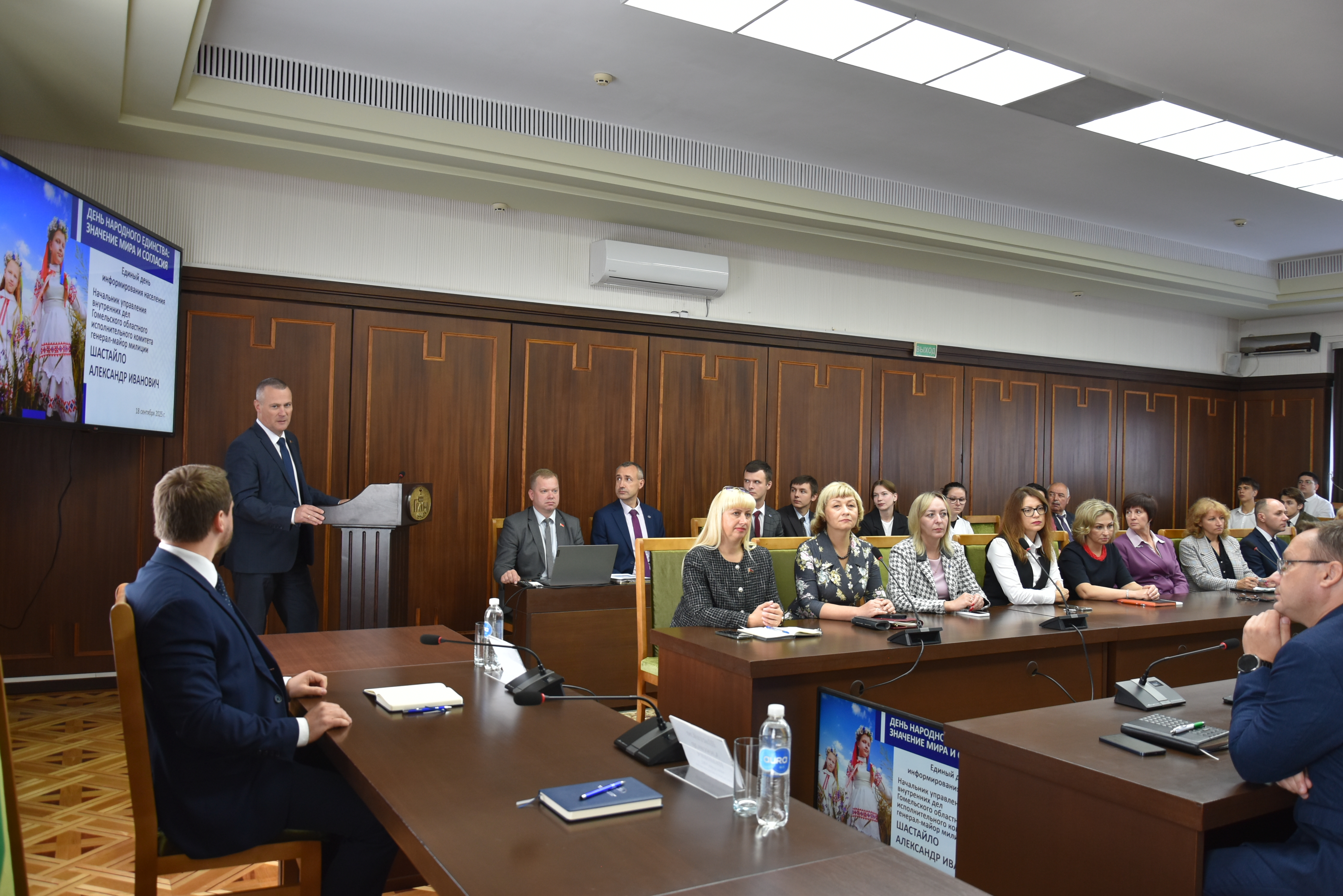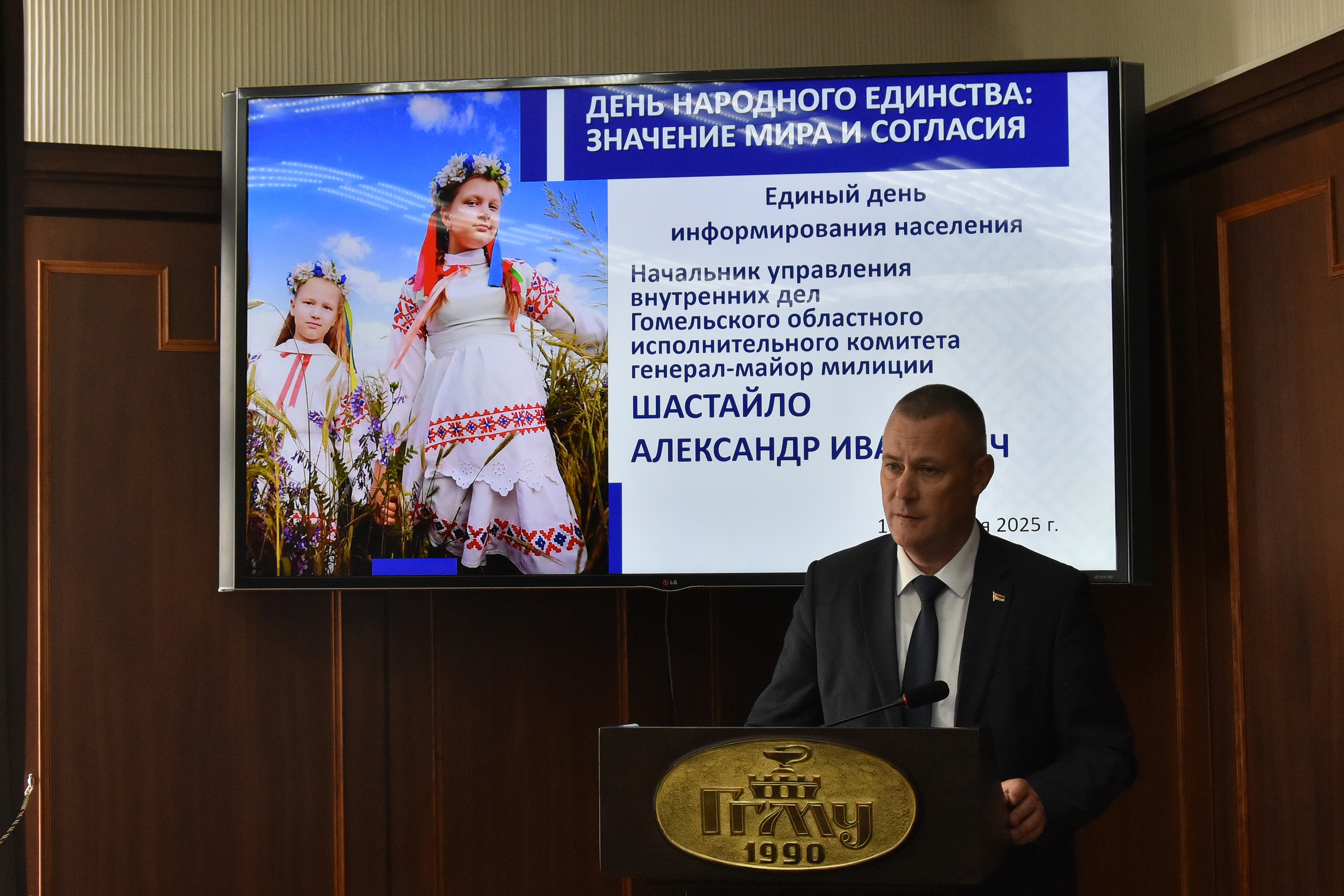 В рамках Единого дня информирования, который прошел 18 сентября, с коллективом ГомГМУ во главе с ректором профессором Игорем Олеговичем Стомой встретился начальник УВД Гомельского облисполкома генерал-майор милиции Александр Иванович Шастайло.
