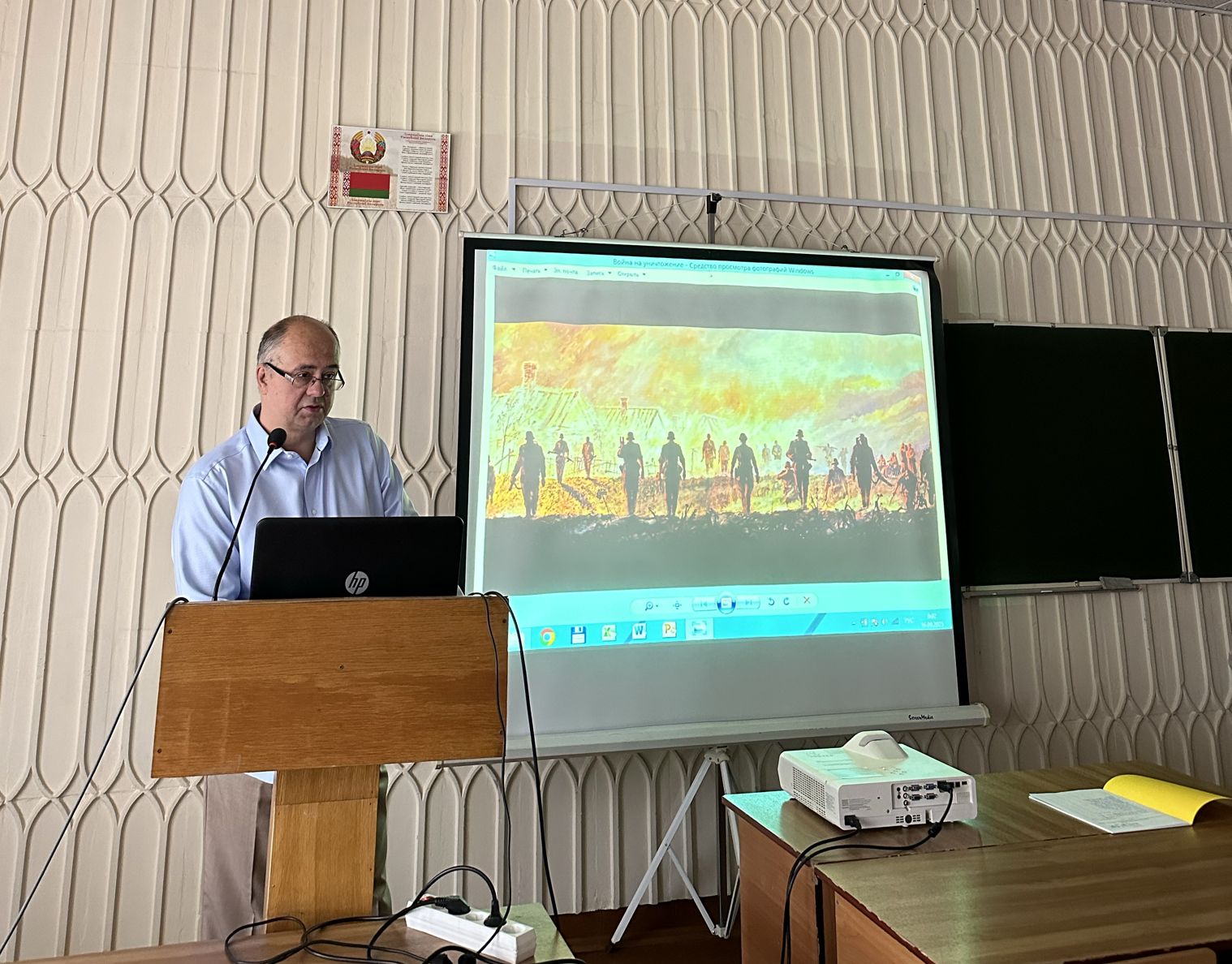 В рамках Месяца первокурсника доцент кафедры социально-гуманитарных дисциплин Д.В.Малахов провел лекцию для студентов медико-профилактического факультета «Геноцид белорусского народа. То, что нельзя забыть».