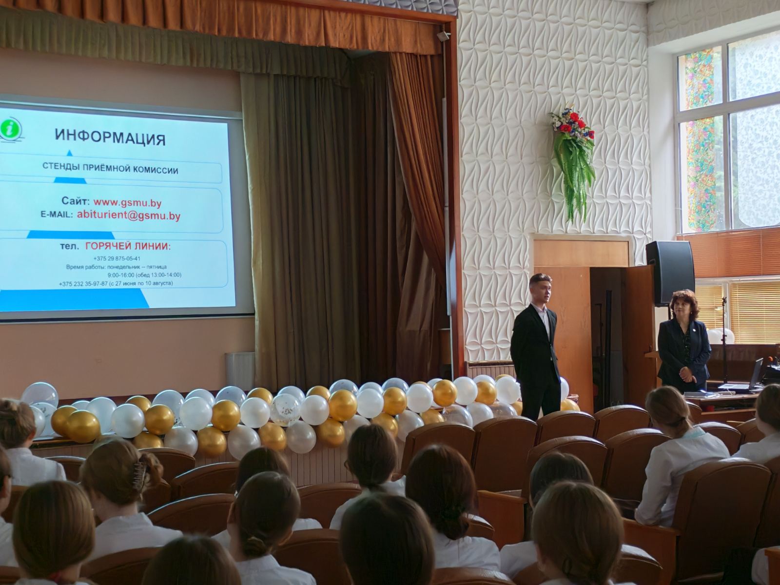На встрече также присутствовал студент-целевик первого курса лечебного факультета Максим Гатальский (выпускник Гомельского медицинского колледжа), который поделился своими впечатлениями: рассказал об особенностях поступления и о том, как проходят занятия на первом курсе.