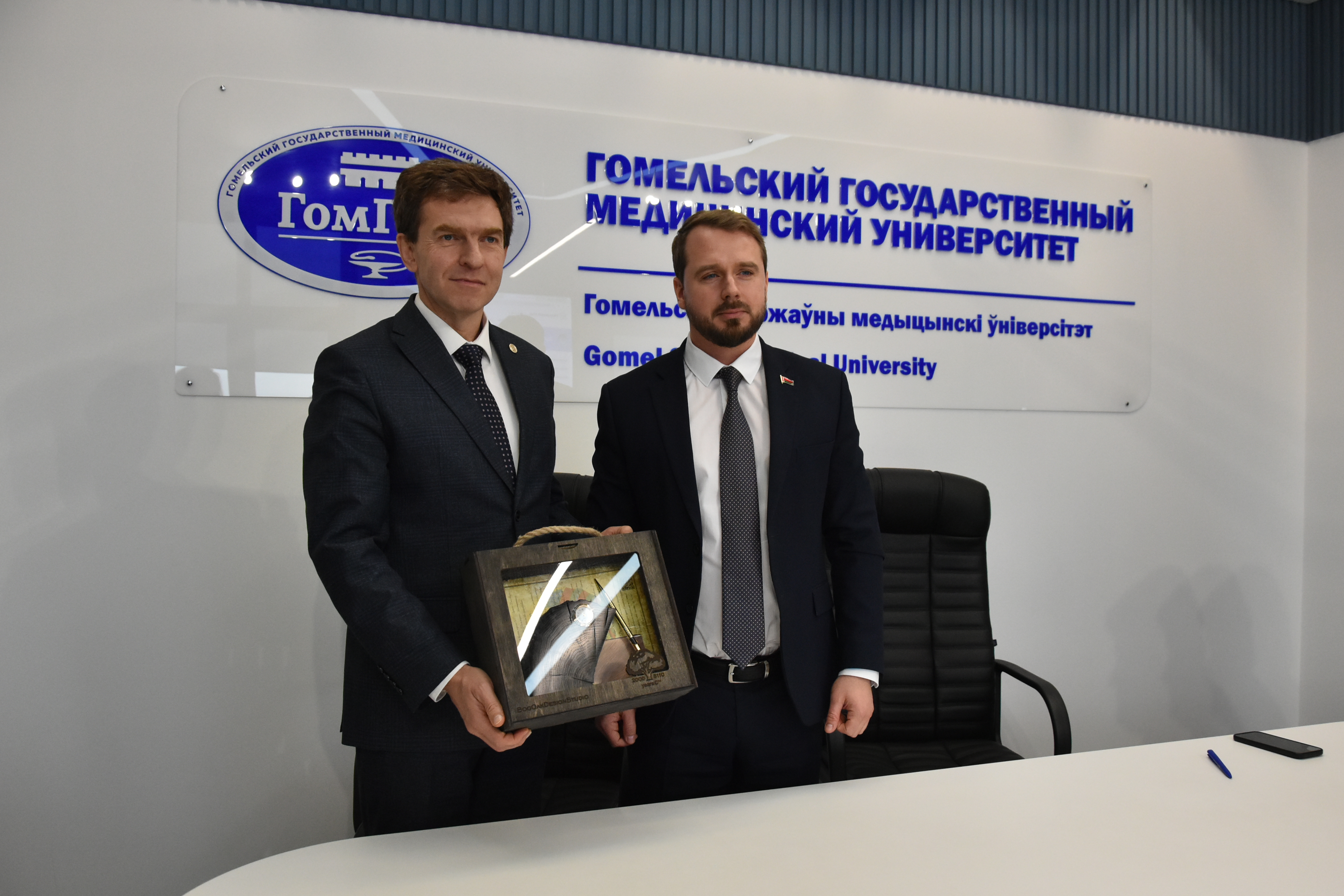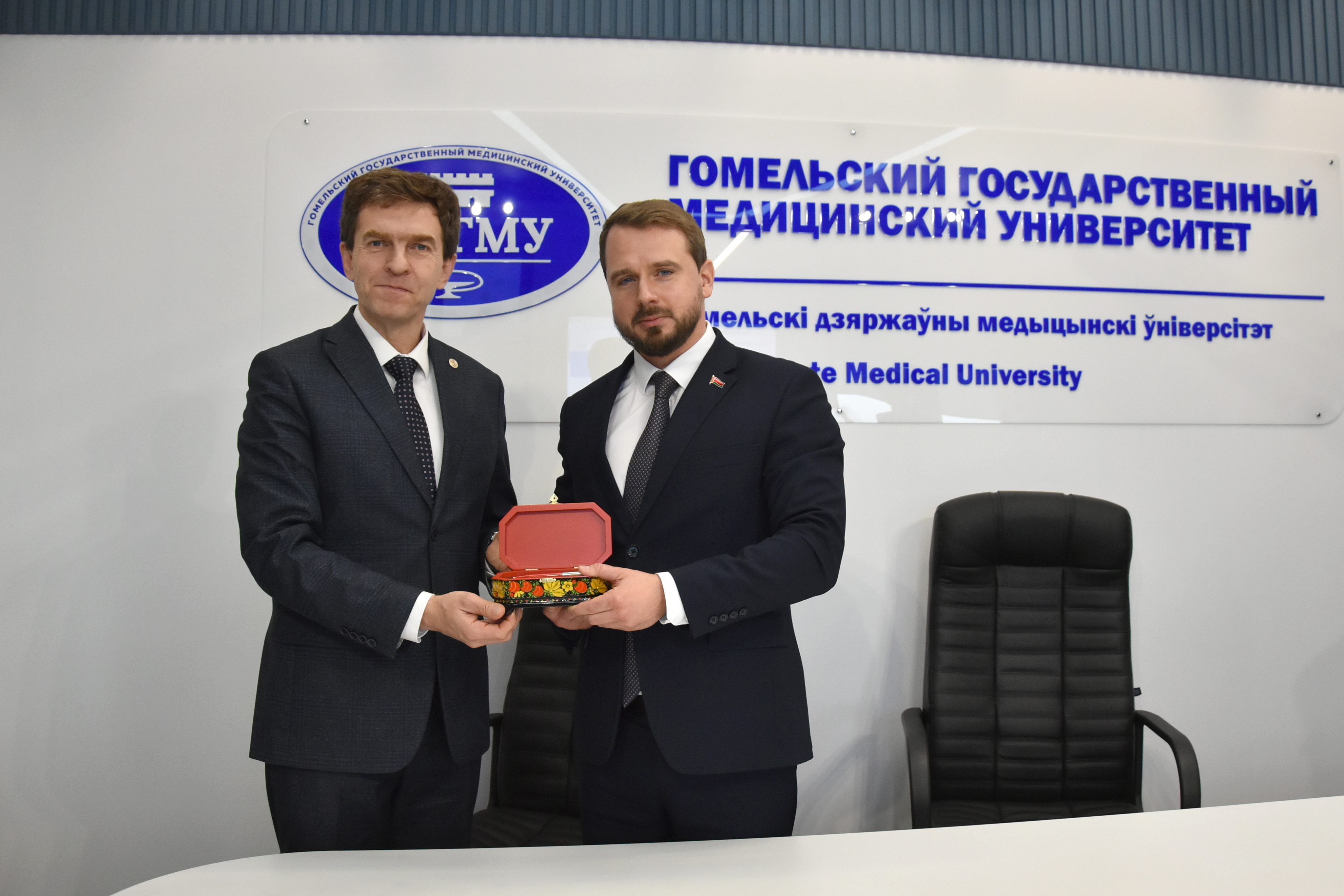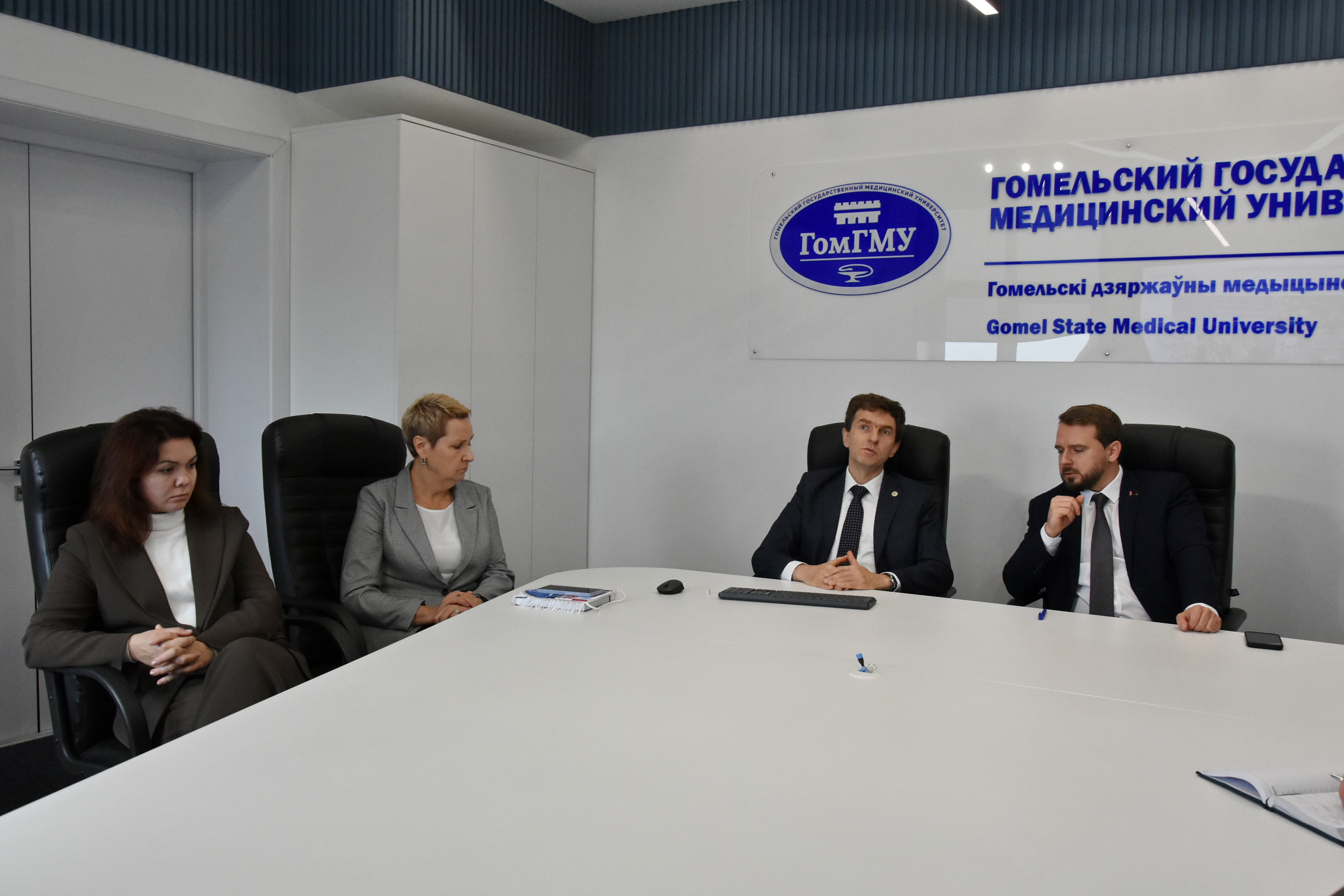 9 октября состоялась встреча ректора ПИМУ д.м.н., доцента Николая Николаевича Карякина, проректора по учебной работе д.м.н. Елены Сергеевны Богомоловой с ректором ГомГМУ д.м.н., профессором Игорем Олеговичем Стомой.