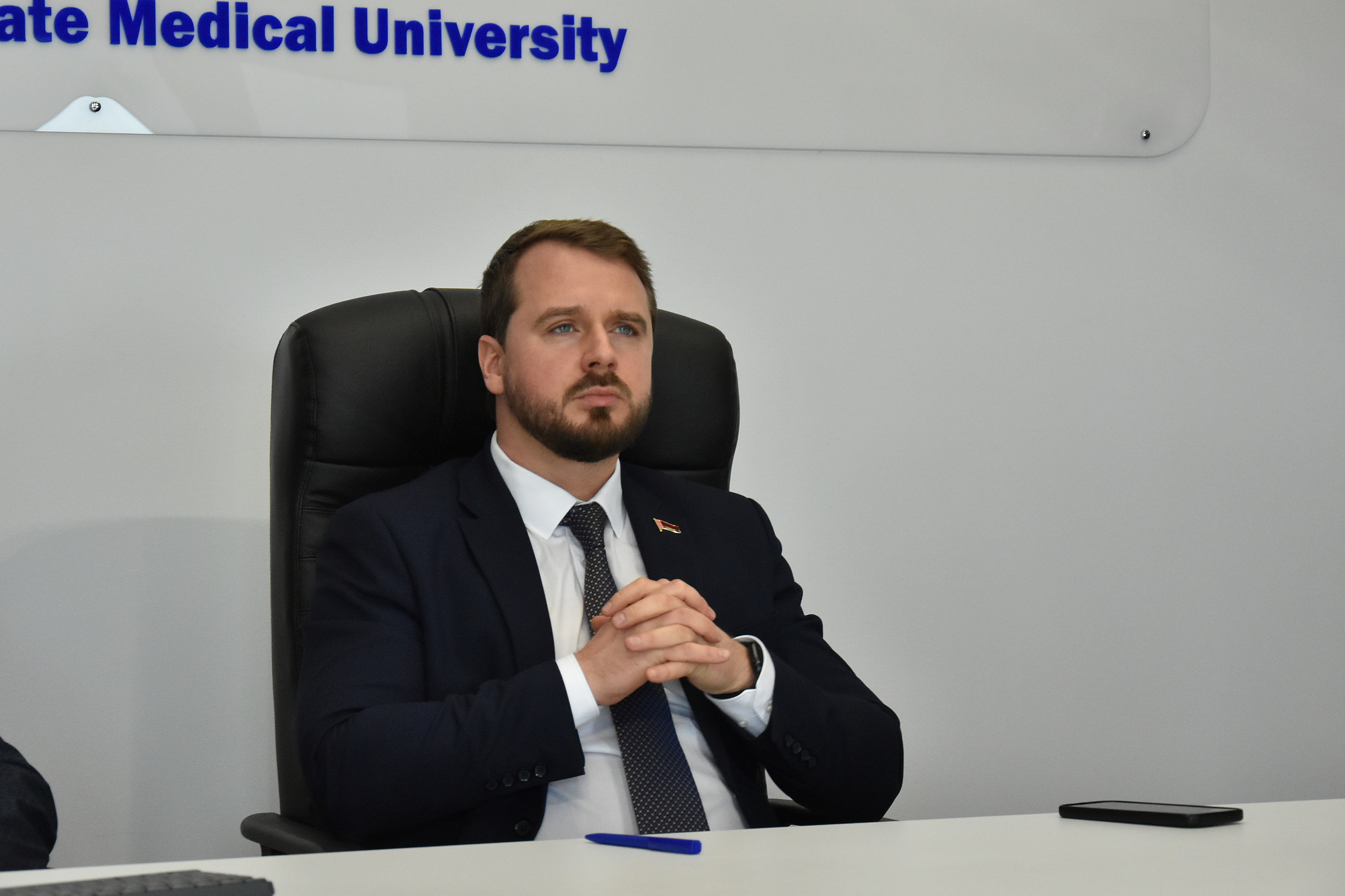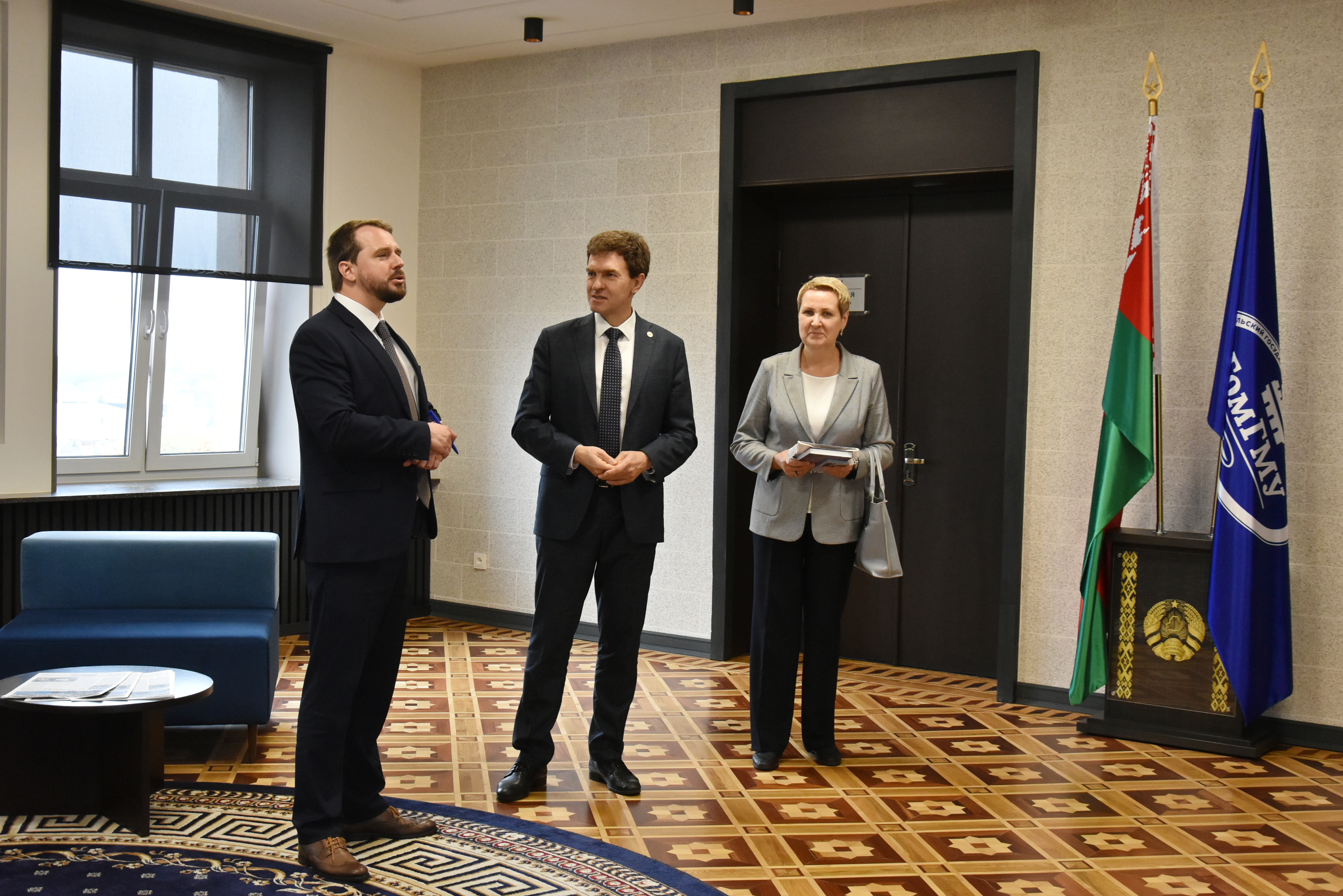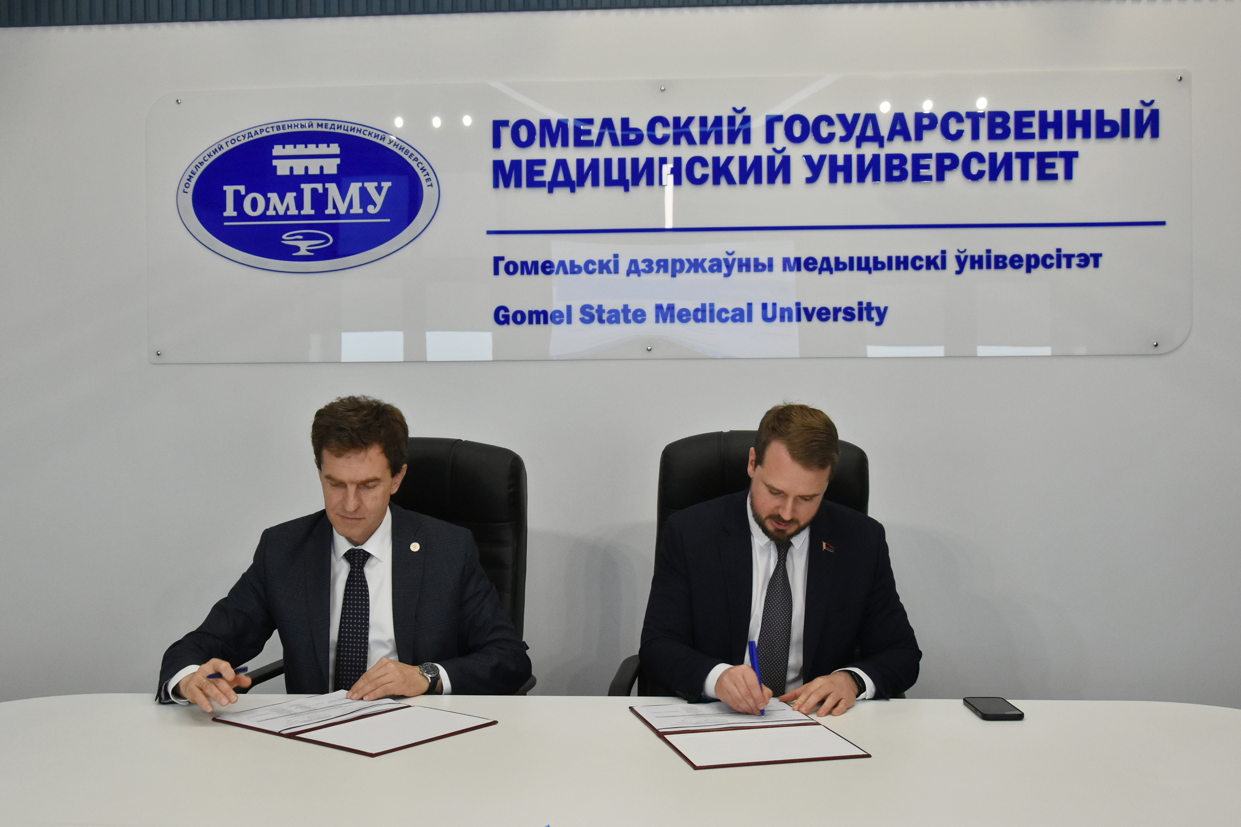 9 октября состоялась встреча ректора ПИМУ д.м.н., доцента Николая Николаевича Карякина, проректора по учебной работе д.м.н. Елены Сергеевны Богомоловой с ректором ГомГМУ д.м.н., профессором Игорем Олеговичем Стомой.