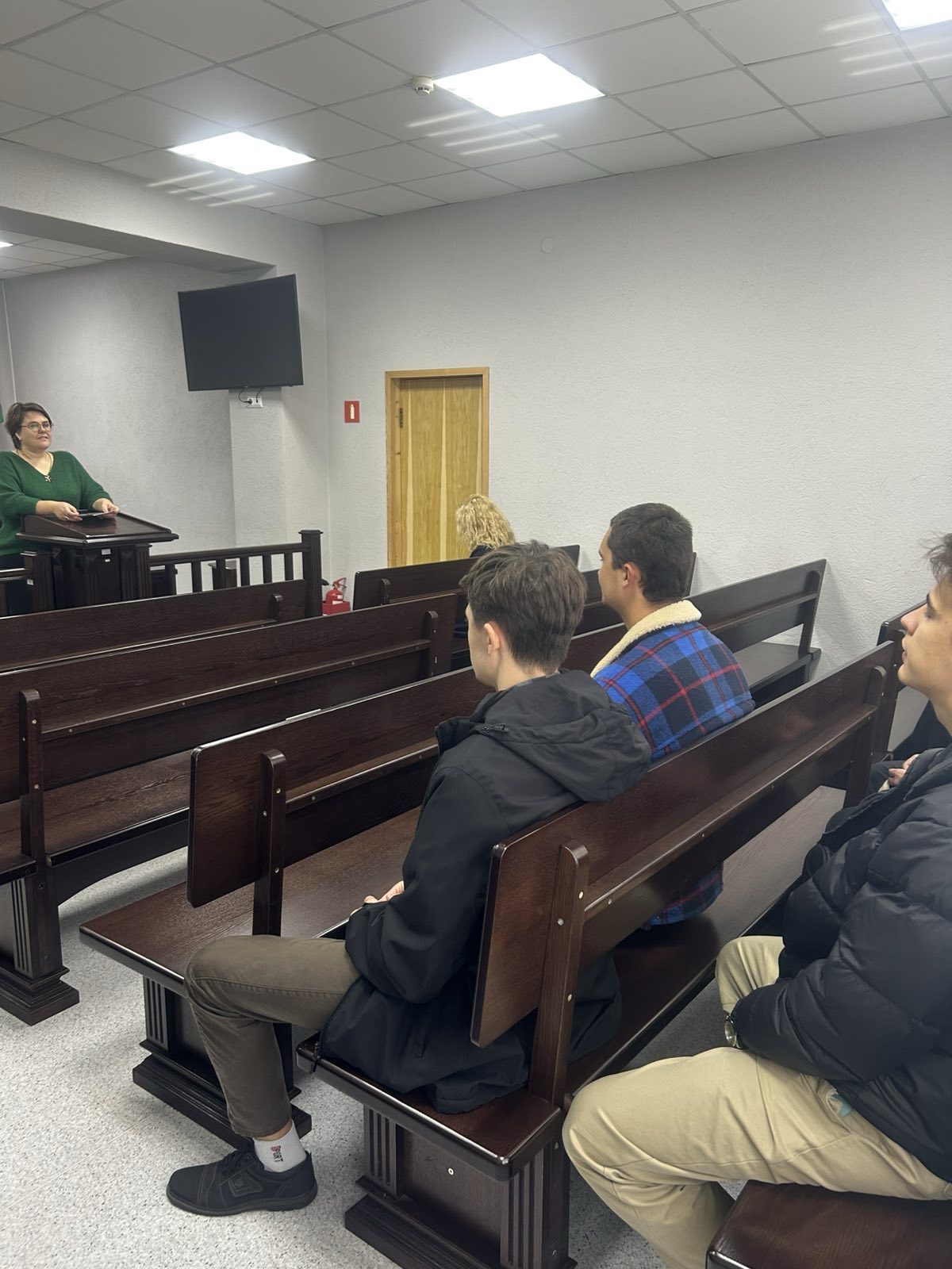 Во время визита студенты ознакомились с деятельностью судебной системы и присутствовали при рассмотрении уголовного дела по обвинению в совершении преступления, предусмотренного ч. 1 ст. 205 Уголовного кодекса Республики Беларусь.
