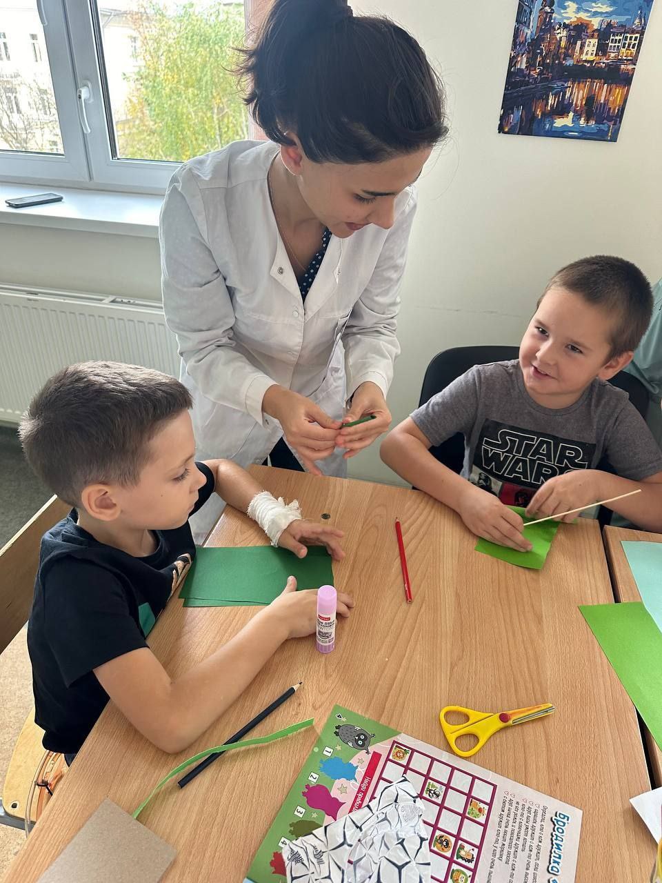 Волонтеры отряда «Эндорфины» провели творческий мастер-класс по изготовлению открыток ко Дню матери для детей хирургического отделения детской больницы. Студенты с увлечением создавали поздравительные послания, вкладывая в них тепло и внимание к самым близким людям.