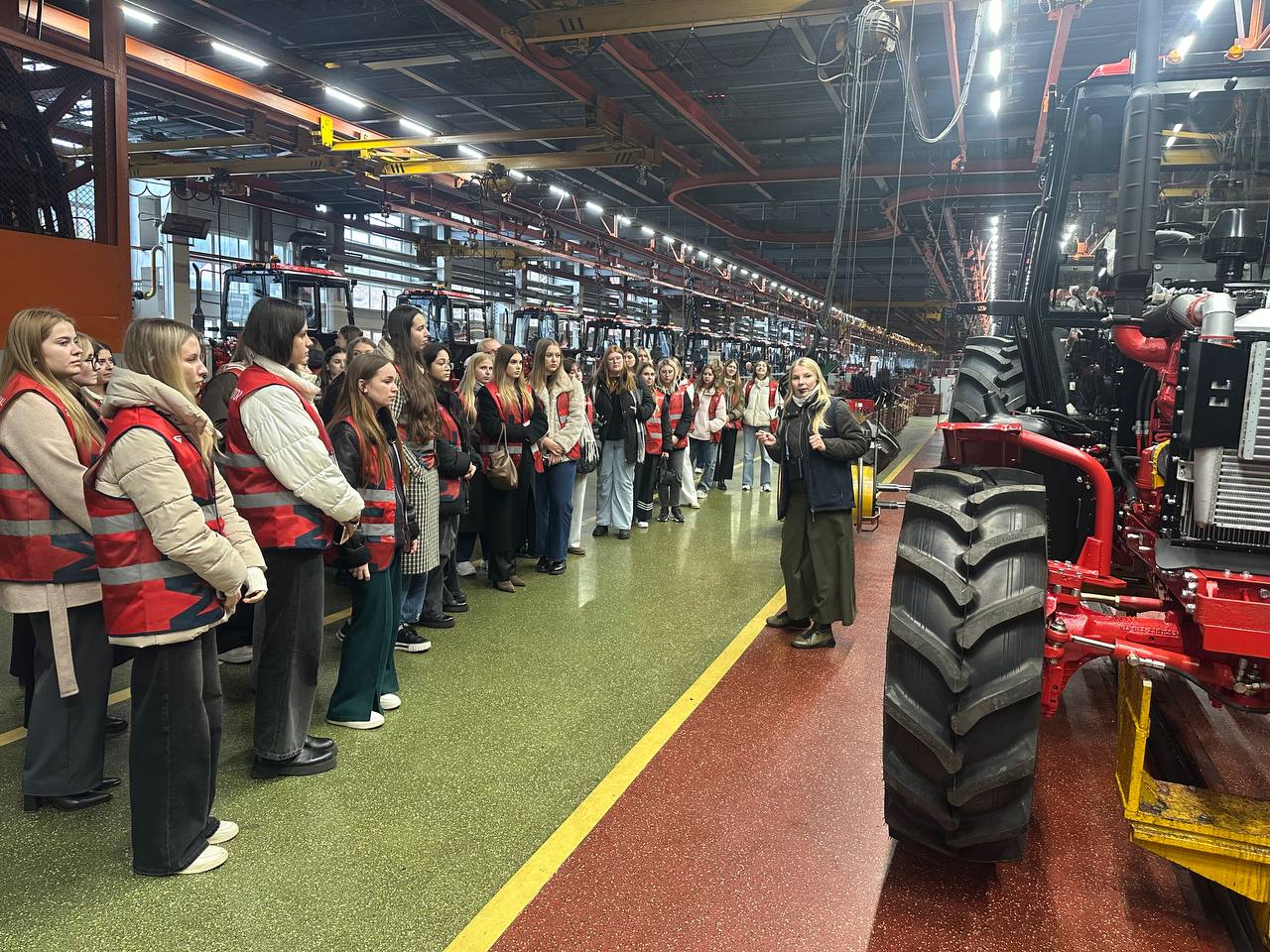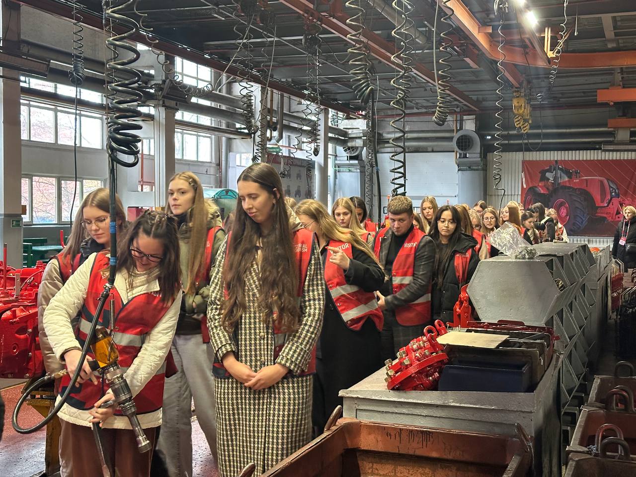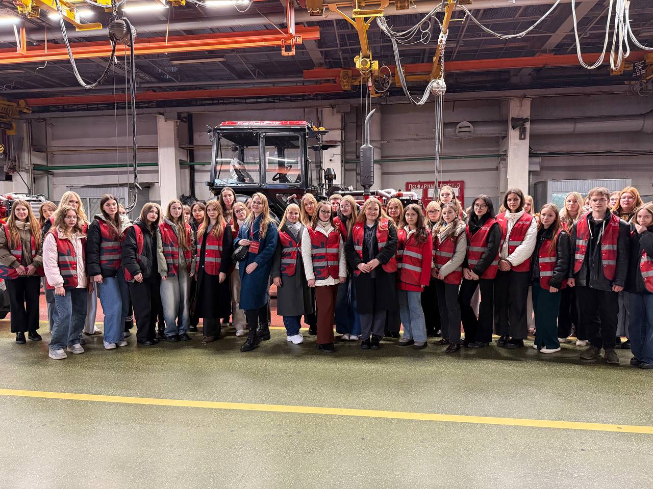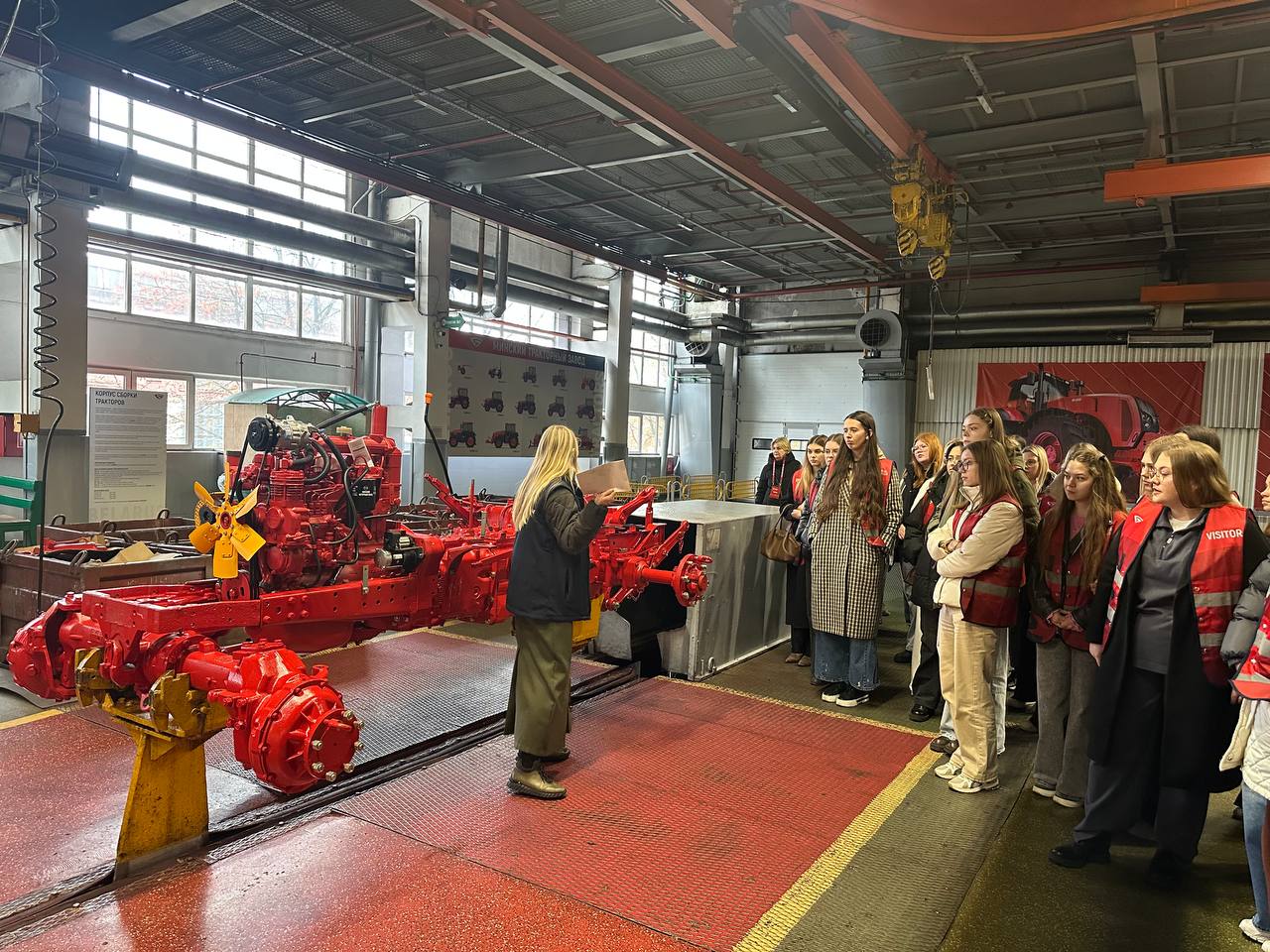 Студенты прошли по цехам и воочию увидели полный цикл сборки знаменитых тракторов «Беларус» — от отдельных узлов до готовой мощной машины, сходящей с конвейера. Гул станков, слаженная работа сотрудников и масштабы производства произвели на всех неизгладимое впечатление.