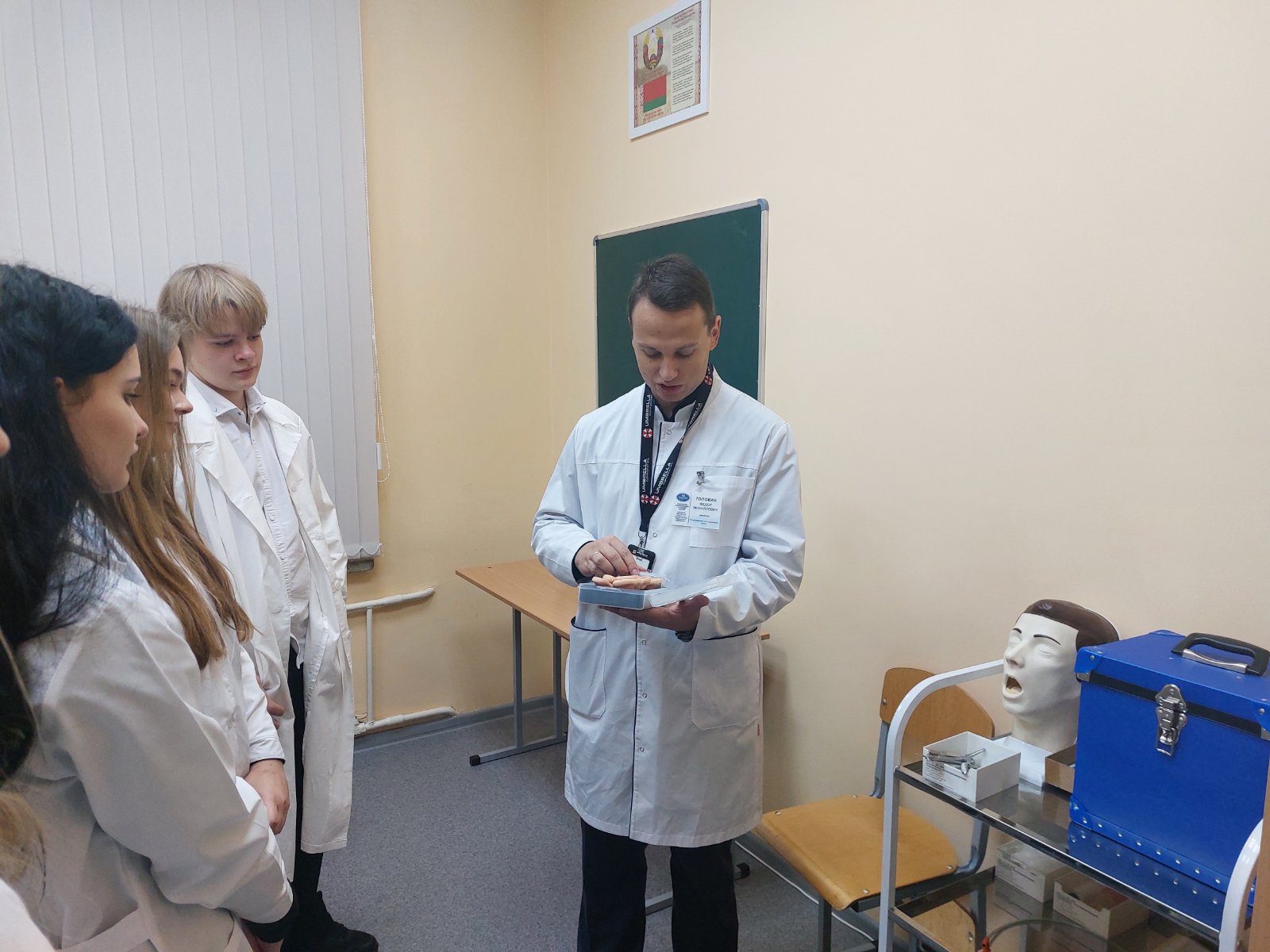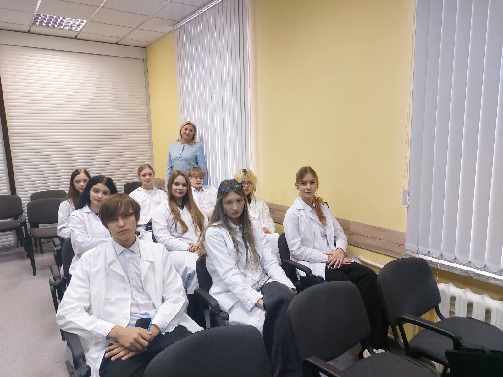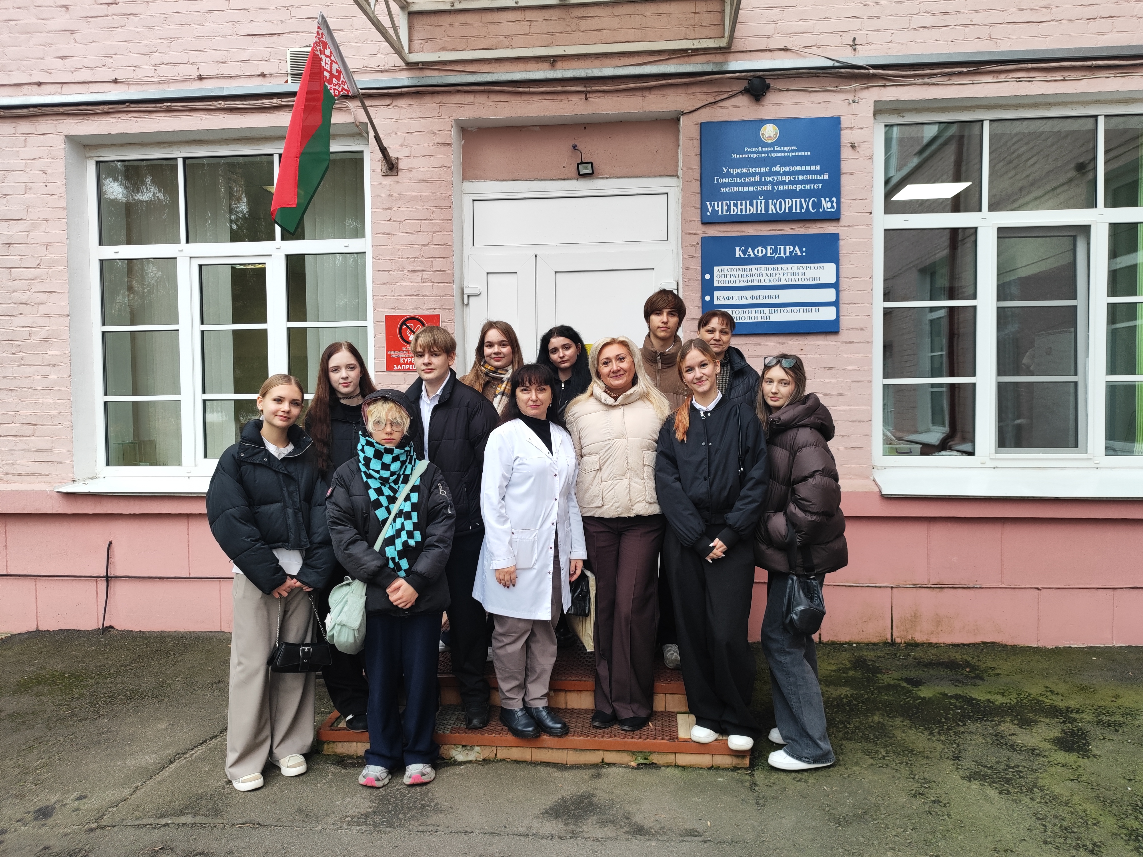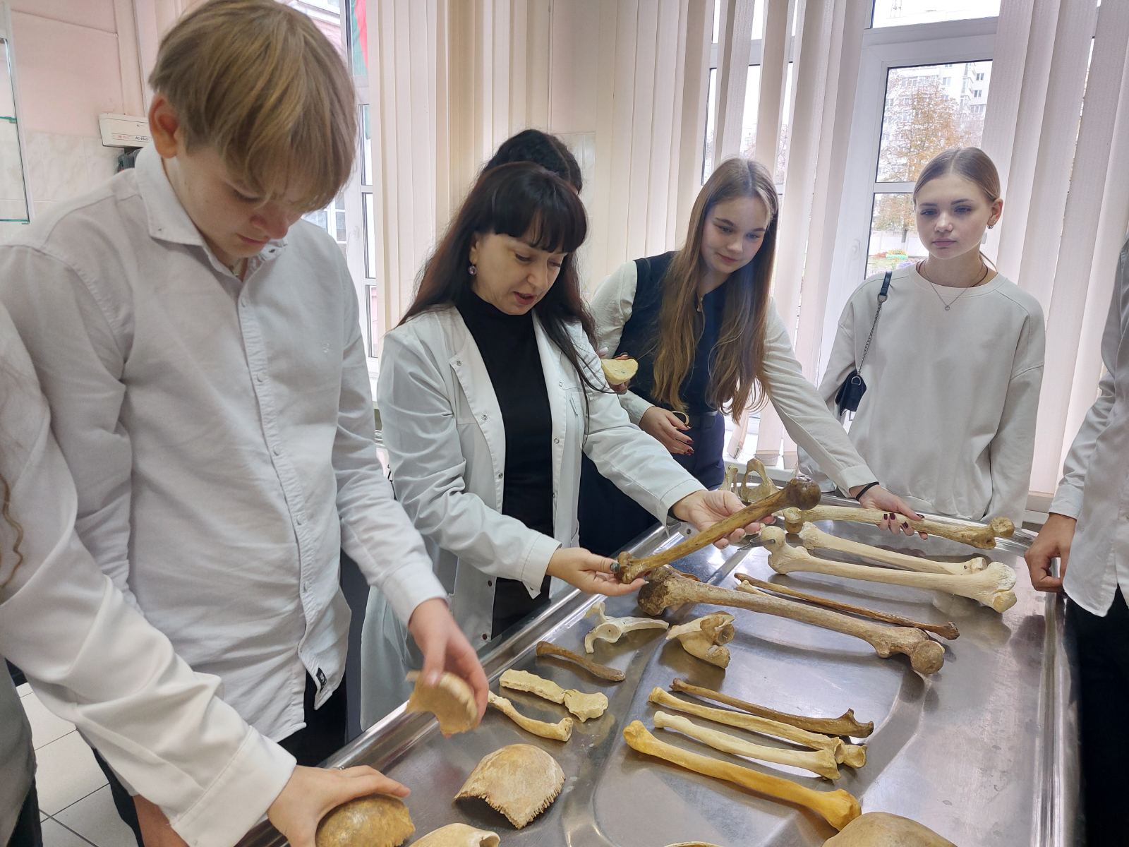 На протяжении всего дня учащихся X класса медицинской направленности из ГУО «Речицкая районная гимназия имени Ф.В. Маргелова» сопровождала декан факультета довузовской подготовки Наталья Павловна Тимошенко.