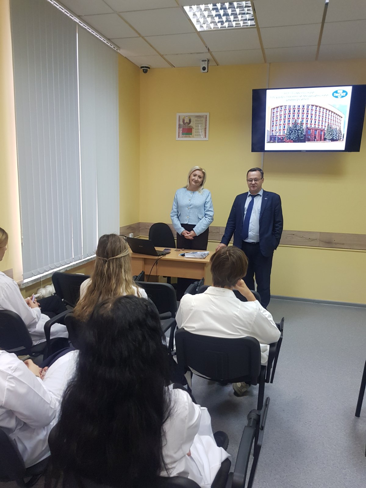 Интерес к Гомельскому государственному медицинскому университету со стороны абитуриентов возрастает с каждый днём, о чём свидетельствуют многочисленные письма от различных учреждений общего среднего образования с просьбой провести профориентационные встречи. Очередная такая встреча состоялась 21 октября: учащиеся X класса медицинской направленности ГУО «Речицкая районная гимназия имени Ф.В.Маргелова» в сопровождении учителя биологии Инны Геннадьевны Ласицы были в гостях у ГомГМУ. Ведущий специалист деканата факультета довузовской подготовки Дина Николаевна Денискова радушно встретила ребят, которых ожидала насыщенная экскурсионная программа.