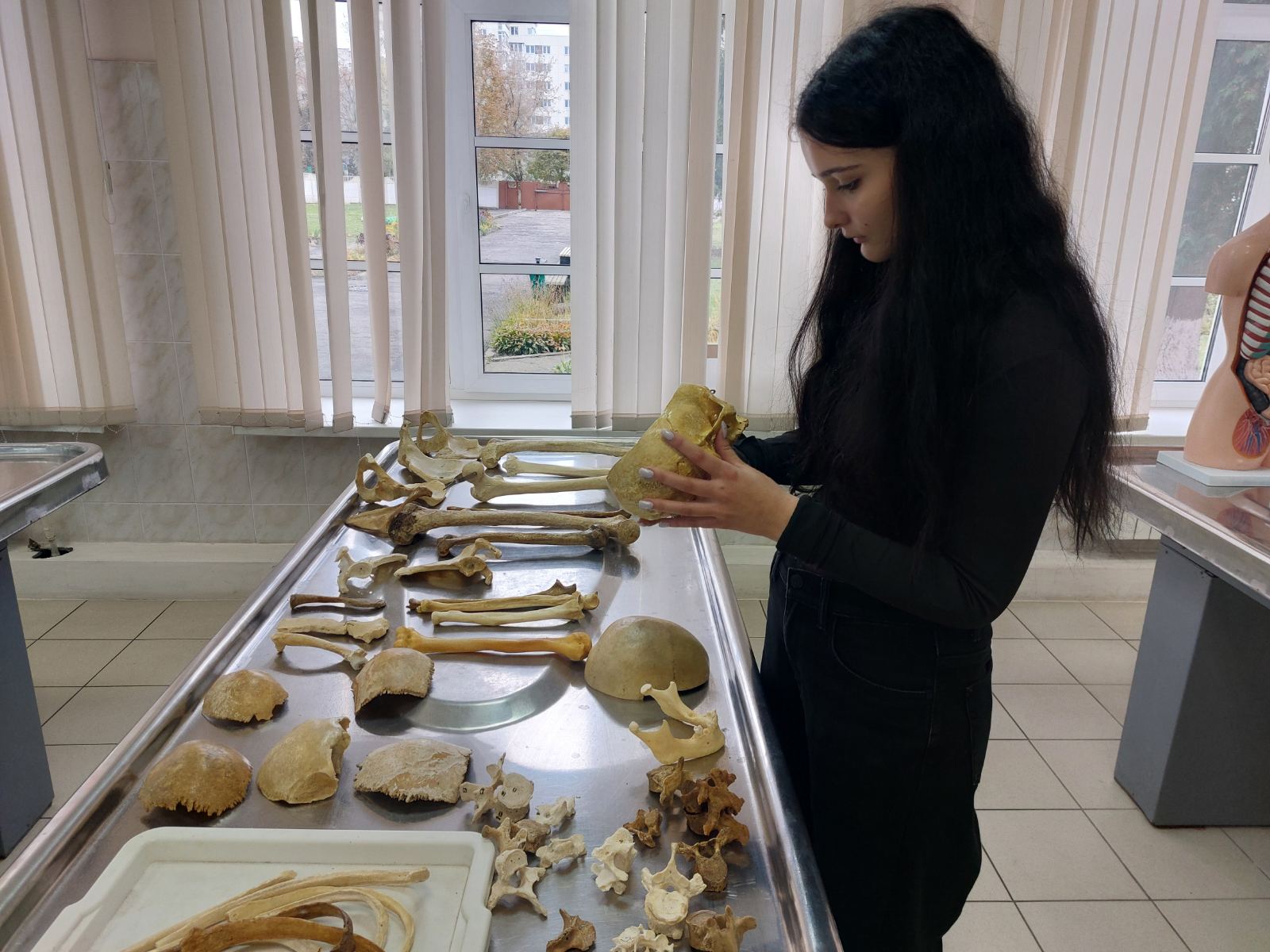 Далее была организована экскурсия в анатомический музей при кафедре анатомии человека с курсом оперативной хирургии и топографической анатомии. Это увлекательное путешествие в мир человеческого тела прошло под руководством заместителя декана факультета иностранных студентов по идеологической и воспитательной работе Елены Владимировны Ранкович. Ребята увидели муляжи внутренних органов; узнали, как работает организм человека; поговорили о строении сердца, лёгких, мозга и других важных органов. Елена Владимировна подчеркнула важность анатомии в изучении медицины, объяснила, как строится работа врача и какую роль играет знание человеческого тела. Присутствующие с большим интересом слушали экскурсовода и задавали интересующие их вопросы.