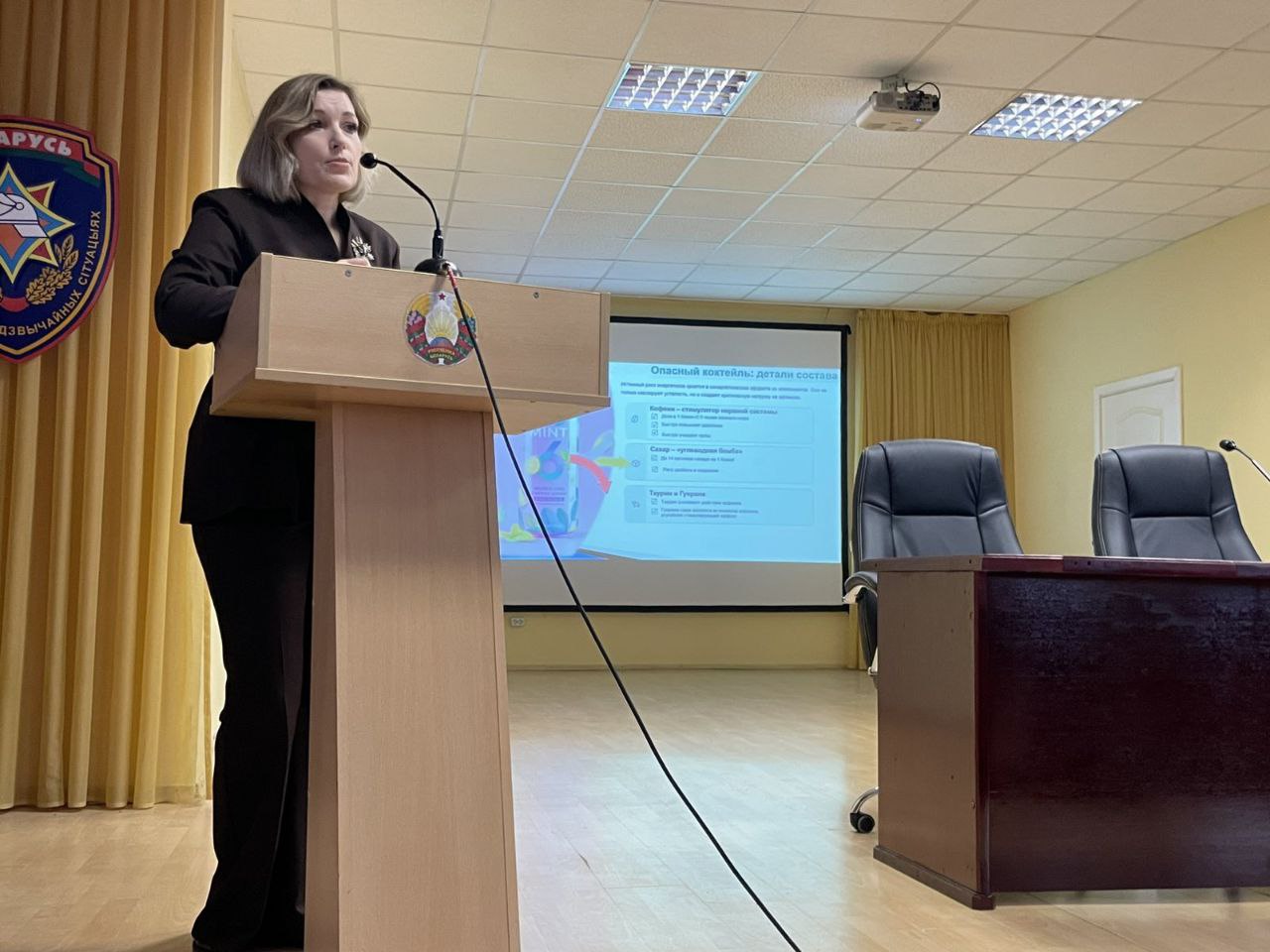 Первый блок лекции, озаглавленный «Энергетики: миф об энергии и суровая реальность», Надежда Александровна начала с разбора состава популярных напитков. Вместо обещанного источника «энергии» курсанты увидели детальный анализ воздействия высоких доз кофеина, сахара и других стимуляторов на сердечно-сосудистую и нервную системы. Лектор наглядно продемонстрировала, как мифы о безвредности энергетиков разбиваются о научные данные о их разрушительном влиянии на организм, особенно в условиях высоких физических и психоэмоциональных нагрузок. Были предложены здоровые альтернативы для поддержания тонуса, такие как правильный режим сна, сбалансированное питание и физическая активность.