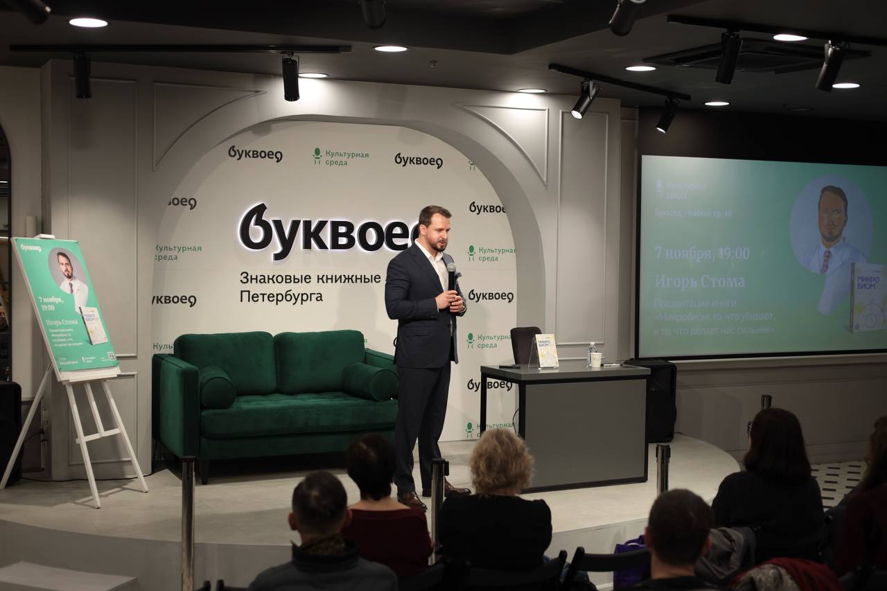 Состоялась уже четвертая презентация книги ректора ГомГМУ профессора Игоря Олеговича Стомы «Микробиом: то, что убивает, и то, что делает нас сильнее». И она вновь прошла в теплой, по-настоящему интеллектуальной атмосфере в прекрасном, невероятном Санкт-Петербурге.