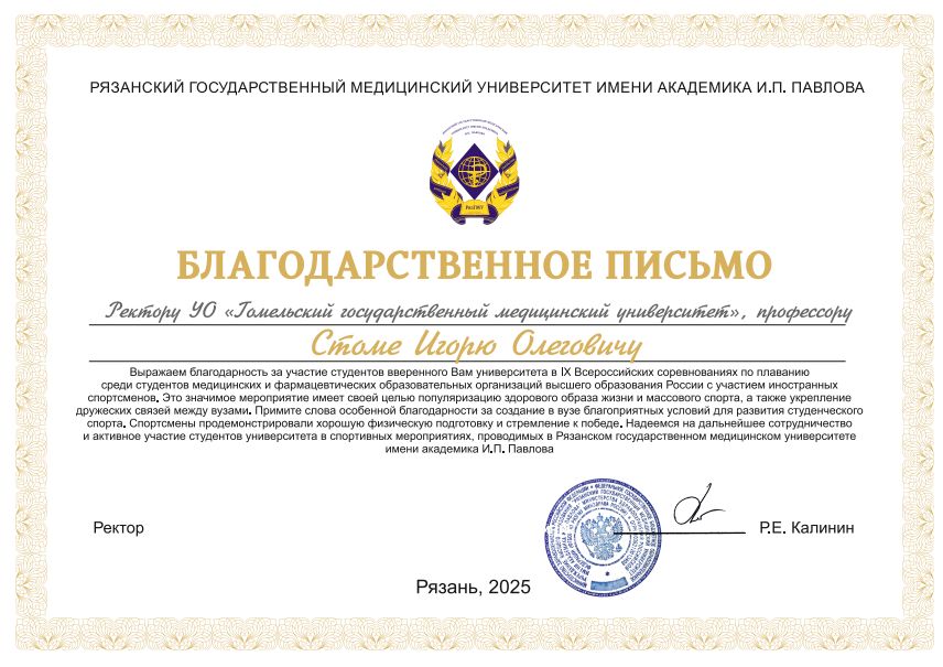 Благодарственное письмо за участие в соревнованиях по плаванию