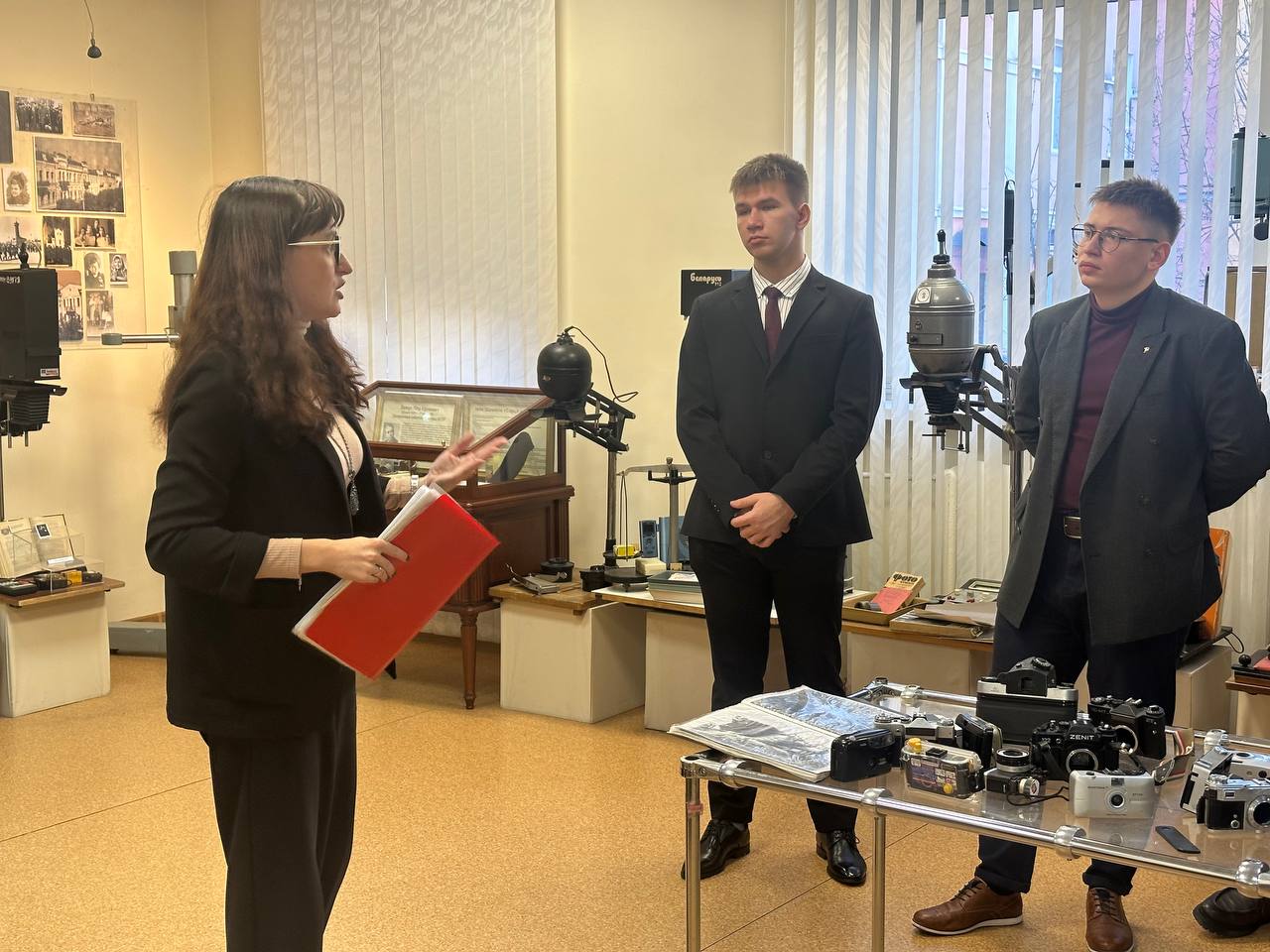 Но на этом сюрпризы не закончились. Помимо шпионской техники, будущие врачи увидели: старинные печатные станки и прессы, с которых начиналась история белорусской прессы; редкие экземпляры газет и афиш столетней давности, которые являются живыми свидетелями ушедшей эпохи; коллекцию винтажных фотоаппаратов: от громоздких павильонных до первых компактных «Кодаков».