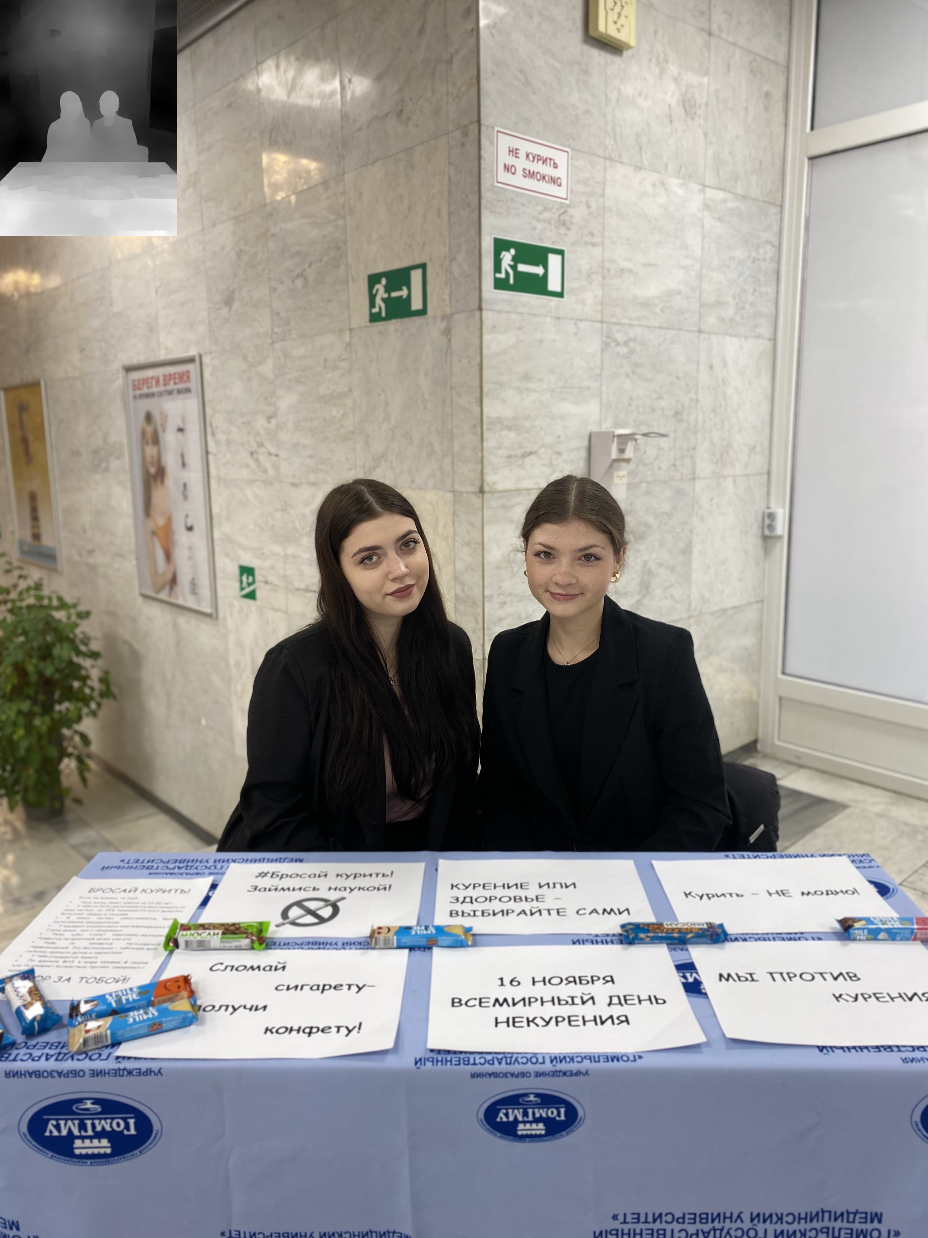 20 ноября, во Всемирный день некурения, в холле главного корпуса университета прошла акция студсовета ГомГМУ «Меняю сигарету на конфету», которую провели Александра Фурс и Ангелина Пальчун.